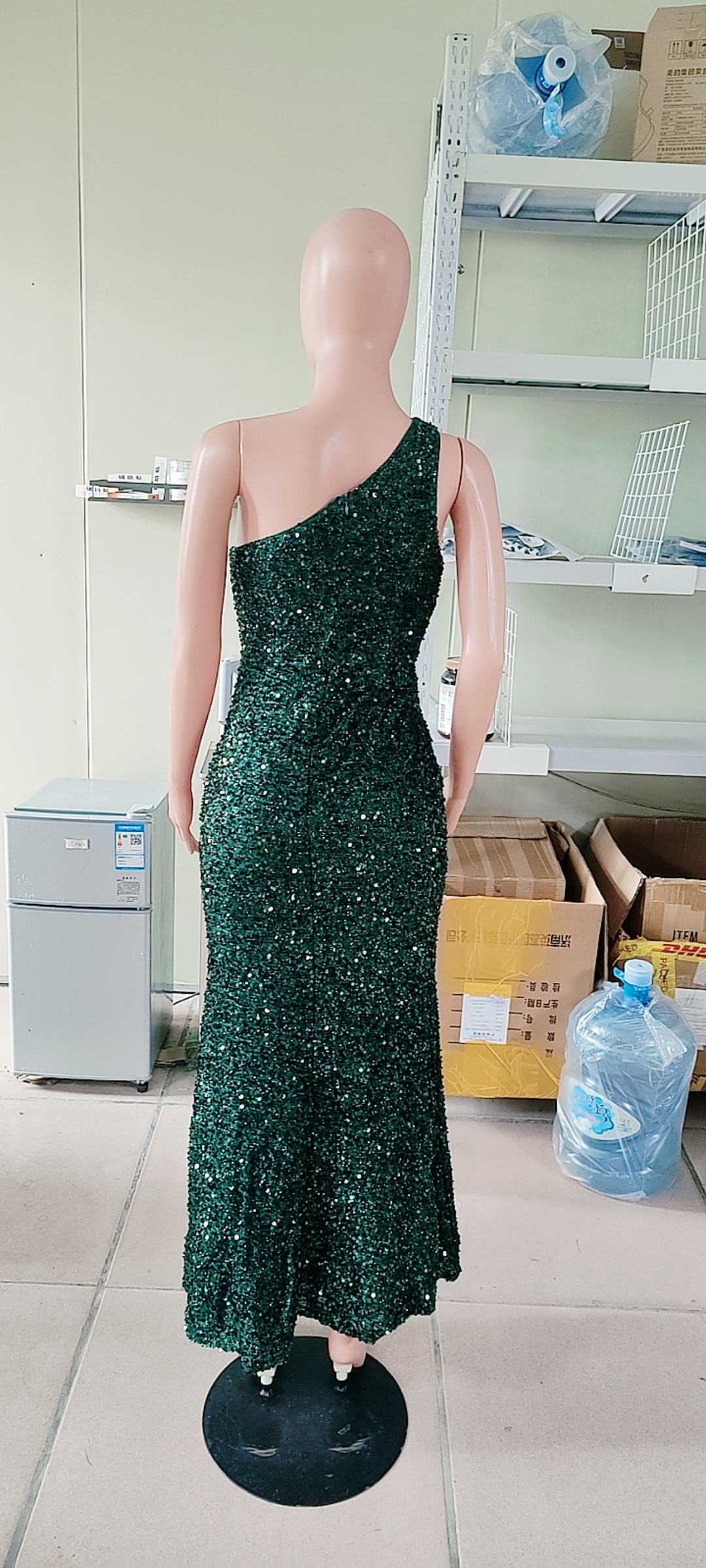 This Sexy Sequin One-Shoulder Split Fishtail Evening Dress Design Made Of Good Quality polyester And Spandex Material, Which Is Stretchy, Durable And Comfortable. The Long Evening Dresses And gowns are Always The main Choice For All Kinds Of Parties, Cocktail, Prom, Events, And Dating Occasions. Evening Gowns At BamBam Comes With Huge Selections - Sequins, Beaded, Satin, Velvet, Lace.... When You Need retail Evening Dresses, BamBam retail Women Garment Online Shop Is Your One-Stop Online Shopping Choice.