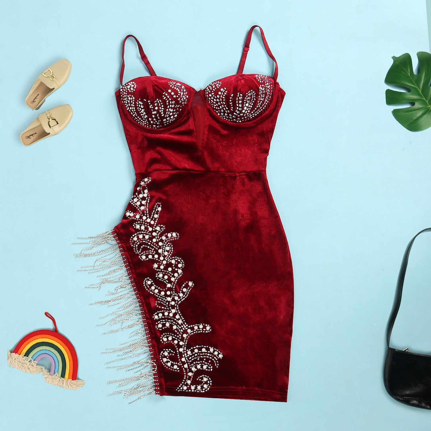 This Sexy Sling Slim Slit Beaded Fringe Dress Design Made Of High Quality polyester And Spandex Material, Which Is Stretchy, Soft And Comfortable. This Is Always On Trend. This affordable Nightclub Dresses Is a Must-Have Item For Parties, Cocktail, Dating And Events Occasions. Sexy Club Dresses At BamBam Comes With Huge Selections - Sequins, Beaded, Satin, Leather, Velvet, Lace, Mesh... When You Need retail Club Dresses, You Can Always Find Huge Selections And Reasonable Prices On Our retail Women Clothing Online Store.