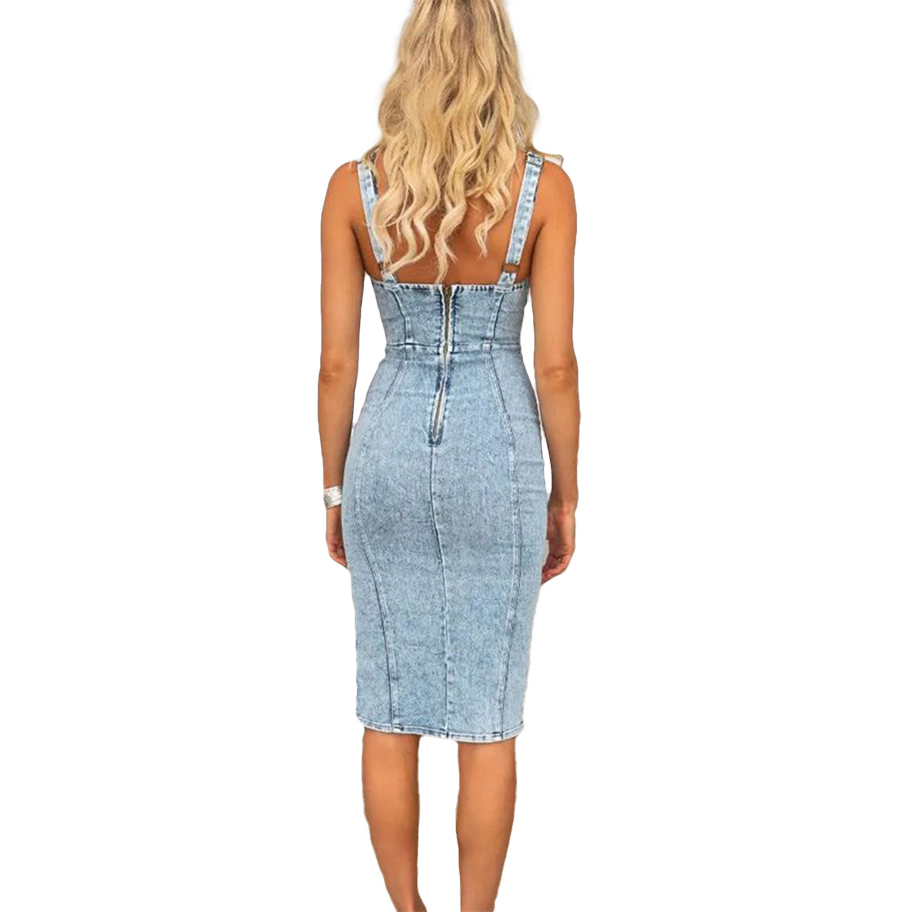 This Sexy Slit u Neck Wide Strap Washed Bodycon Denim Dress Design Made Of High Quality polyester And Spandex Material. It smooth and stretchy And wears comfortably with a keen sense of freedom and ease. The Tight And Fitted Dress Is The Most Popular dress option for those that like to party hard. Shop Bodycon Dresses At BamBam And Find Amazing Designs Sequins, Beaded, Diamond, Crystals, Lace... BamBam retail Women Dresses Online Store is your one stop shop that helps By Providing Vary Dresses At quality and afforable prices with limitless variations.