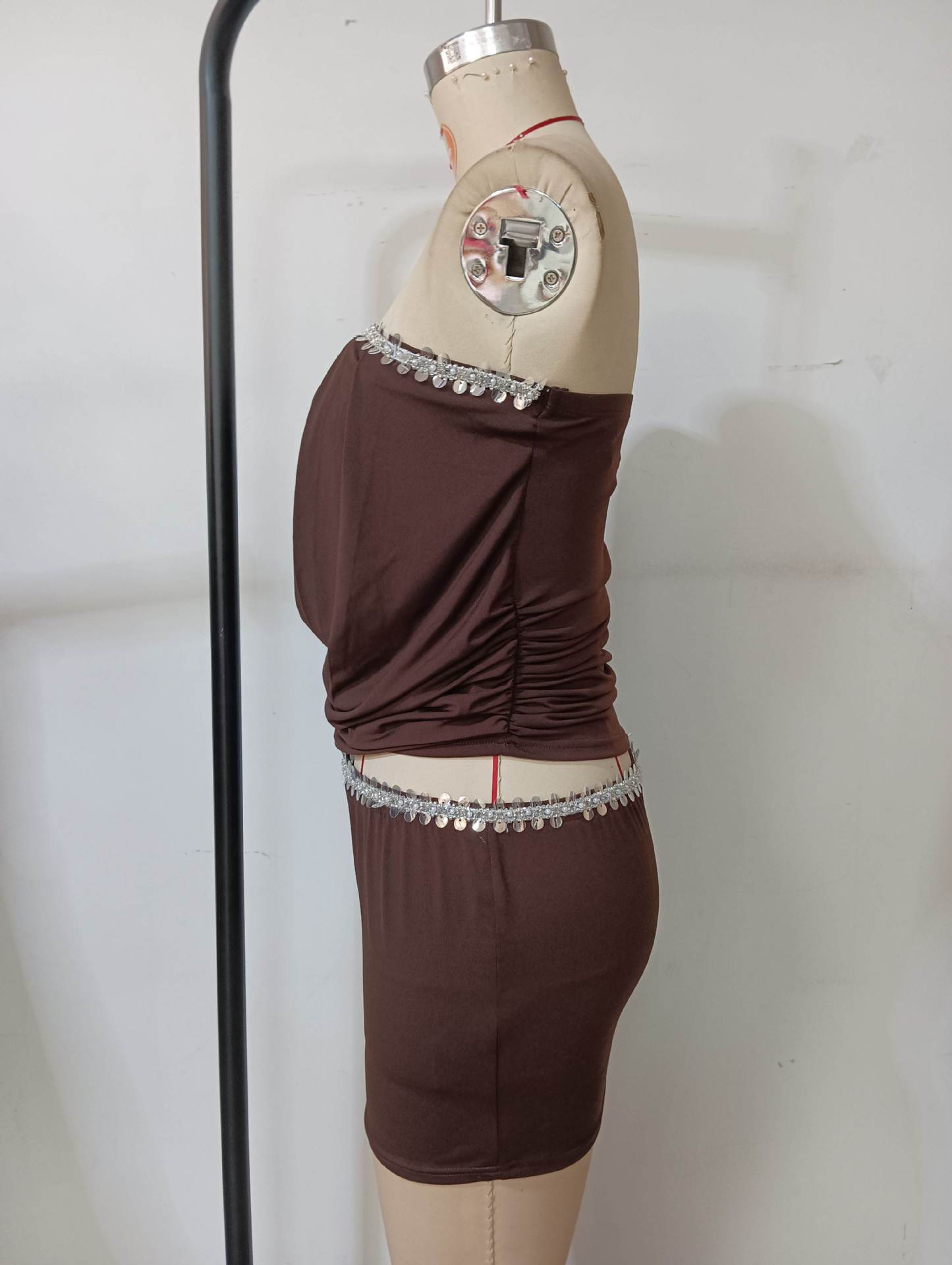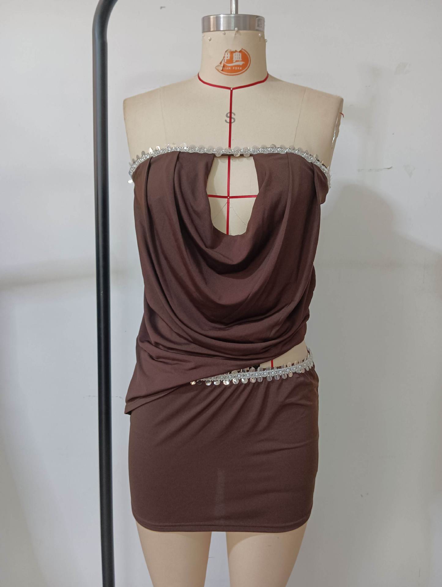 This Sexy Solid Color Beaded Slim Fit Strapless Crop Top Bodycon Short Skirt Set Design Made Of Good Quality Polyester And Spandex Material, Which Is Stretchy, Durable And Comfortable. The Long Evening Dresses And Gowns Is Always The main Choice For All Kinds Of Parties, Cocktail, Prom, Events, And Dating Occasions. Evening Gowns At BamBam Comes With Huge Selections - Sequins, Beaded, Satin, Velvet, Lace.... When You Need retail Evening Dresses, BamBam retail Women Garment Online Shop Is Your One-Stop Online Shopping Choice.