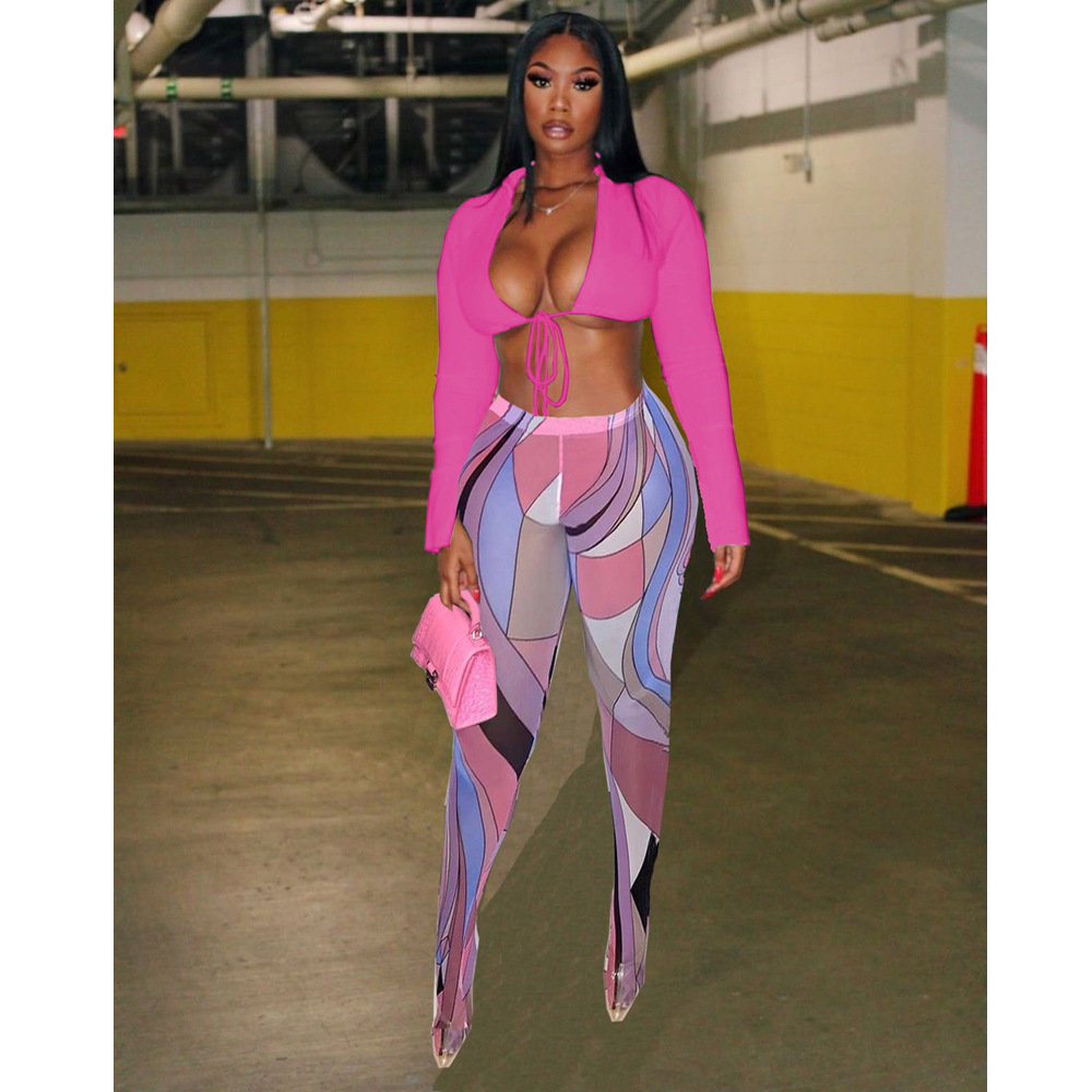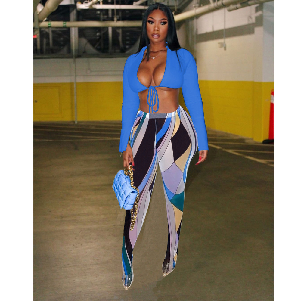 This Sexy Solid Color Lace-Up Top Printed Tight Slim Pants Two Piece Set Design Made Of High Quality polyester And Spandex Material. It Is Stretchy, Durable And Comfortable. It Is a Must-Have Outfit For All Seasons. retail Two Piece Pant Sets Can Solve Your cloth selection Troubles. Explore More 2 Piece Pants Set On BamBam retail Women Clothing Online Store.