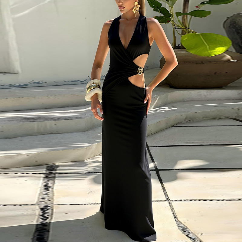 This Sexy Solid v-Neck Long Dress With Sheer Cutouts Bodycon Dress Design Made Of High Quality polyester And Spandex Material, Which Is Stretchy, Soft And Comfortable. It's Always On Trend. This Casual Maxi Dresses Is a Must-Have For Vocations And Dating Occasions. Maxi Dresses At BamBam Comes With Huge Selections Of Colors, Sizes, Material, And Designs. When You Need retail affordable Maxi Dresses, You Can Always Find Vary Collection And No Moq On Our retail Women Fashion Online Store.