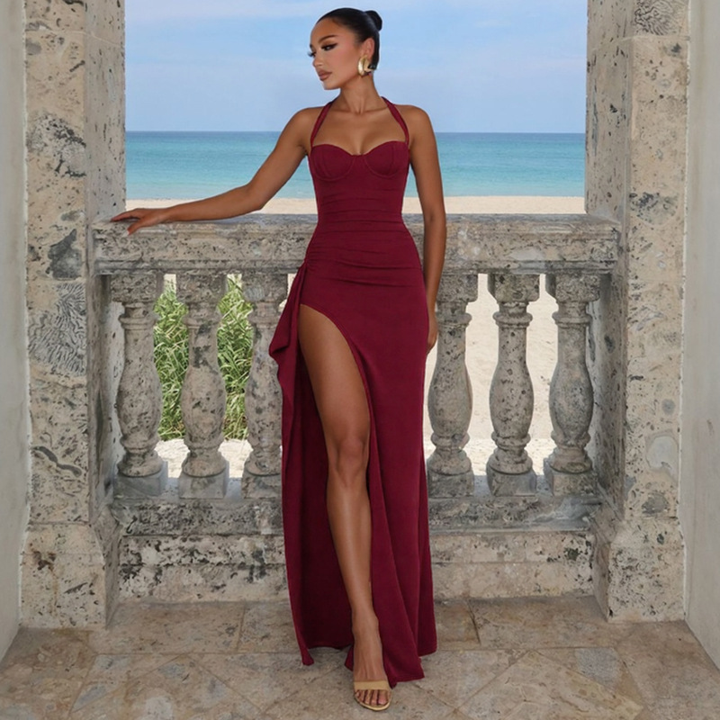 This Sexy Strap Dress Women's Summer Luxury Chic Slim Waist High Slit Long Dress Design Made Of Good Quality Polyester And Spandex Material, Which Is Stretchy, Durable And Comfortable. The Long Evening Dresses And Gowns Is Always The main Choice For All Kinds Of Parties, Cocktail, Prom, Events, And Dating Occasions. Evening Gowns At BamBam Comes With Huge Selections - Sequins, Beaded, Satin, Velvet, Lace.... When You Need retail Evening Dresses, BamBam retail Women Garment Online Shop Is Your One-Stop Online Shopping Choice.