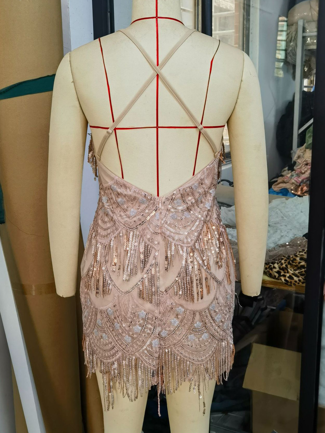 This Sexy Strappy Fringe Sequin Party Dress For Women Design Made Of Good Quality Polyester And Spandex Material, Which Is Stretchy, Durable And Comfortable. The Long Evening Dresses And Gowns Is Always The main Choice For All Kinds Of Parties, Cocktail, Prom, Events, And Dating Occasions. Evening Gowns At BamBam Comes With Huge Selections - Sequins, Beaded, Satin, Velvet, Lace.... When You Need retail Evening Dresses, BamBam retail Women Garment Online Shop Is Your One-Stop Online Shopping Choice.