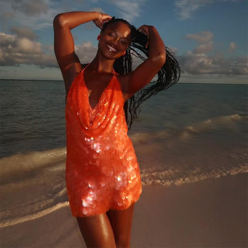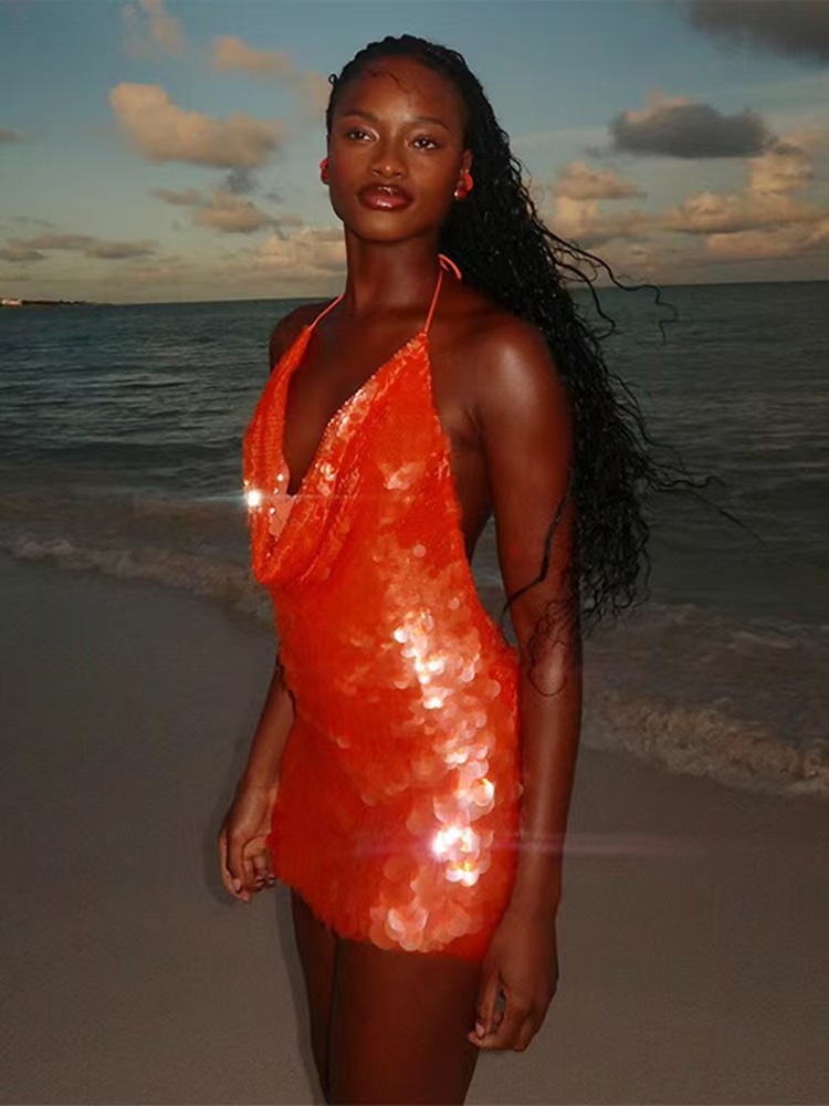 This Sexy Women'Slow-Cut Hollow Strap Low Back Sequined Slim Dress Design Made Of High Quality polyester And Spandex Material. It Is Stretchy, Durable And Comfortable. Casual Dresses With Long Sleeves Can Not Only Be Worn As Outerwear In Spring And Autumn, But Also Matching a Jacket In Winter, It Is a Must Have Item For Every Season. Grab Really Great Buy Casual Dresses For Women And Grow Your Business. No Moq In BamBam.