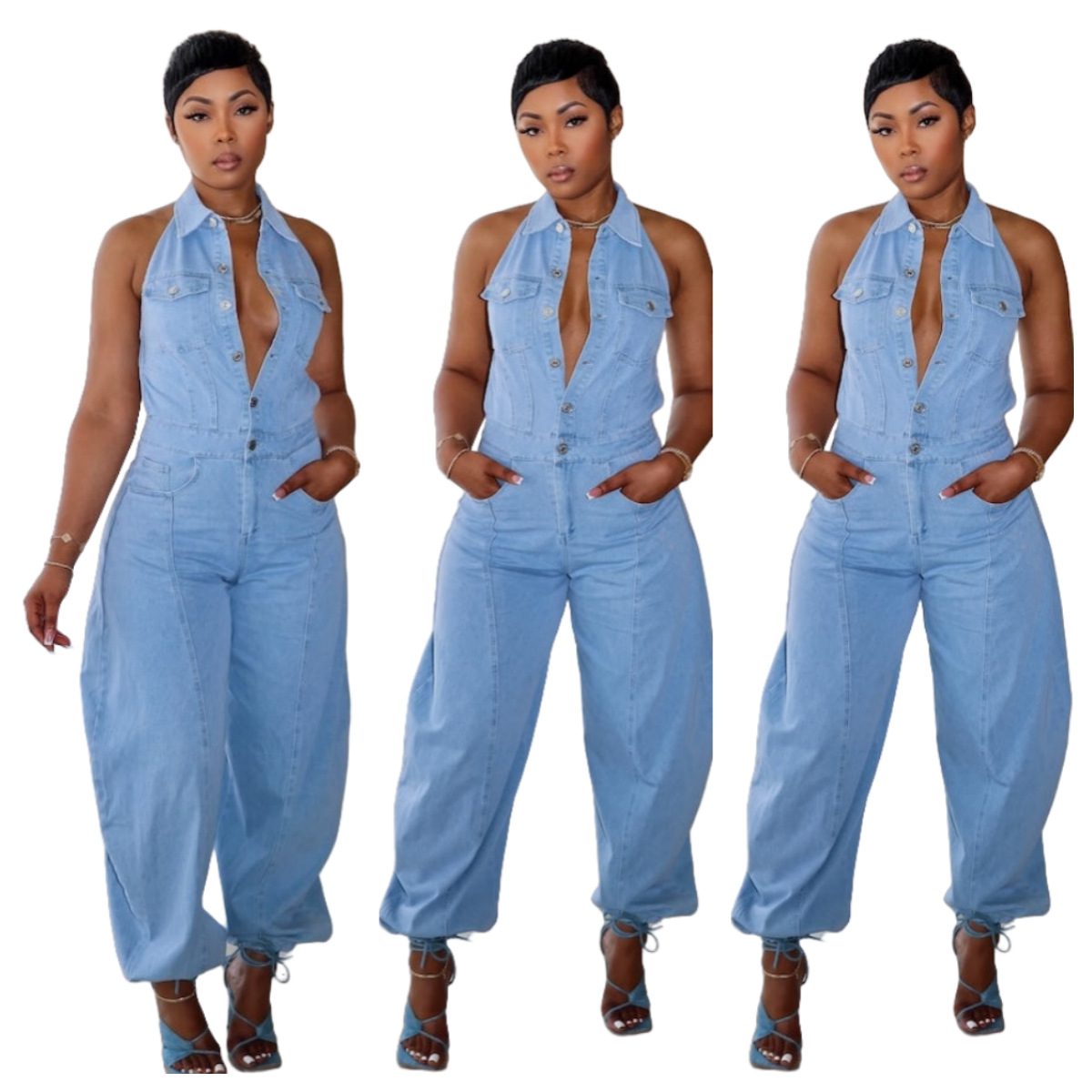 This Sleeveless Low Back Washed High Stretch Casual Denim Jumpsuit Design Made Of High Quality Polyster And Spandex Material. It Is Stretchy, Durable And Comfortable. Affordable Sexy Jumpsuits For Women Has Long Been a Party Favorite. BamBam provides a Rich selection Of Sequin, Beaded, See Through Mesh, Leopard, Floral Lace, Leather, Velvet, Tight And Fitted retail Jumpsuit Without Moq Limit.