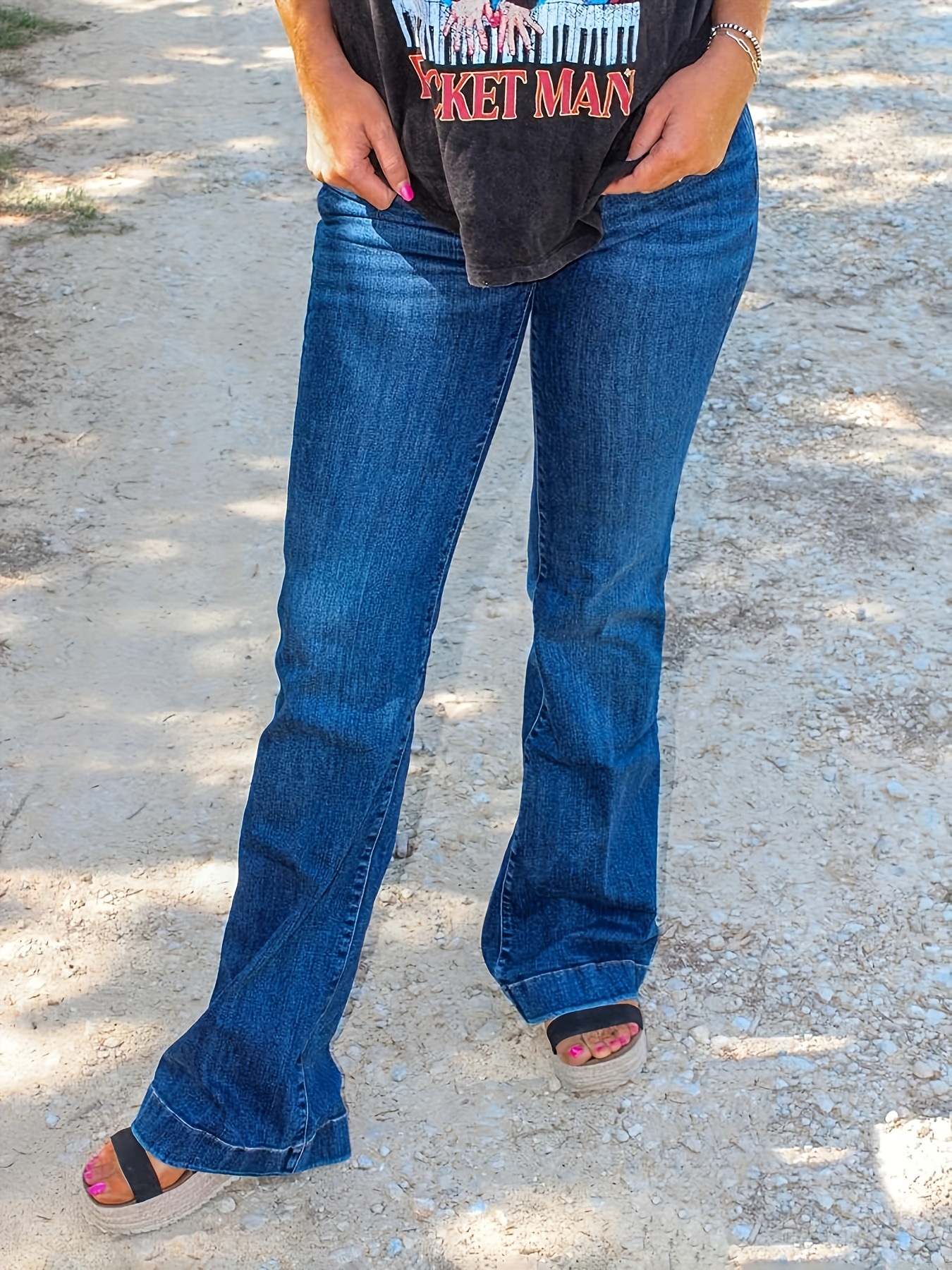 This Slim Fit Stretch Mid Waist Bell Bottom Denim Pants Plus Size Women's Stretchy Mid Rise Jeans Design Made Of Durable And Stretchy Jeans Fabric. It Is a Must-Have Item For everyday use. Trendy retail Jeans Is a Indispensable Item For Everyday Fashion. Women’s Jeans With High Waist Is a Must Have trouser/pant that helps bring the grace of shape of your legs out even more and fits perfectly snugging your thighs and body gracefully. Grab a Must Have High Waist Jeans retail For Your Closet, Just Choose Different Matching Tops To stay in control of Every Occasion Easily.