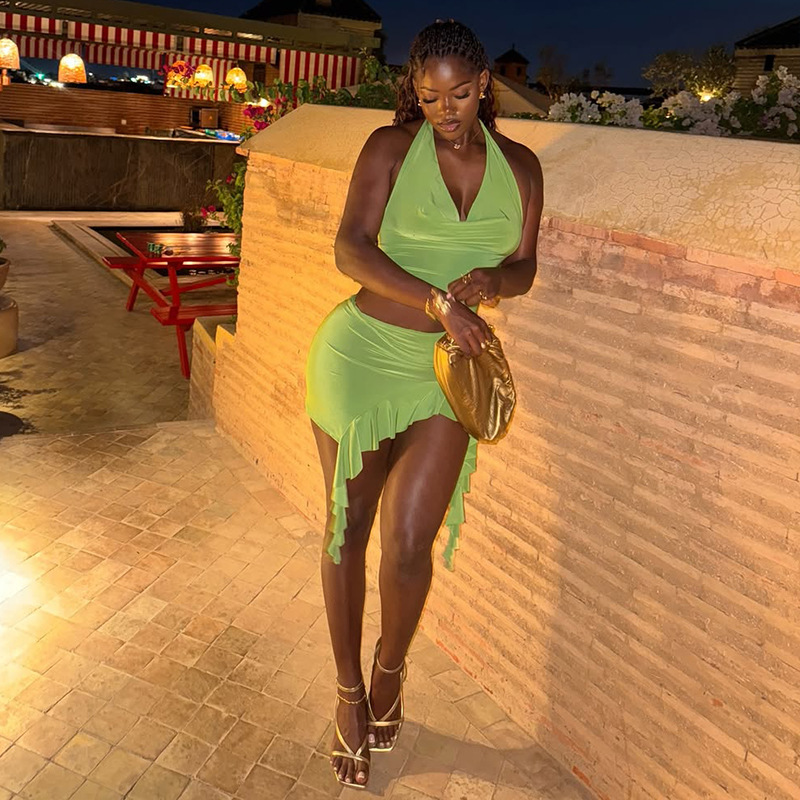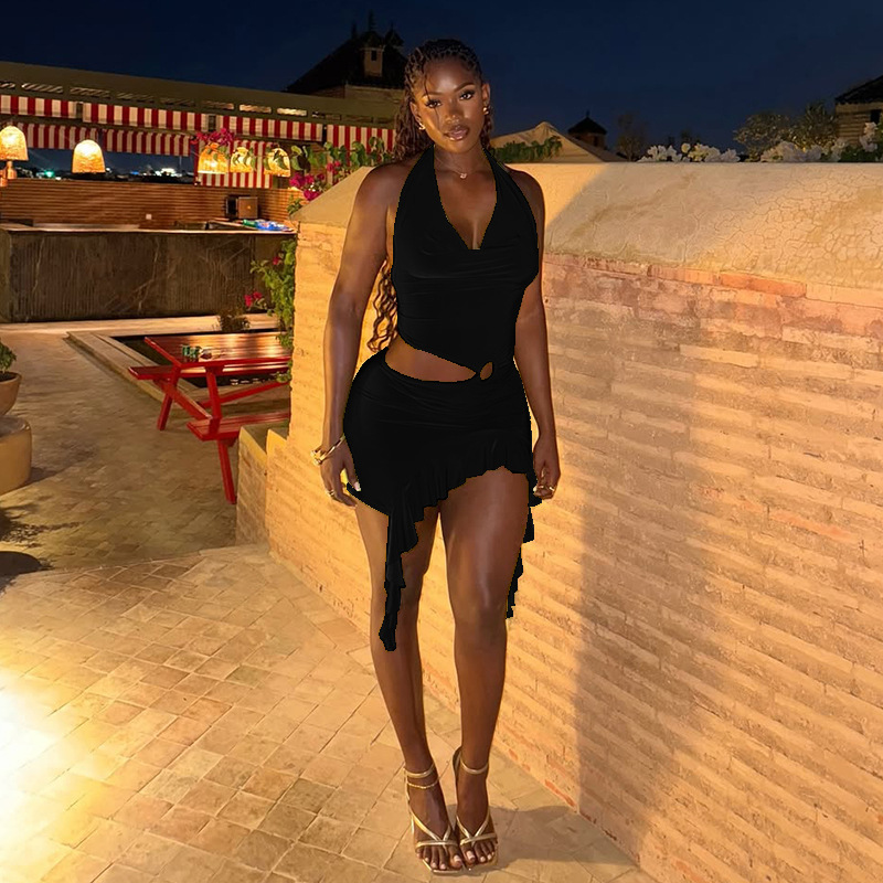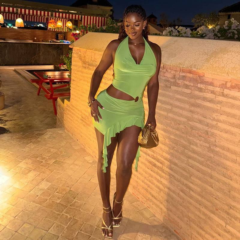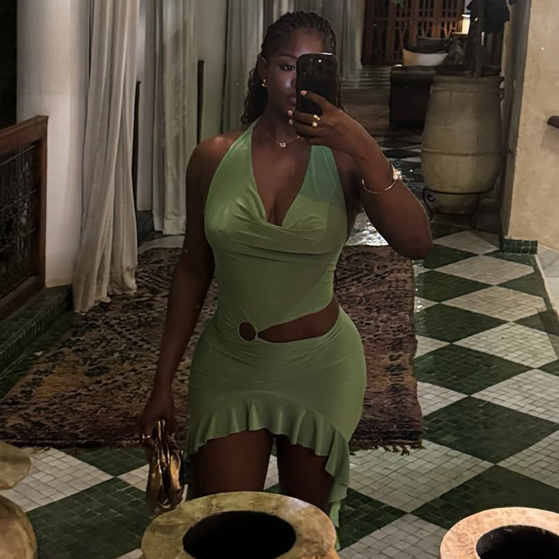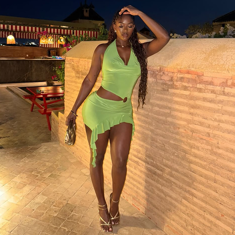 This Solid Color Holidays Women's Metal Ring Halter Neck v-Neck Ruffled Bodycon Dress Design Made Of High Quality polyester And Spandex Material. It smooth and stretchy And wears comfortably with a keen sense of freedom and ease. The Tight And Fitted Dress Is The Most Popular dress option for those that like to party hard. Shop Bodycon Dresses At BamBam And Find Amazing Designs Sequins, Beaded, Diamond, Crystals, Lace... BamBam retail Women Dresses Online Store is your one stop shop that helps By Providing Vary Dresses At quality and afforable prices with limitless variations.