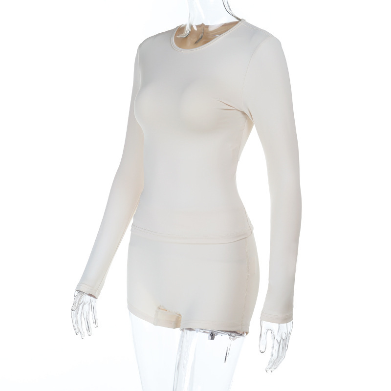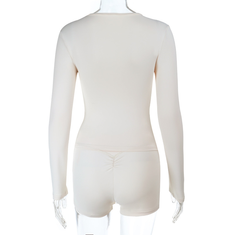 This Solid Slim Fitted Long-Sleeve Top & High-Waist Butt Lift Shorts Sporty Casual Set Design Made Of High Quality polyester And Spandex Material. It Is Stretchy, Durable And Comfortable. It Come With The Top And Shorts. retail Short Sets Saves Some People From The Trouble Of Matching. And For Matchmakers It Is More Flexible Than One-Piece Outfit. Two Piece Short Set Can Be Worn Together Or Individually, Ladies Can Match Them According To Different Occasions. Grab Different Two Piece Short Sets For This Spring And Summer.
