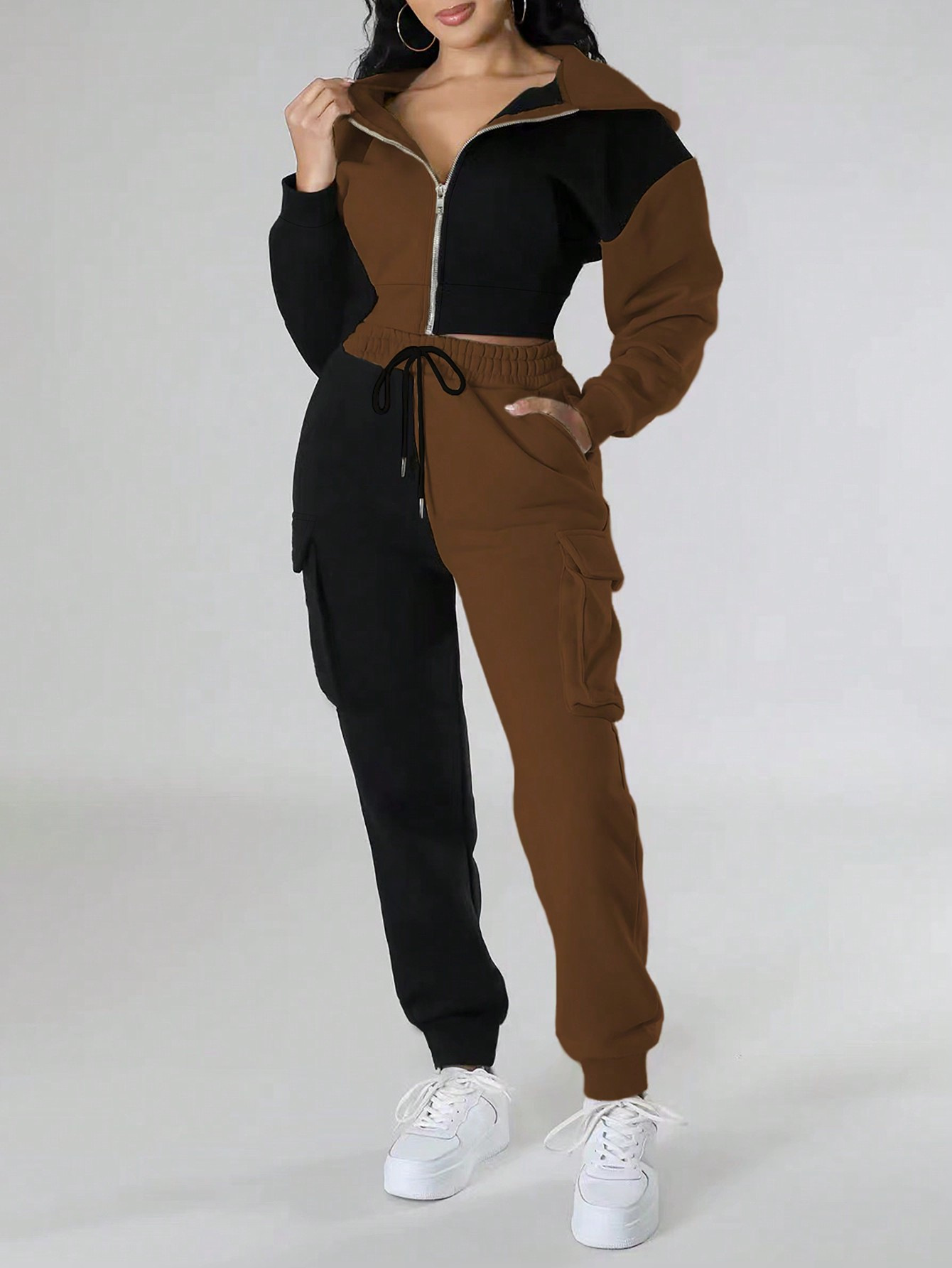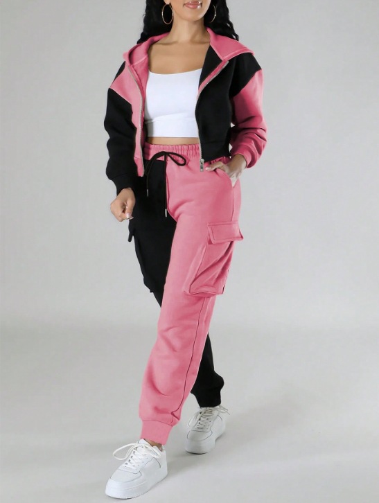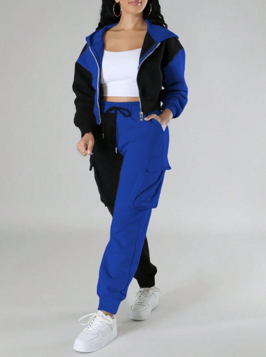 This Sporty Women's Set Trendy Color-Block Cropped Hoodie & Cargo Joggers Two-Piece Design Made Of Durable And Stretch Fabric. It Is a Must-Have Sportswear For Outdoor And Active. BamBam Offer a Rich Selection Of Women Tracksuits And Sweatsuits. You Will Find Wide Range Colors, Prints, And Designs retail Tracksuits With BamBam Whether For Sports Or Lazy Weekend. When You Need More retail Fitness Clothing, You Can Always Find What You Need On Our retail Women Gym Wear Online Store.