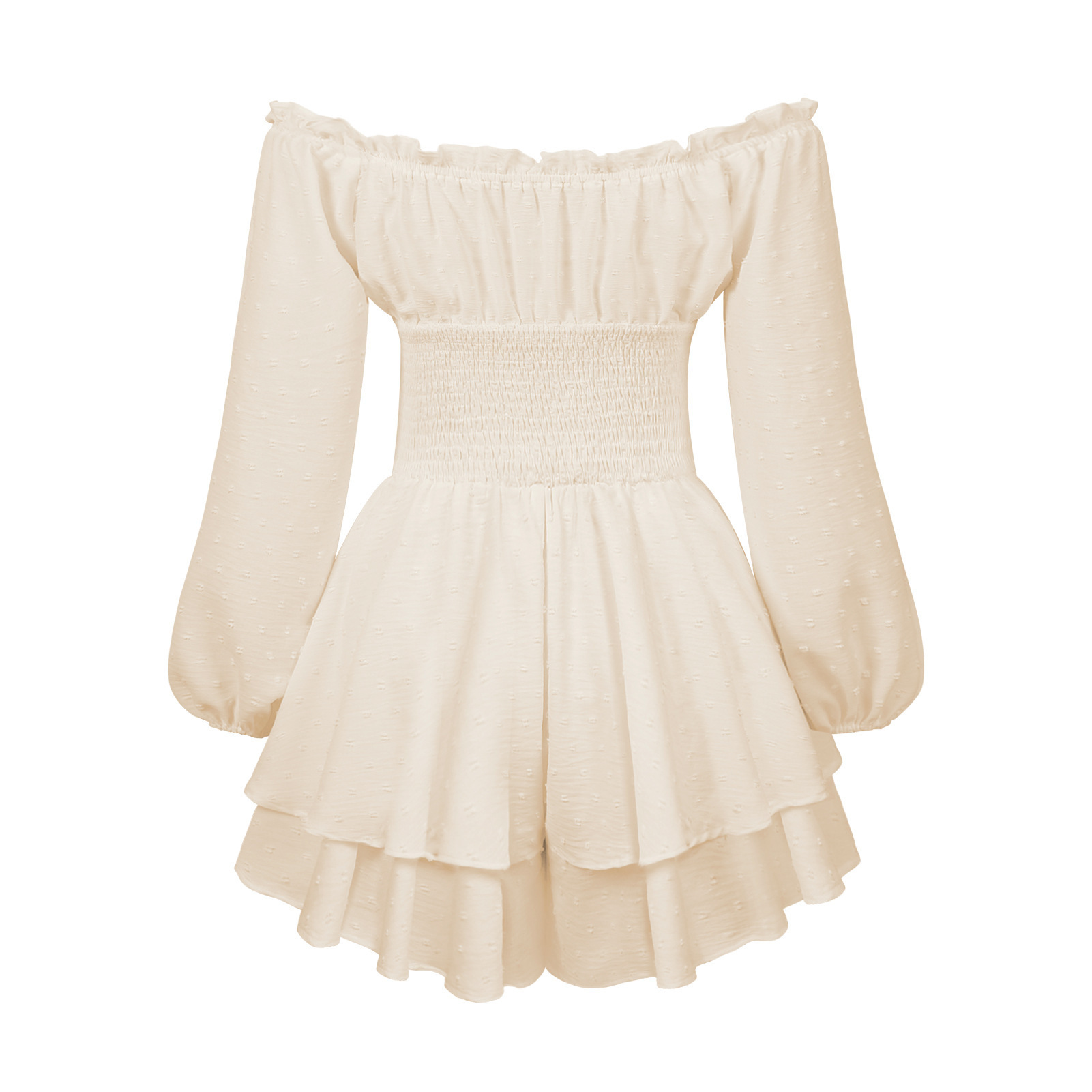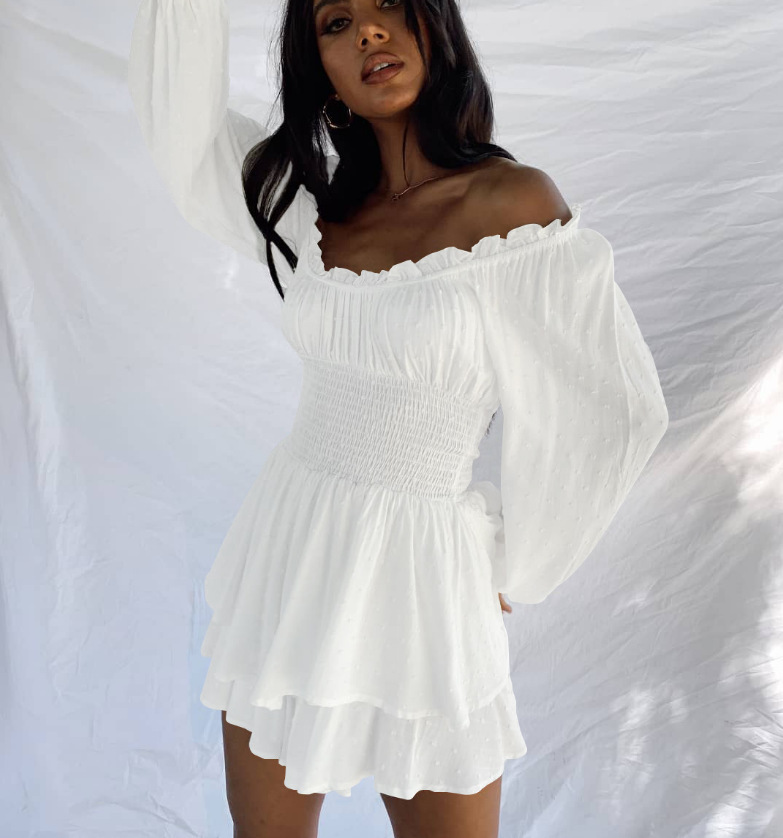 This Spring And Summer Pleated Off Shoulder Long Sleeve Casual Ruffled Jumpsuit Design Made Of High Quality polyester And Spandex Material. It Is Stretchy, Durable And Comfortable. Casual Dresses With Long Sleeves Can Not Only Be Worn As Outerwear In Spring And Autumn, But Also Matching a Jacket In Winter, It Is a Must Have Item For Every Season. Grab Really Great Buy Casual Dresses For Women And Grow Your Business. No Moq In BamBam.