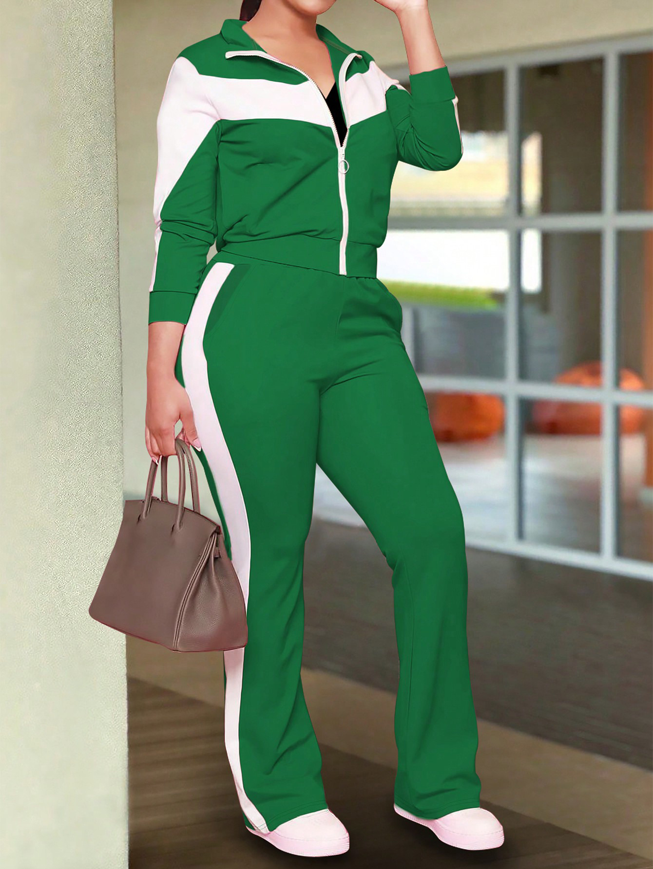 This Spring/Fall Women's Trendy Color-Block Sporty Zip-Up Jacket & Casual Pants Set Design Made Of Durable And Stretch Fabric. It Is a Must-Have Sportswear For Outdoor And Active. BamBam Offer a Rich Selection Of Women Tracksuits And Sweatsuits. You Will Find Wide Range Colors, Prints, And Designs retail Tracksuits With BamBam Whether For Sports Or Lazy Weekend. When You Need More retail Fitness Clothing, You Can Always Find What You Need On Our retail Women Gym Wear Online Store.