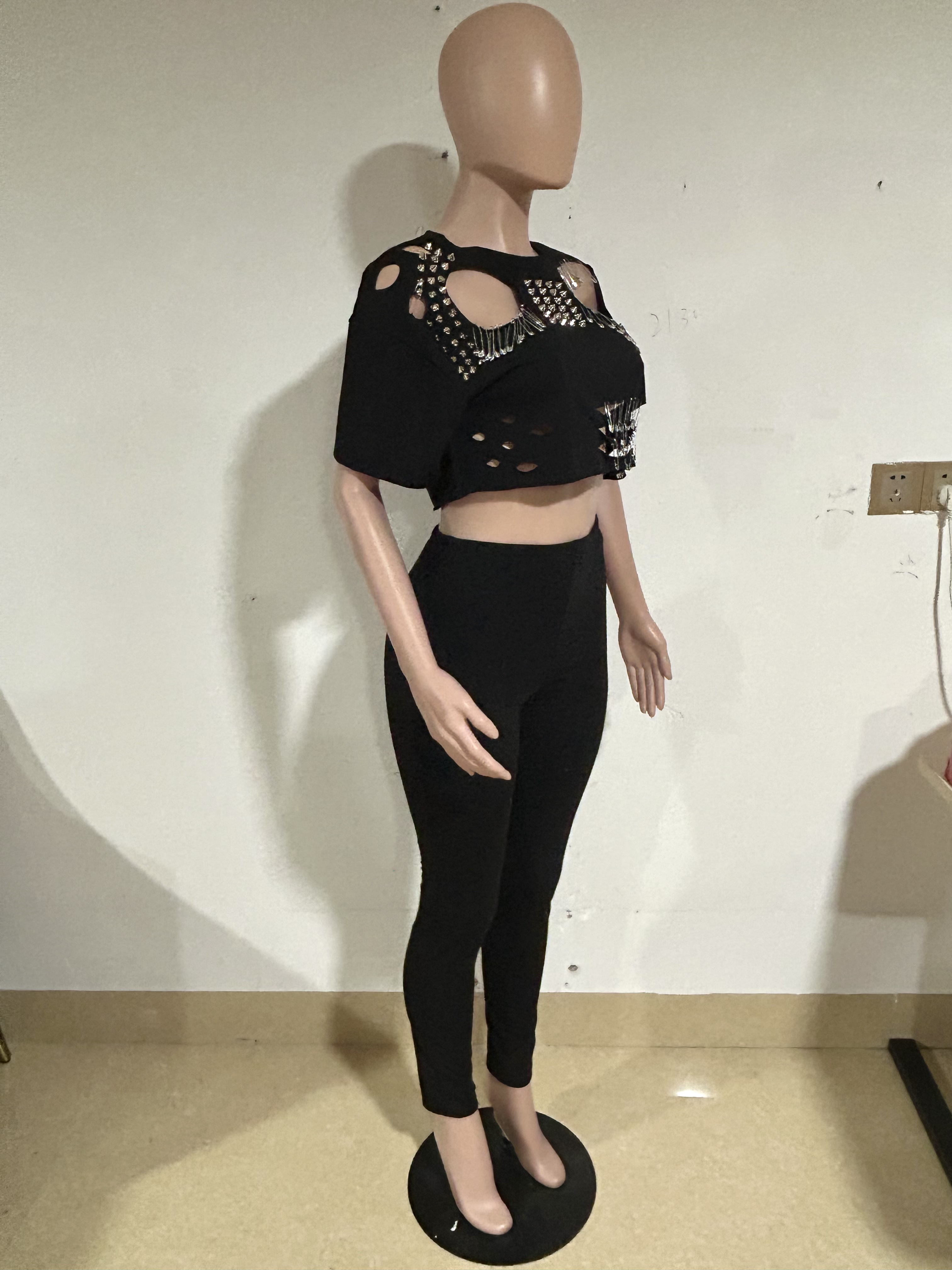 This Spring/Summer Casual Ripped Pin Short Sleeve t-Shirt Pants Set Design Made Of High Quality polyester And Spandex Material. It Is Stretchy, Durable And Comfortable. It Is a Must-Have Outfit For All Seasons. retail Two Piece Pant Sets Can Solve Your cloth selection Troubles. Explore More 2 Piece Pants Set On BamBam retail Women Clothing Online Store.