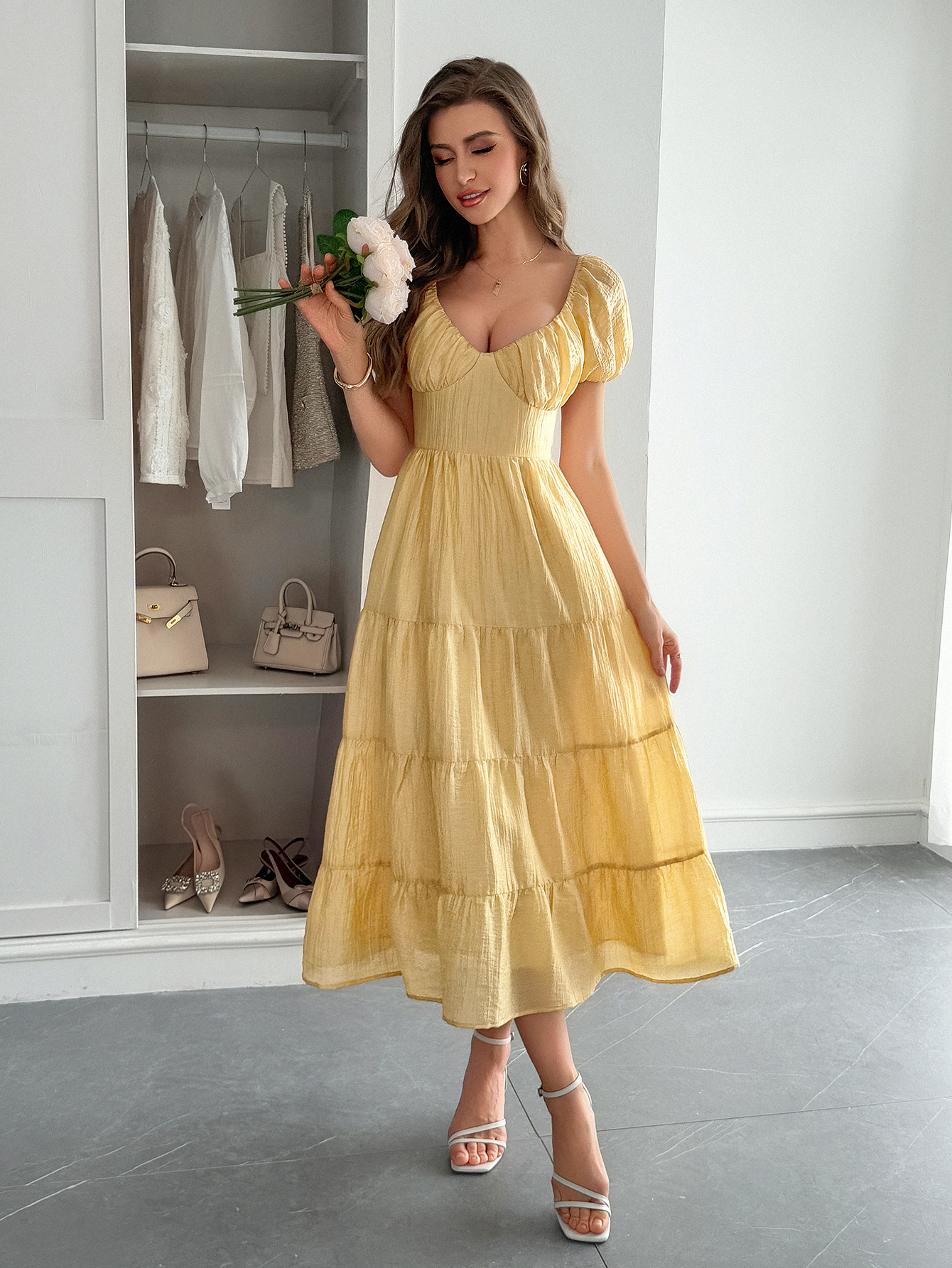 This Spring-Summer Elegant Holiday Solid Short-Sleeve Maxi Dress For Women Design Made Of High Quality polyester And Spandex Material. It Is Stretchy, Durable And Comfortable. Casual Dresses With Long Sleeves Can Not Only Be Worn As Outerwear In Spring And Autumn, But Also Matching a Jacket In Winter, It Is a Must Have Item For Every Season. Grab Really Great Buy Casual Dresses For Women And Grow Your Business. No Moq In BamBam.