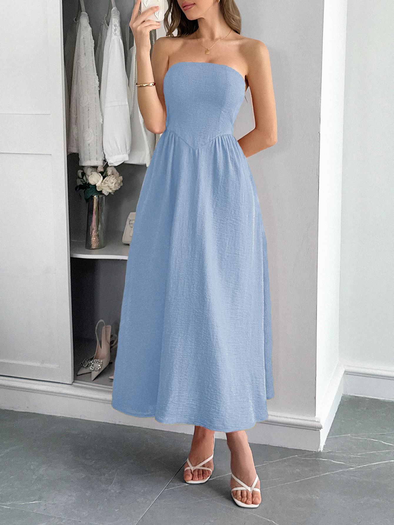 This Spring/Summer Women's Elegant Holidays Strapless Slim Waist Long Dress Design Made Of High Quality polyester And Spandex Material. It Is Stretchy, Durable And Comfortable. Casual Dresses With Long Sleeves Can Not Only Be Worn As Outerwear In Spring And Autumn, But Also Matching a Jacket In Winter, It Is a Must Have Item For Every Season. Grab Really Great Buy Casual Dresses For Women And Grow Your Business. No Moq In BamBam.