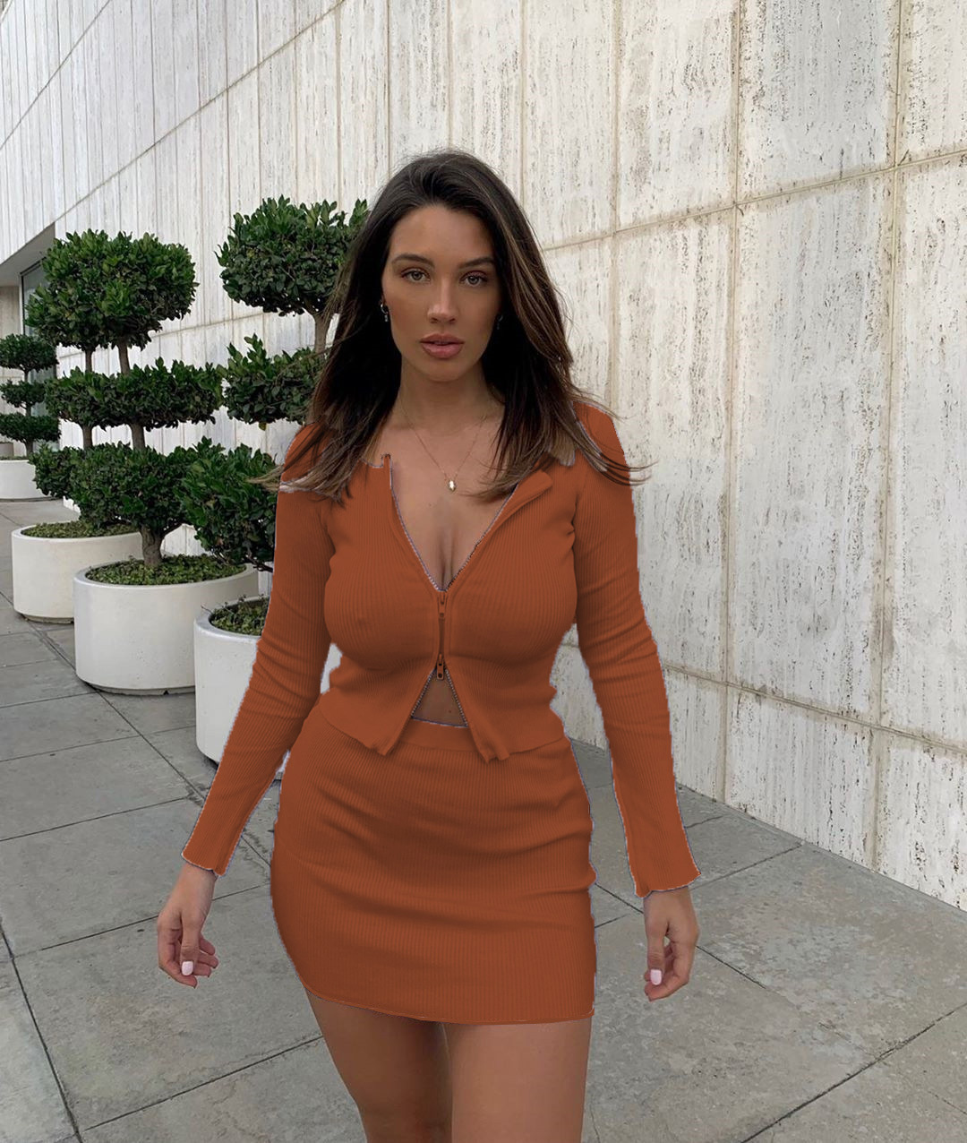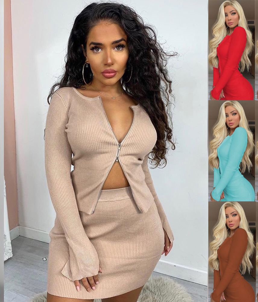 This Spring Summer Women's Fashion Zipper Ribbed Long Sleeve Top & Short Skirt Two-Piece Set Design Made Of High Quality polyester And Spandex Material. It Is Stretchy, Durable And Comfortable. It Come With The Top And Skirt Matching Set. Women’s Skirt Suit Sets Is a Great Alternative To One Piece Outfit. It Can Either Be Worn Together Or Individually, So You Can Combine Them Endlessly. Grab Different Two Piece Skirt Set retail On Our Website a Women's Clothing Store Online At Really affordable price And Enjoy fast delivery worldwide.
