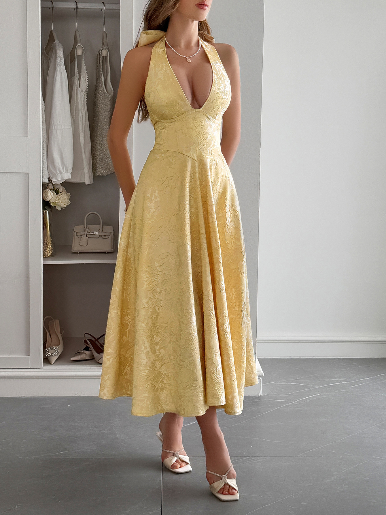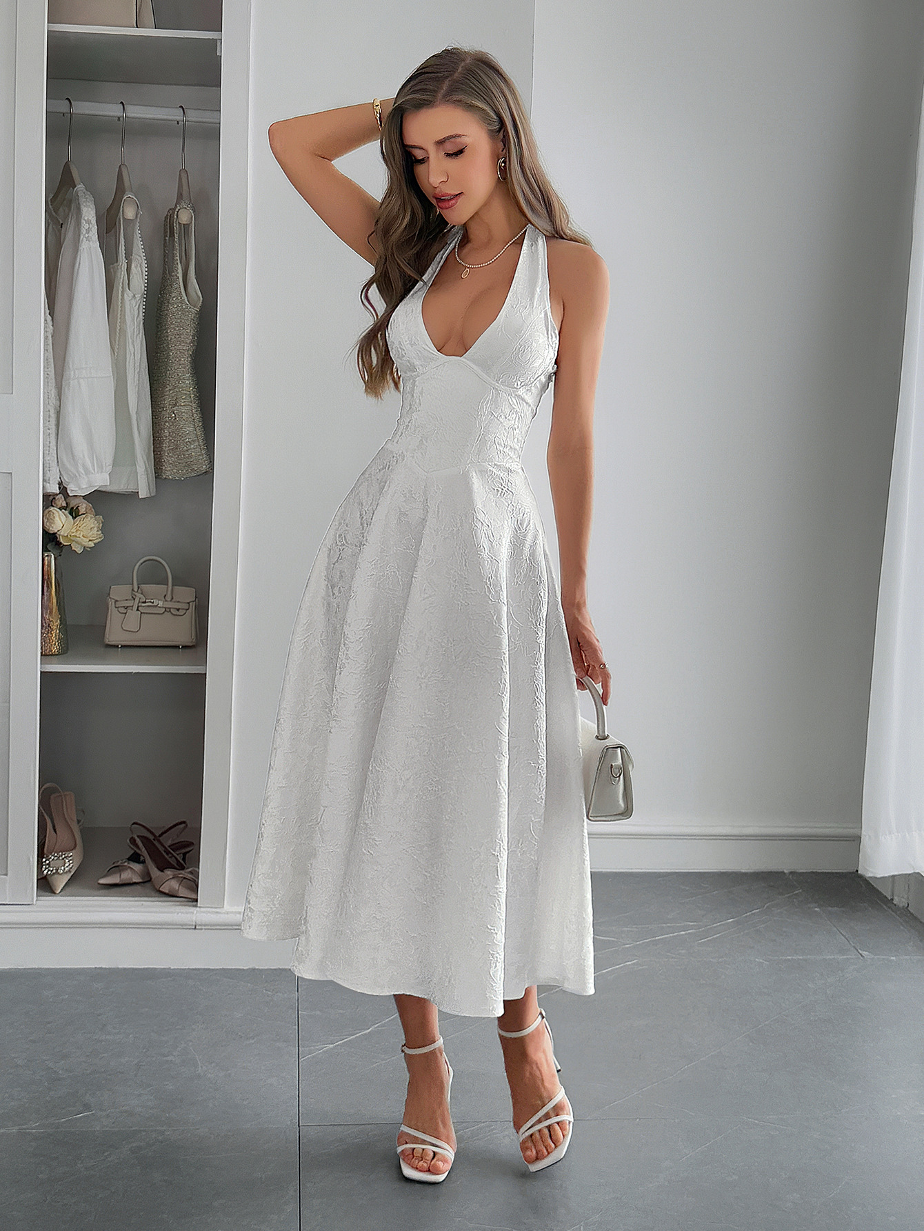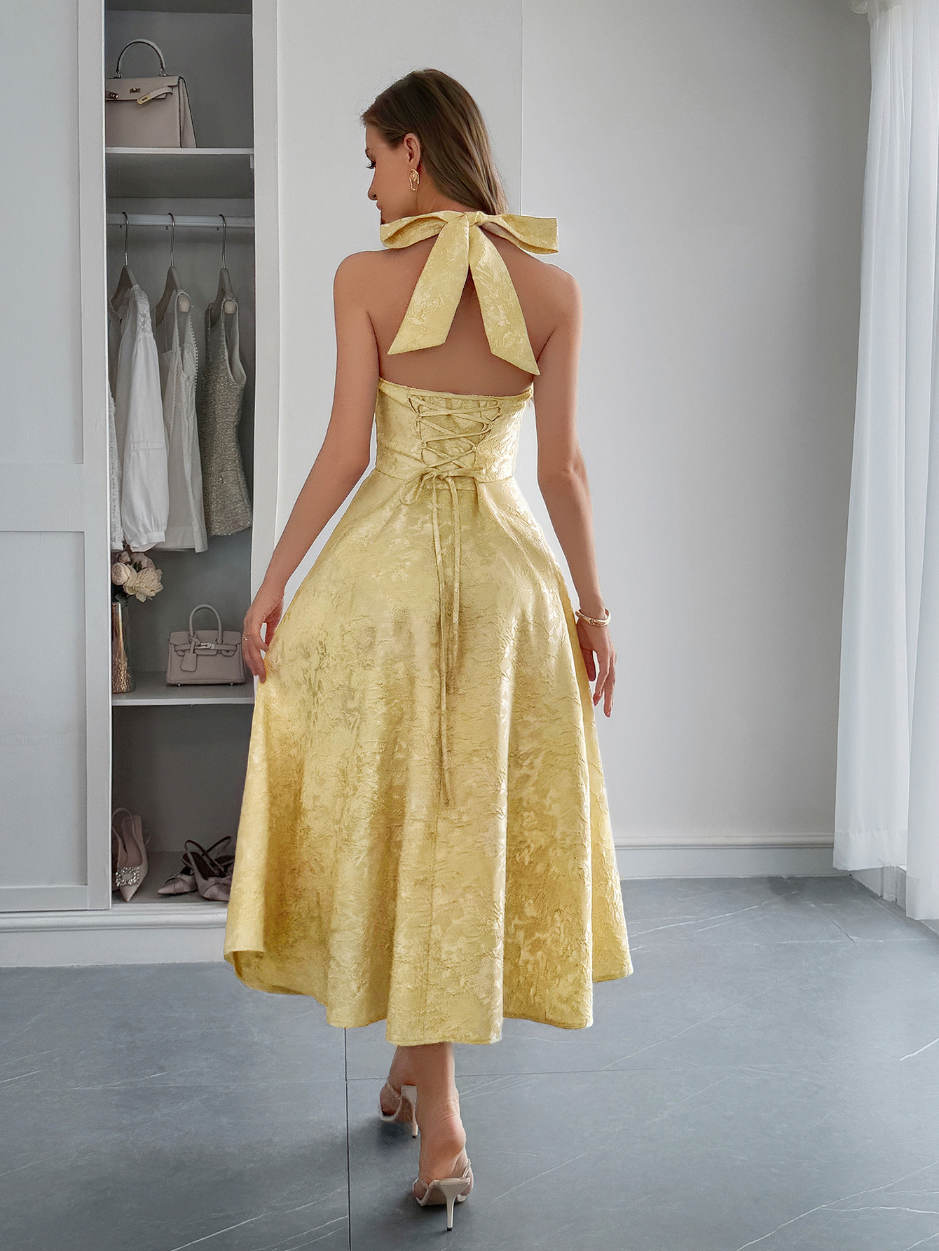 This Spring/Summer Women's Holidays Halter-Neck Slim Waist Long Dress Design Made Of High Quality polyester And Spandex Material. It Is Stretchy, Durable And Comfortable. Casual Dresses With Long Sleeves Can Not Only Be Worn As Outerwear In Spring And Autumn, But Also Matching a Jacket In Winter, It Is a Must Have Item For Every Season. Grab Really Great Buy Casual Dresses For Women And Grow Your Business. No Moq In BamBam.
