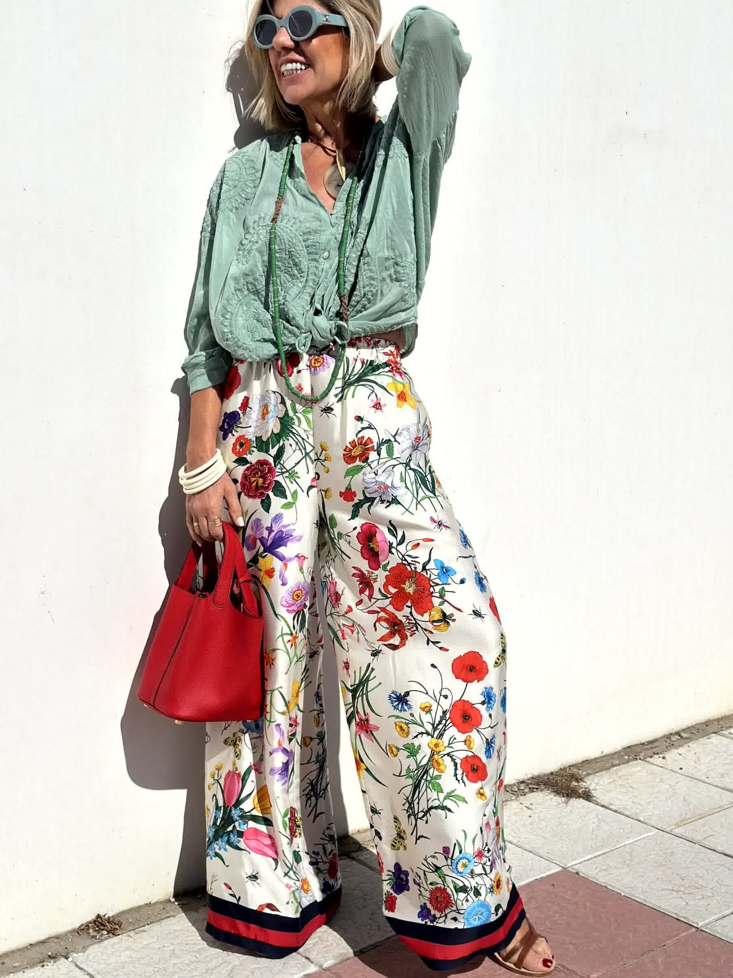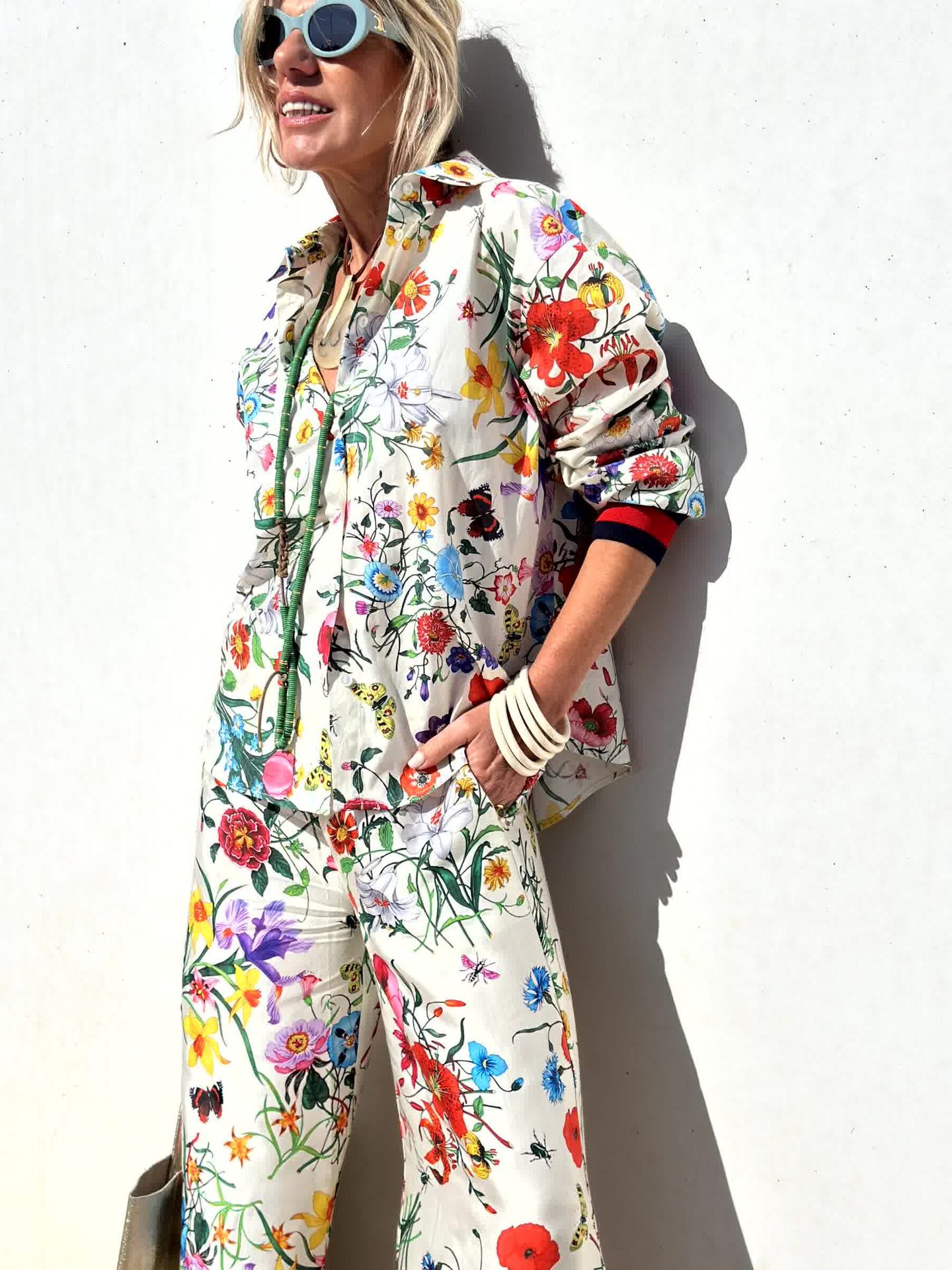 This Spring/Summer Women's Printed Casual Shirt & Pants Two-Piece Set Design Made Of High Quality polyester And Spandex Material. It Is Stretchy, Durable And Comfortable. It Is a Must-Have Outfit For All Seasons. retail Two Piece Pant Sets Can Solve Your cloth selection Troubles. Explore More 2 Piece Pants Set On BamBam retail Women Clothing Online Store.