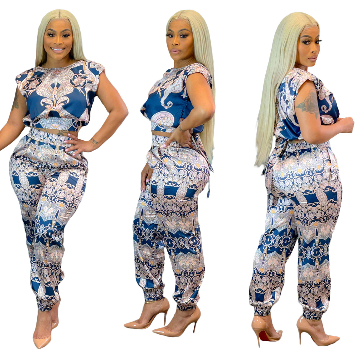 This Spring/Summer Women's Printed Short Sleeve Two-Piece Pants Set Design Made Of High Quality polyester And Spandex Material. It Is Stretchy, Durable And Comfortable. It Is a Must-Have Outfit For All Seasons. retail Two Piece Pant Sets Can Solve Your cloth selection Troubles. Explore More 2 Piece Pants Set On BamBam retail Women Clothing Online Store.