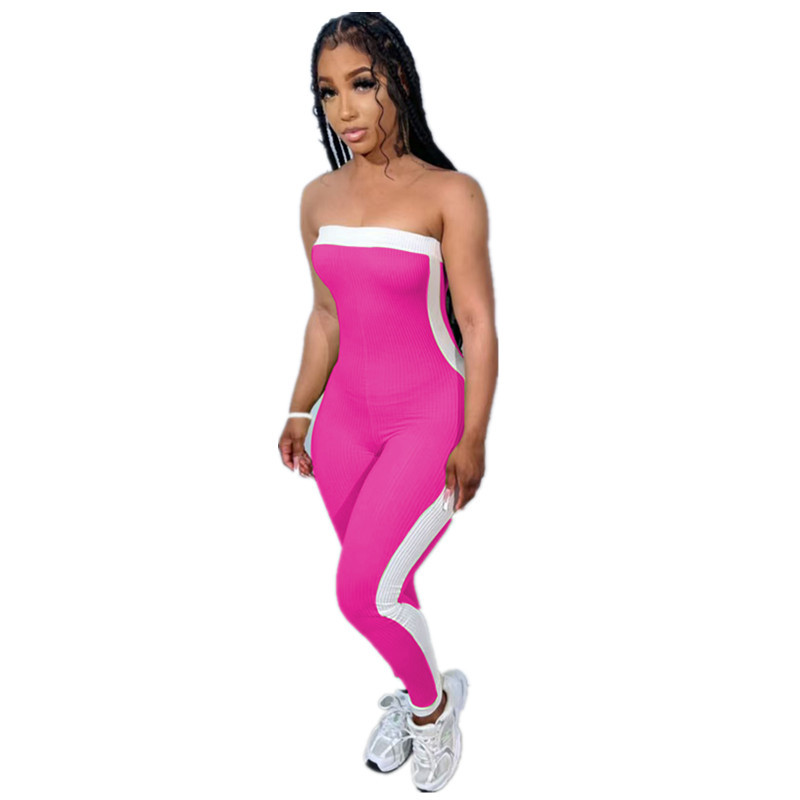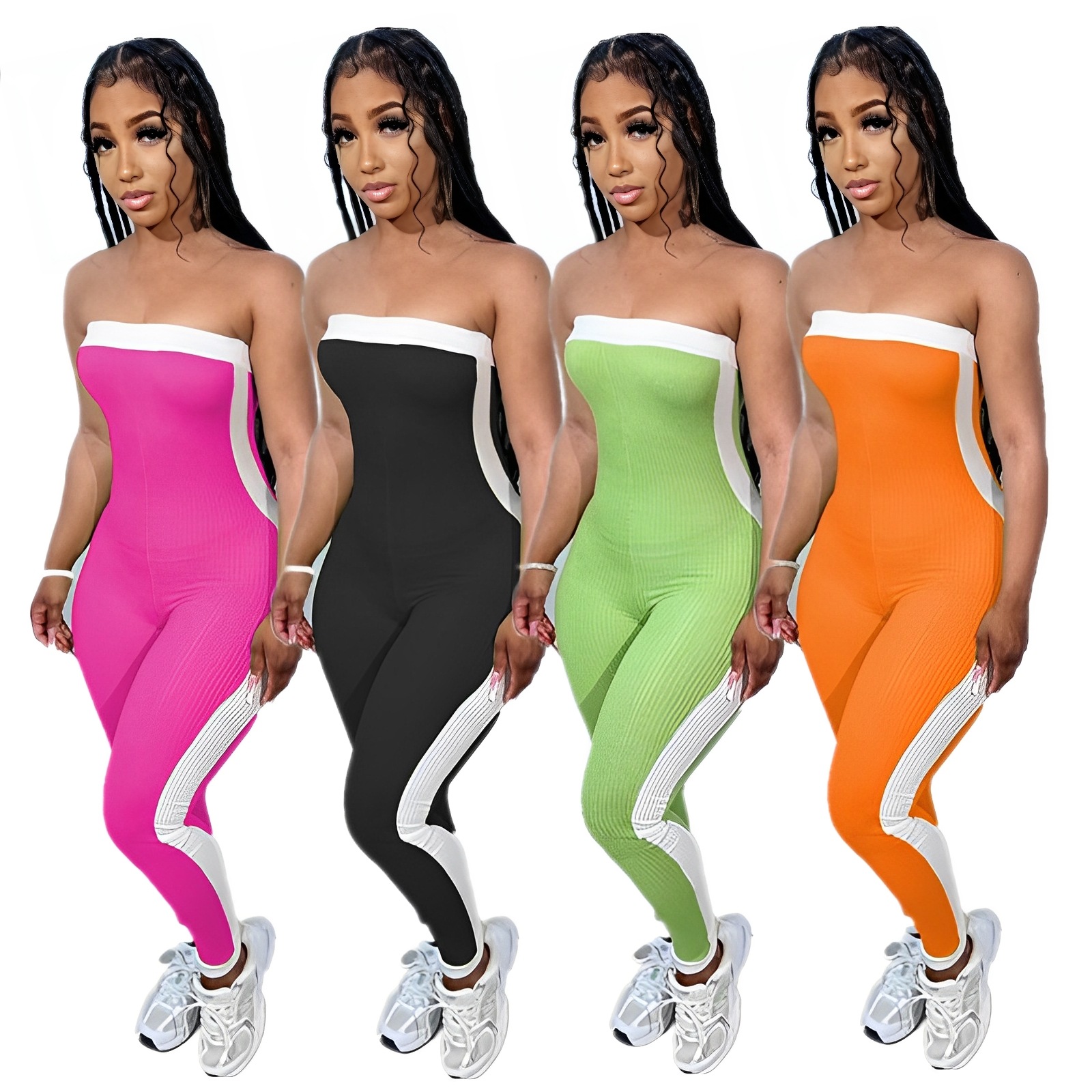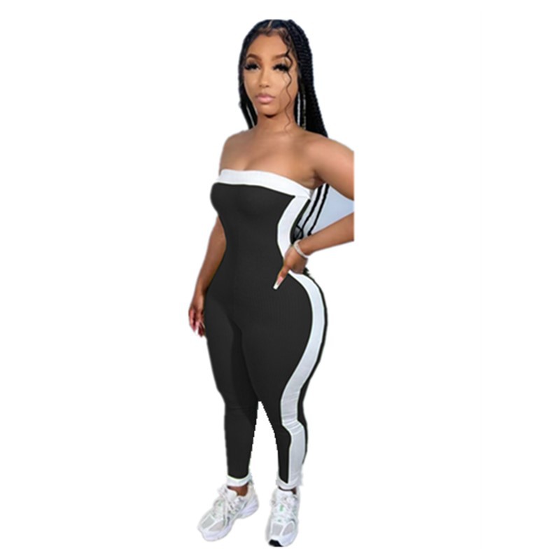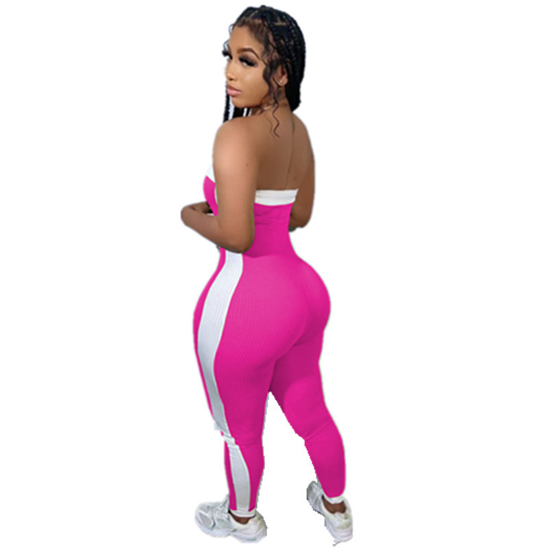 This Strapless Color Block Sexy Tight Fitting Sporty Jumpsuit Design Made Of High Quality Polyster And Spandex Material. It Is Stretchy, Durable And Comfortable. Affordable Sexy Jumpsuits For Women Has Long Been a Party Favorite. BamBam provides a Rich selection Of Sequin, Beaded, See Through Mesh, Leopard, Floral Lace, Leather, Velvet, Tight And Fitted retail Jumpsuit Without Moq Limit.