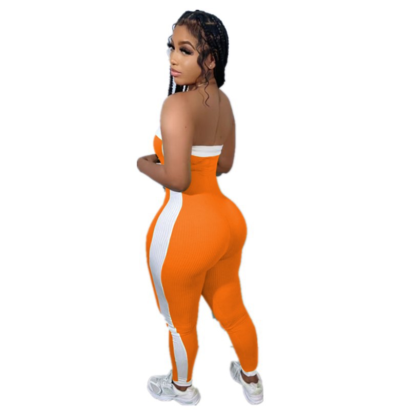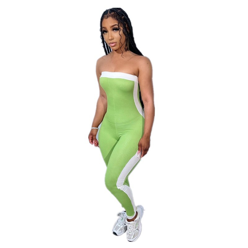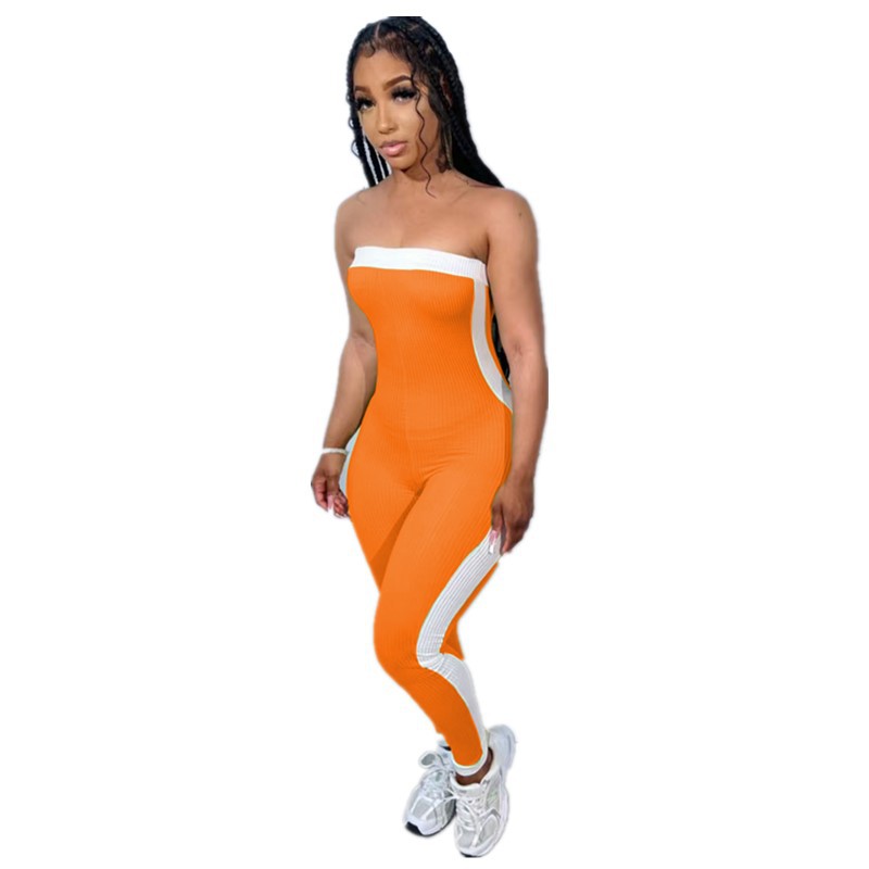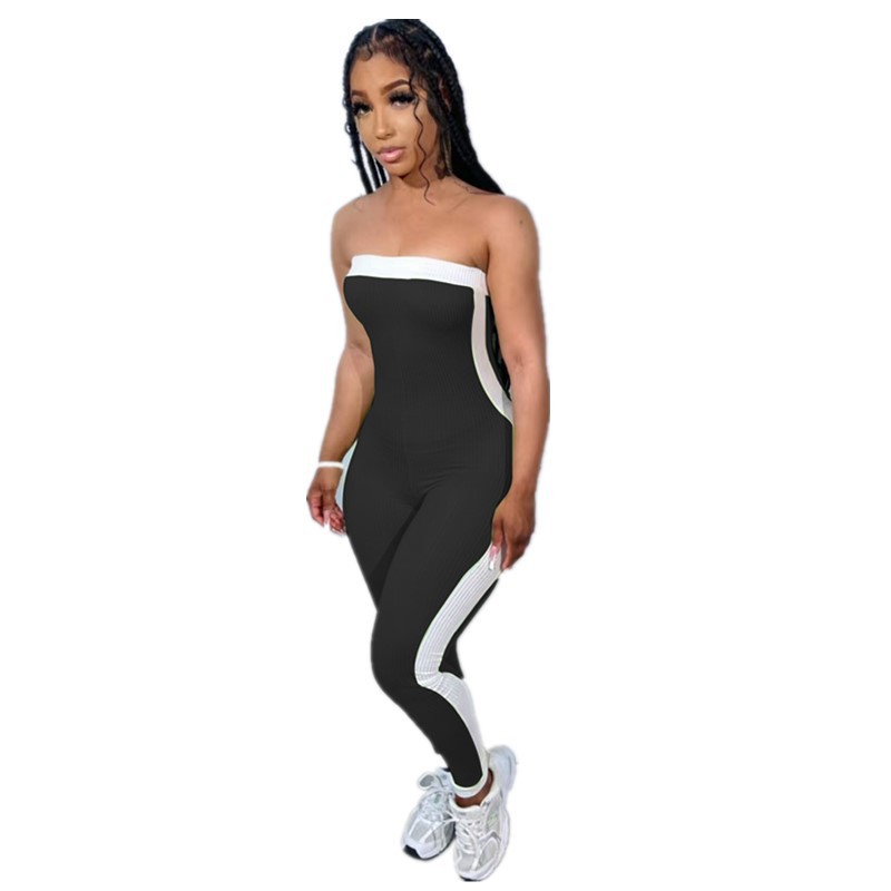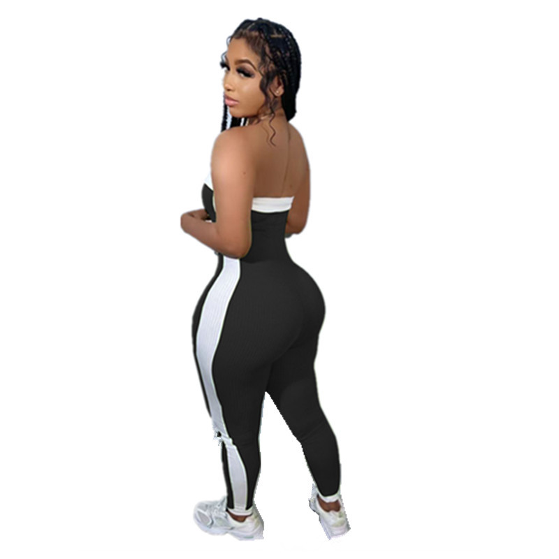 This Strapless Color Block Sexy Tight Fitting Sporty Jumpsuit Design Made Of High Quality Polyster And Spandex Material. It Is Stretchy, Durable And Comfortable. Affordable Sexy Jumpsuits For Women Has Long Been a Party Favorite. BamBam provides a Rich selection Of Sequin, Beaded, See Through Mesh, Leopard, Floral Lace, Leather, Velvet, Tight And Fitted retail Jumpsuit Without Moq Limit.