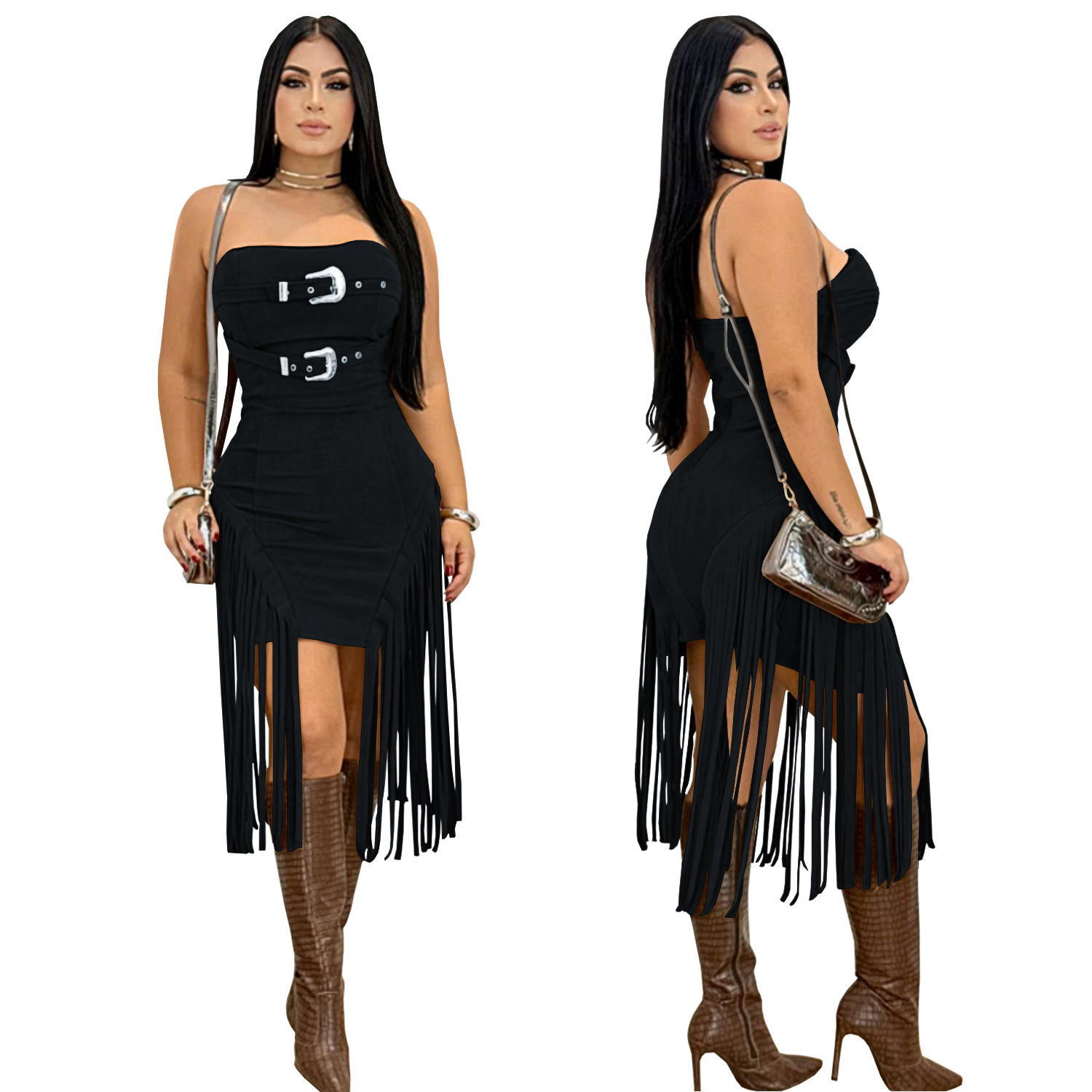 This Strapless Low Back Fringe Dress Design Made Of High Quality polyester And Spandex Material. It smooth and stretchy And wears comfortably with a keen sense of freedom and ease. The Tight And Fitted Dress Is The Most Popular dress option for those that like to party hard. Shop Bodycon Dresses At BamBam And Find Amazing Designs Sequins, Beaded, Diamond, Crystals, Lace... BamBam retail Women Dresses Online Store is your one stop shop that helps By Providing Vary Dresses At quality and afforable prices with limitless variations.