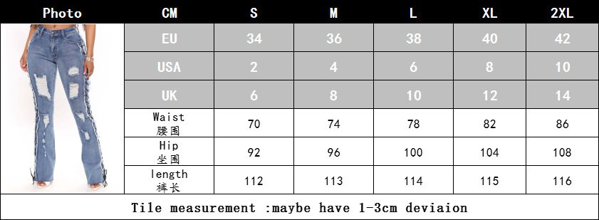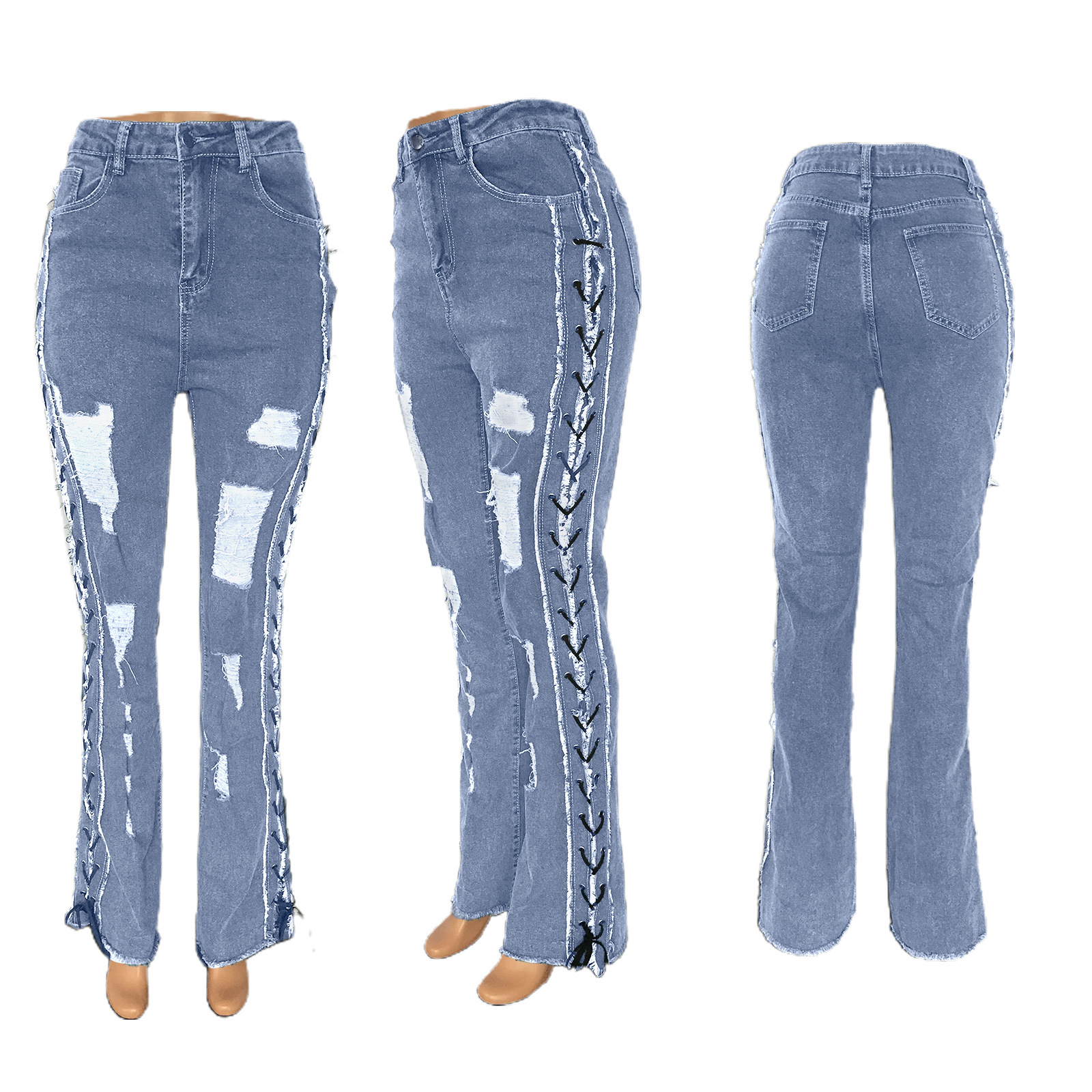 This Stretch Jeans Women Frayed Fashion Bell Bottom Washed Ripped Denim Pants Design Made Of Durable And Stretchy Jeans Fabric. It Is a Must-Have Item For everyday use. Trendy retail Jeans Is a Indispensable Item For Everyday Fashion. Women’s Jeans With High Waist Is a Must Have trouser/pant that helps bring the grace of shape of your legs out even more and fits perfectly snugging your thighs and body gracefully. Grab a Must Have High Waist Jeans retail For Your Closet, Just Choose Different Matching Tops To stay in control of Every Occasion Easily.