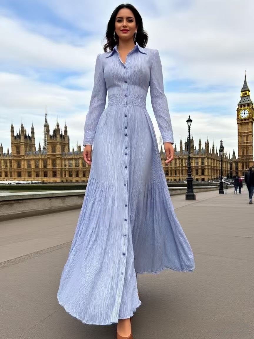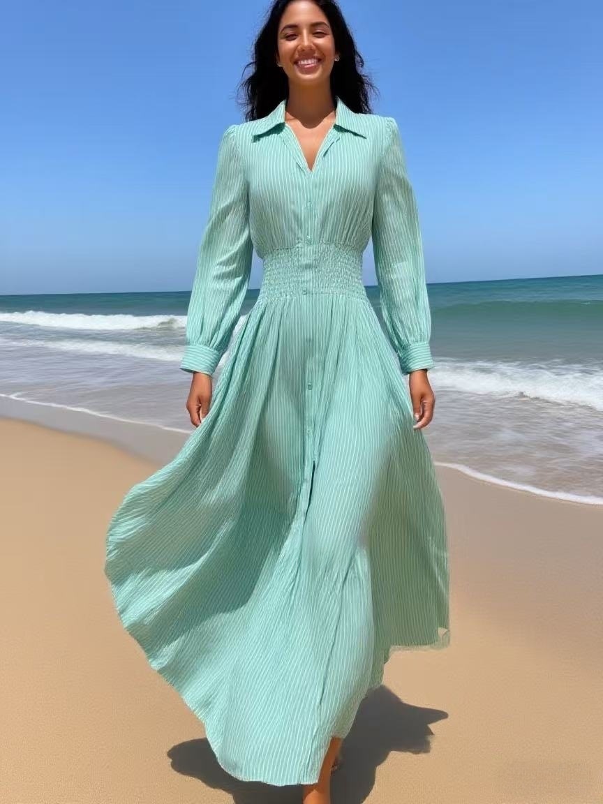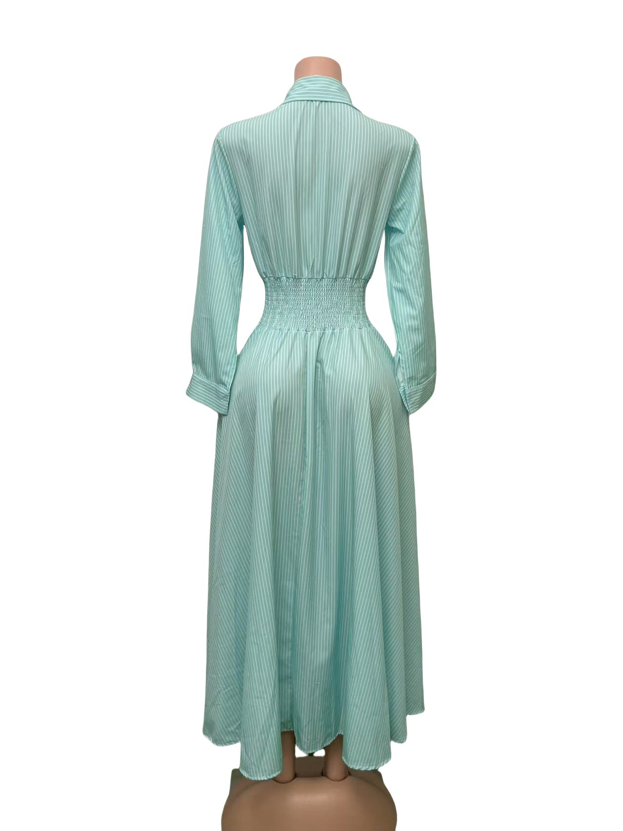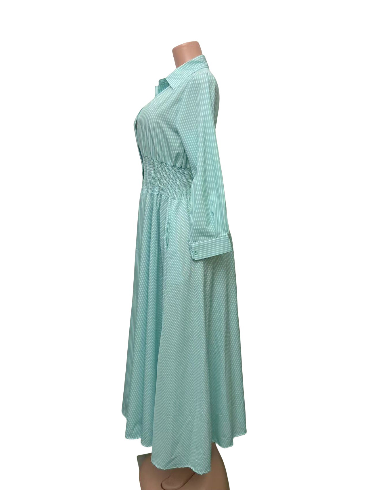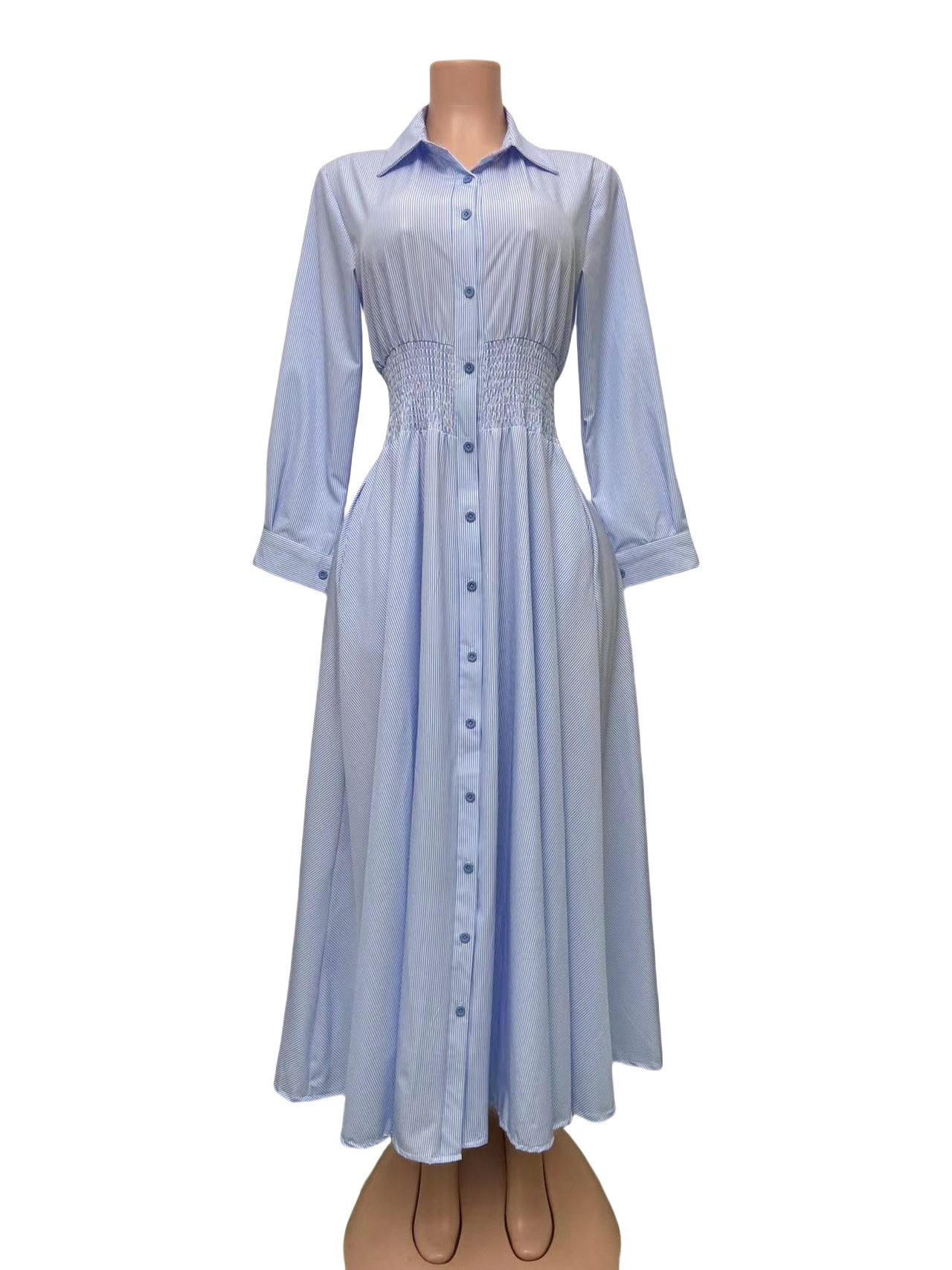 This Striped Turndown Collar Long-Sleeve Button Slim Waist a-Line Gown Design Made Of High Quality polyester And Spandex Material, Which Is Stretchy, Soft And Comfortable. It's Always On Trend. This Casual Maxi Dresses Is a Must-Have For Vocations And Dating Occasions. Maxi Dresses At BamBam Comes With Huge Selections Of Colors, Sizes, Material, And Designs. When You Need retail affordable Maxi Dresses, You Can Always Find Vary Collection And No Moq On Our retail Women Fashion Online Store.
