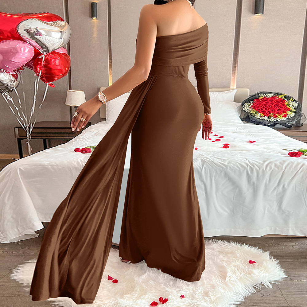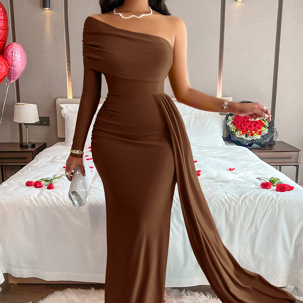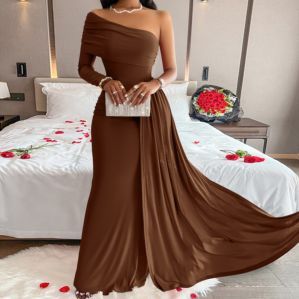 This Summer Casual Sexy Women's Solid Color Slash Shoulder Slim Waist Long Dress Design Made Of Good Quality polyester And Spandex Material, Which Is Stretchy, Durable And Comfortable. The Long Evening Dresses And gowns are Always The main Choice For All Kinds Of Parties, Cocktail, Prom, Events, And Dating Occasions. Evening Gowns At BamBam Comes With Huge Selections - Sequins, Beaded, Satin, Velvet, Lace.... When You Need retail Evening Dresses, BamBam retail Women Garment Online Shop Is Your One-Stop Online Shopping Choice.