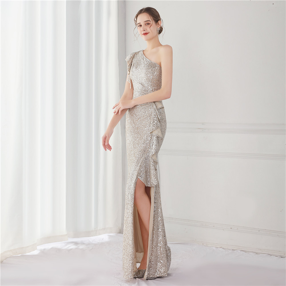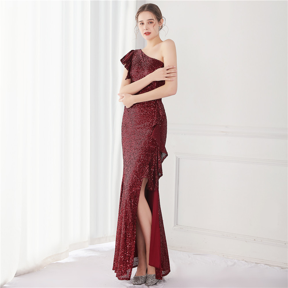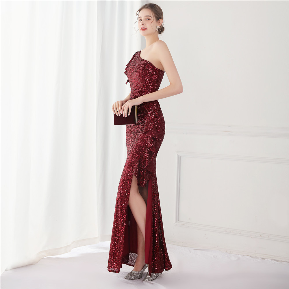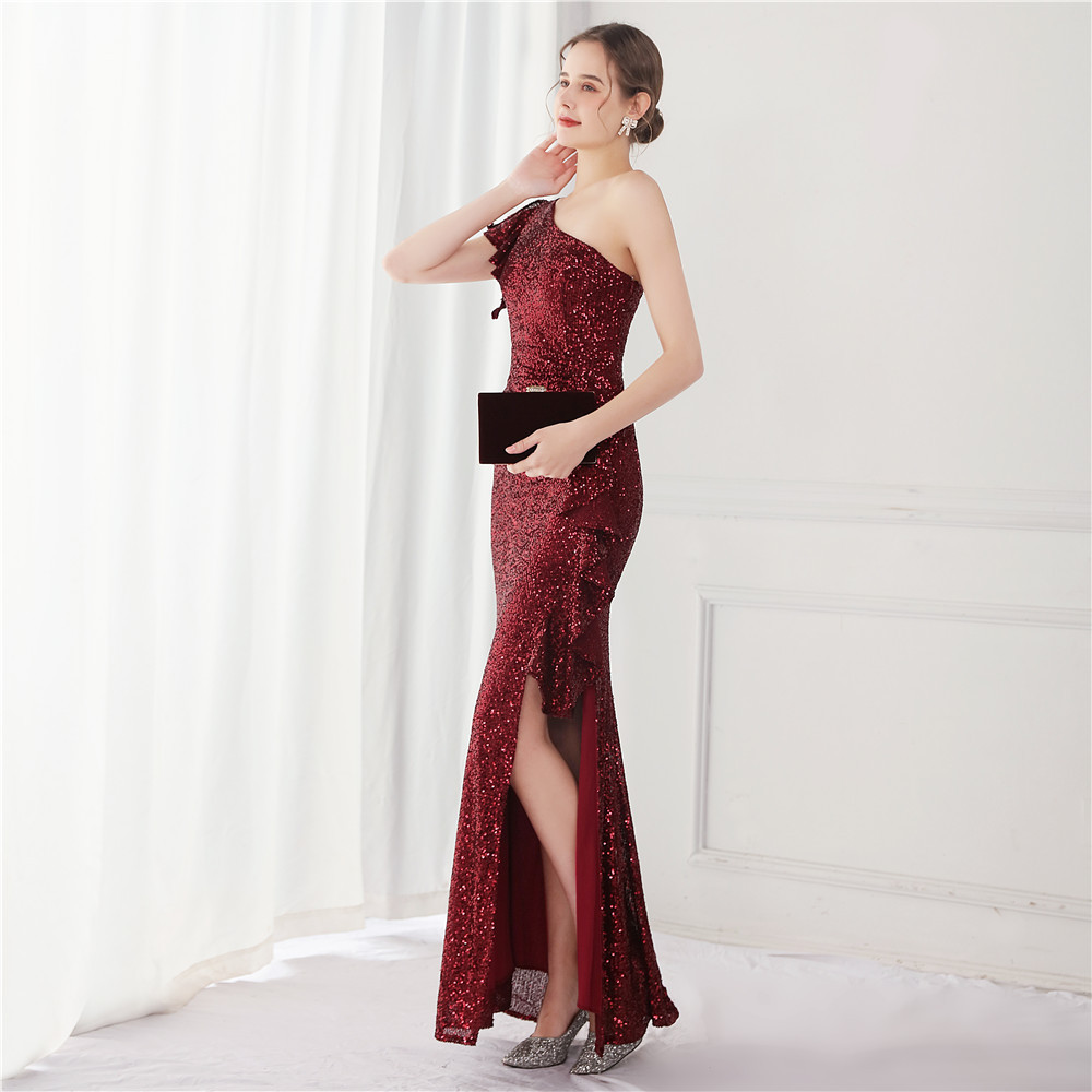 This Summer Elegant One Shoulder Slit Cocktail Evening Dress Design Made Of Good Quality Polyester And Spandex Material, Which Is Stretchy, Durable And Comfortable. The Long Evening Dresses And Gowns Is Always The main Choice For All Kinds Of Parties, Cocktail, Prom, Events, And Dating Occasions. Evening Gowns At BamBam Comes With Huge Selections - Sequins, Beaded, Satin, Velvet, Lace.... When You Need retail Evening Dresses, BamBam retail Women Garment Online Shop Is Your One-Stop Online Shopping Choice.