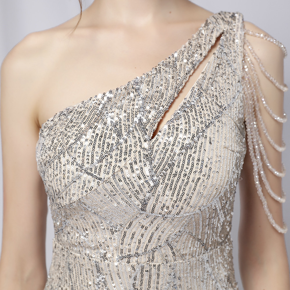 This Summer Elegant Sequin One-Shoulder Formal Party Dress Design Made Of Good Quality polyester And Spandex Material, Which Is Stretchy, Durable And Comfortable. The Long Evening Dresses And Gowns Is Always The main Choice For All Kinds Of Parties, Cocktail, Prom, Events, And Dating Occasions. Evening Gowns At BamBam Comes With Huge Selections - Sequins, Beaded, Satin, Velvet, Lace.... When You Need retail Evening Dresses, BamBam retail Women Garment Online Shop Is Your One-Stop Online Shopping Choice.