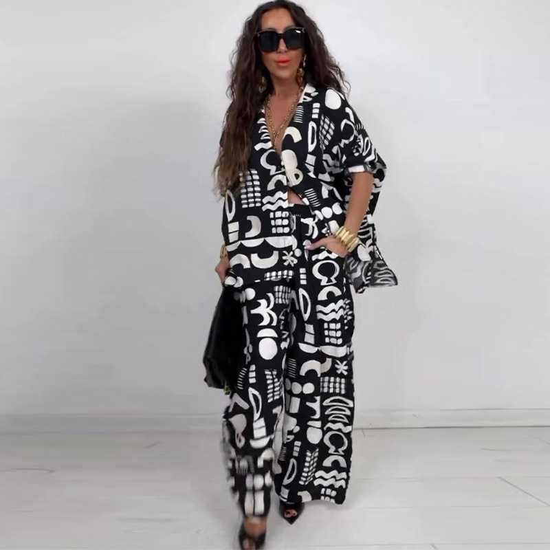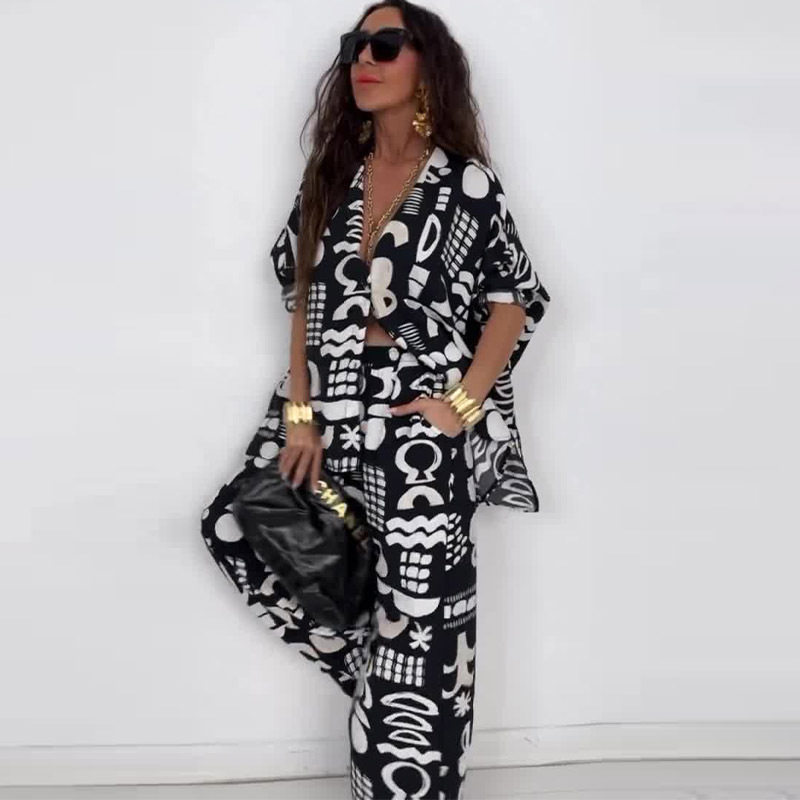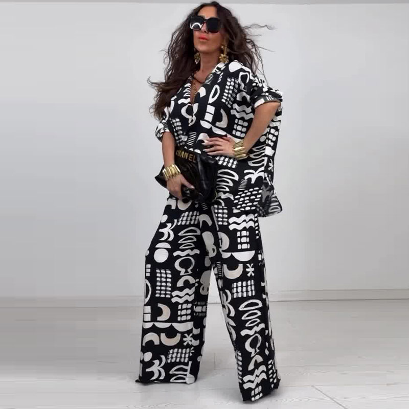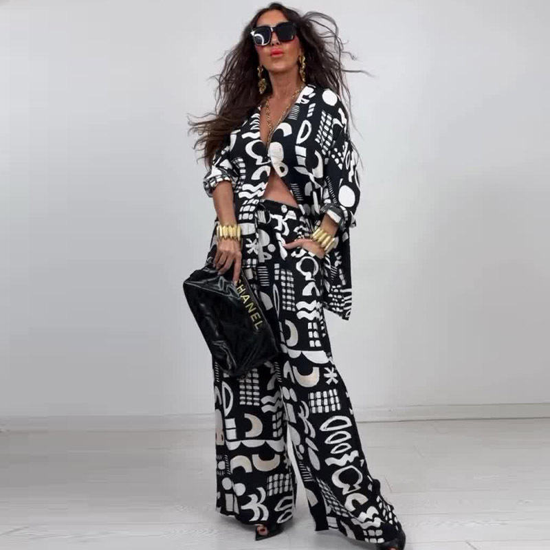 This Summer Elegant Sexy Printed Top + Wide-Leg Pants Two-Piece Set Design Made Of High Quality polyester And Spandex Material. It Is Stretchy, Durable And Comfortable. It Is a Must-Have Outfit For All Seasons. retail Two Piece Pant Sets Can Solve Your cloth selection Troubles. Explore More 2 Piece Pants Set On BamBam retail Women Clothing Online Store.