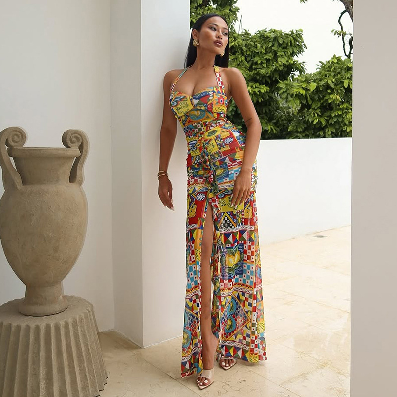 This Summer Fashion Chic Elegant Printed Sleeveless Halter Neck Lace Dress Design Made Of High Quality polyester And Spandex Material. It Is Stretchy, Durable And Comfortable. Casual Dresses With Long Sleeves Can Not Only Be Worn As Outerwear In Spring And Autumn, But Also Matching a Jacket In Winter, It Is a Must Have Item For Every Season. Grab Really Great Buy Casual Dresses For Women And Grow Your Business. No Moq In BamBam.