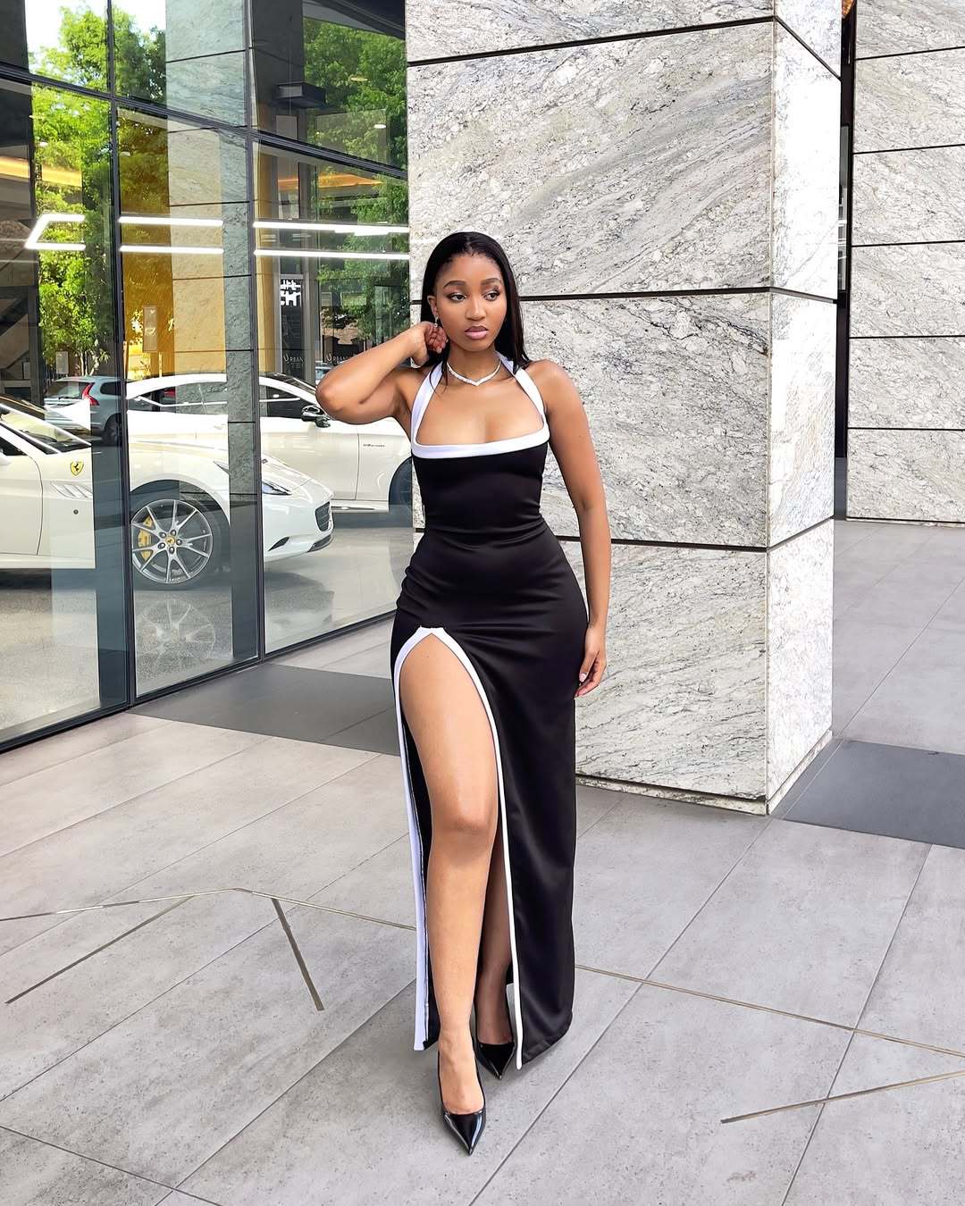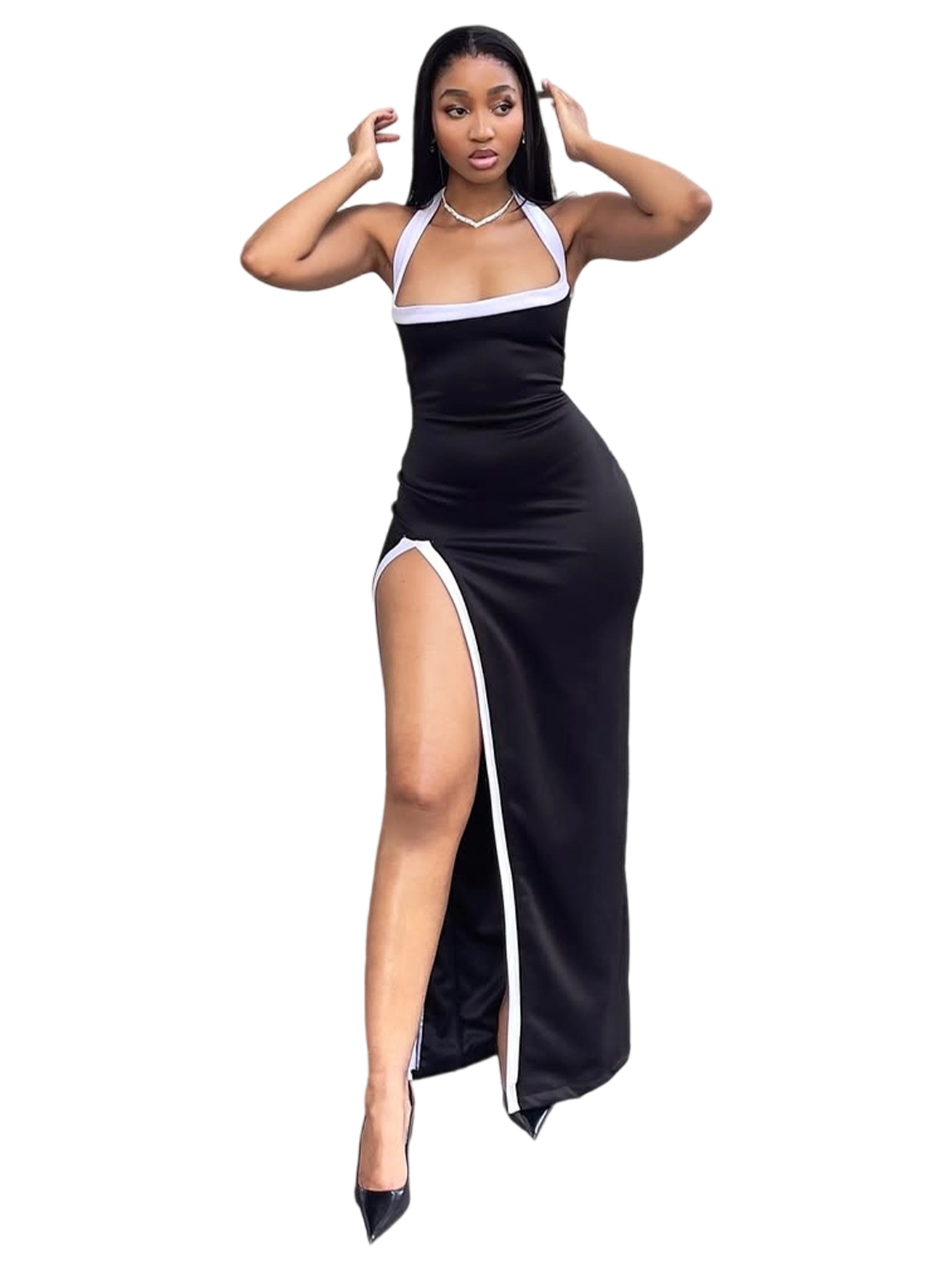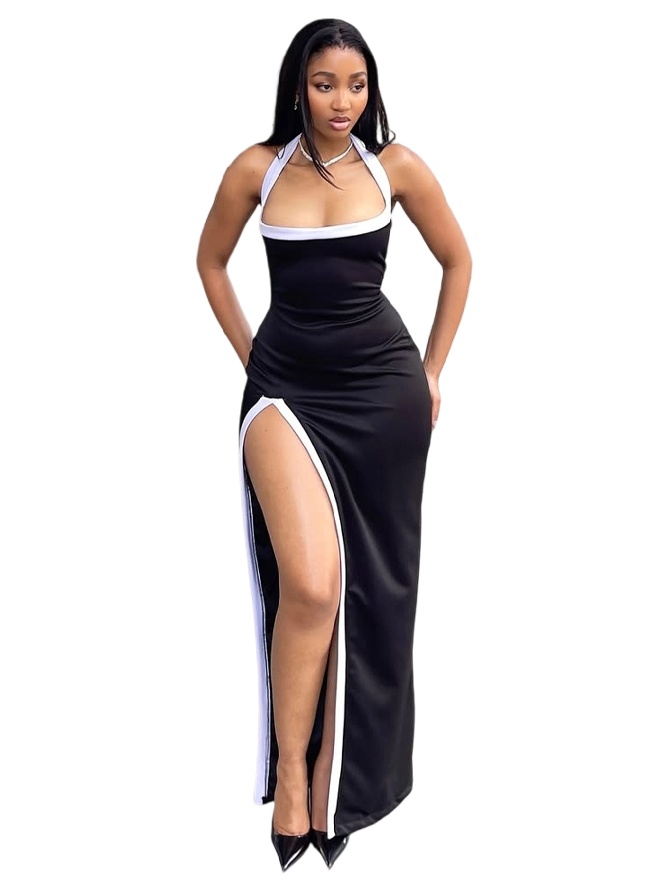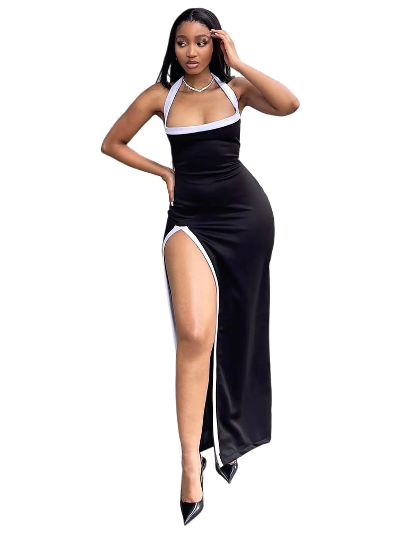 This Summer Fashion White Contrast Color High-Slit Halter Neck Dress Design Made Of High Quality polyester And Spandex Material. It Is Stretchy, Durable And Comfortable. Casual Dresses With Long Sleeves Can Not Only Be Worn As Outerwear In Spring And Autumn, But Also Matching a Jacket In Winter, It Is a Must Have Item For Every Season. Grab Really Great Buy Casual Dresses For Women And Grow Your Business. No Moq In BamBam.