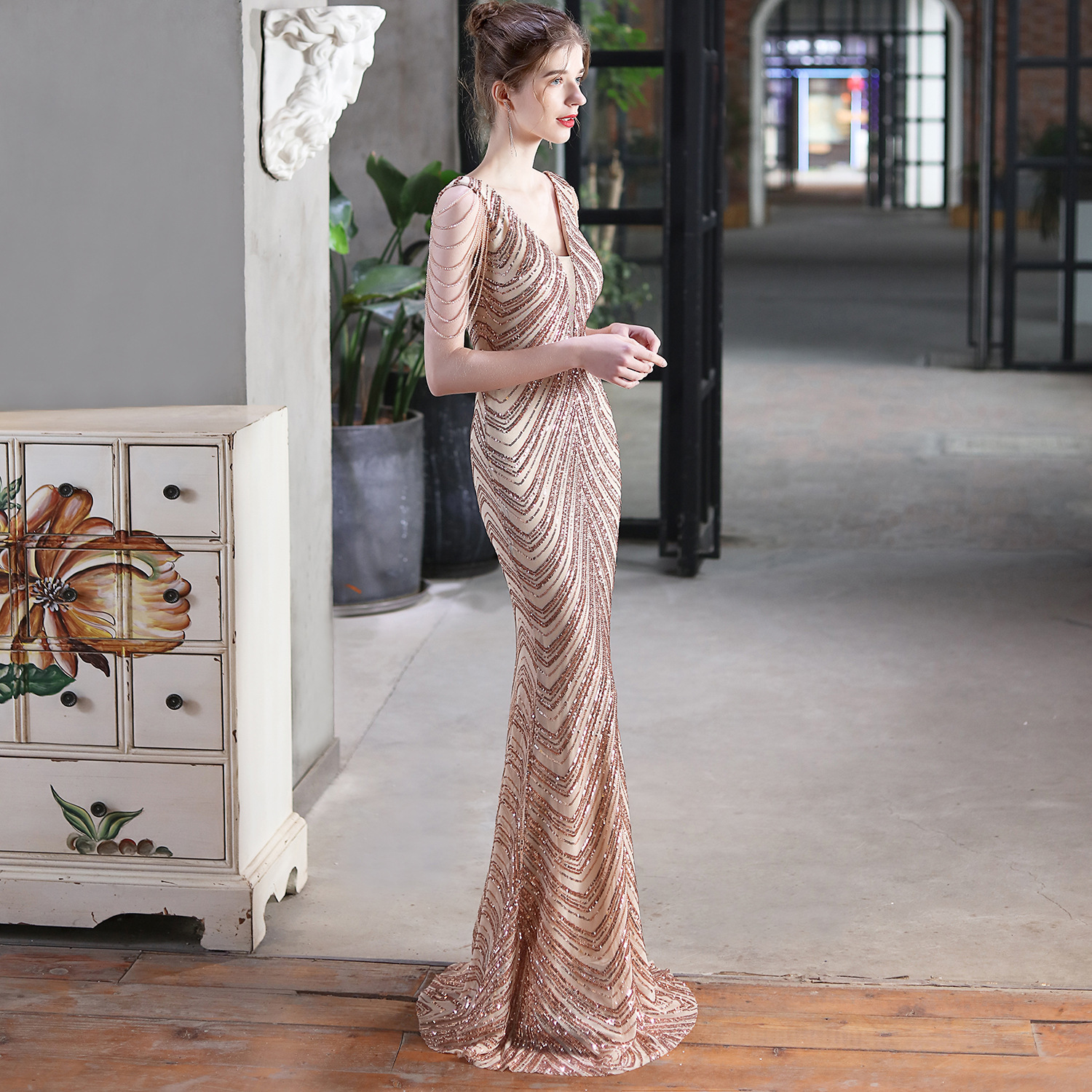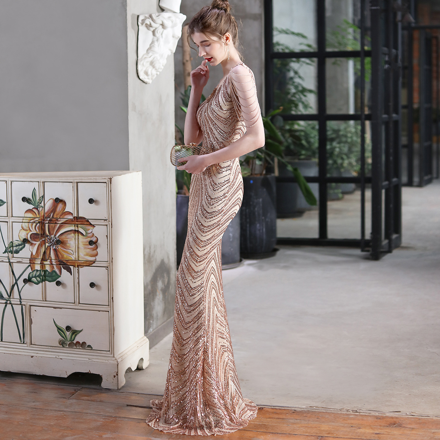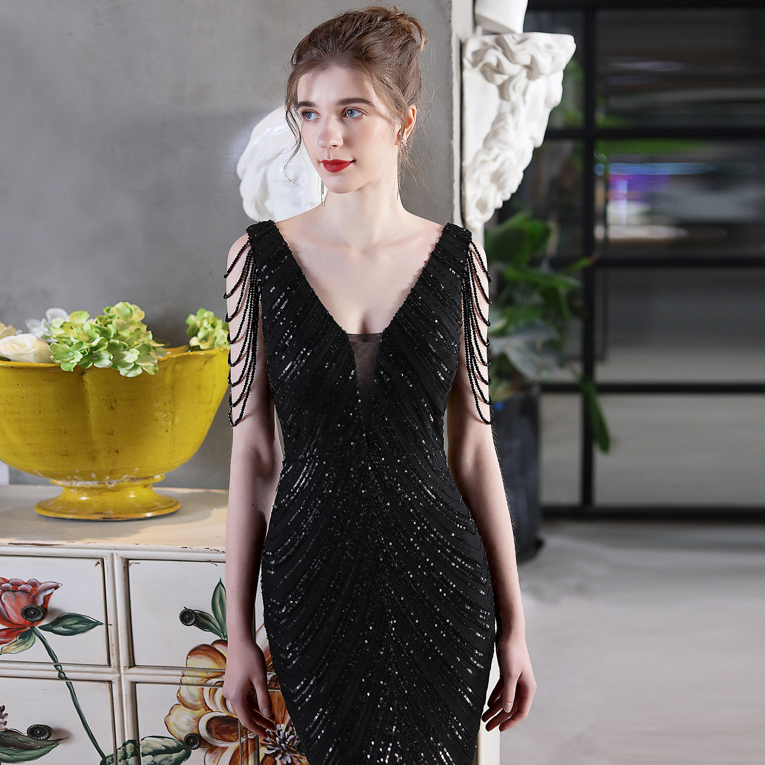 This Summer Formal Sequin v-Neck Mermaid Evening Dress Design Made Of Good Quality polyester And Spandex Material, Which Is Stretchy, Durable And Comfortable. The Long Evening Dresses And Gowns Is Always The main Choice For All Kinds Of Parties, Cocktail, Prom, Events, And Dating Occasions. Evening Gowns At BamBam Comes With Huge Selections - Sequins, Beaded, Satin, Velvet, Lace.... When You Need retail Evening Dresses, BamBam retail Women Garment Online Shop Is Your One-Stop Online Shopping Choice.