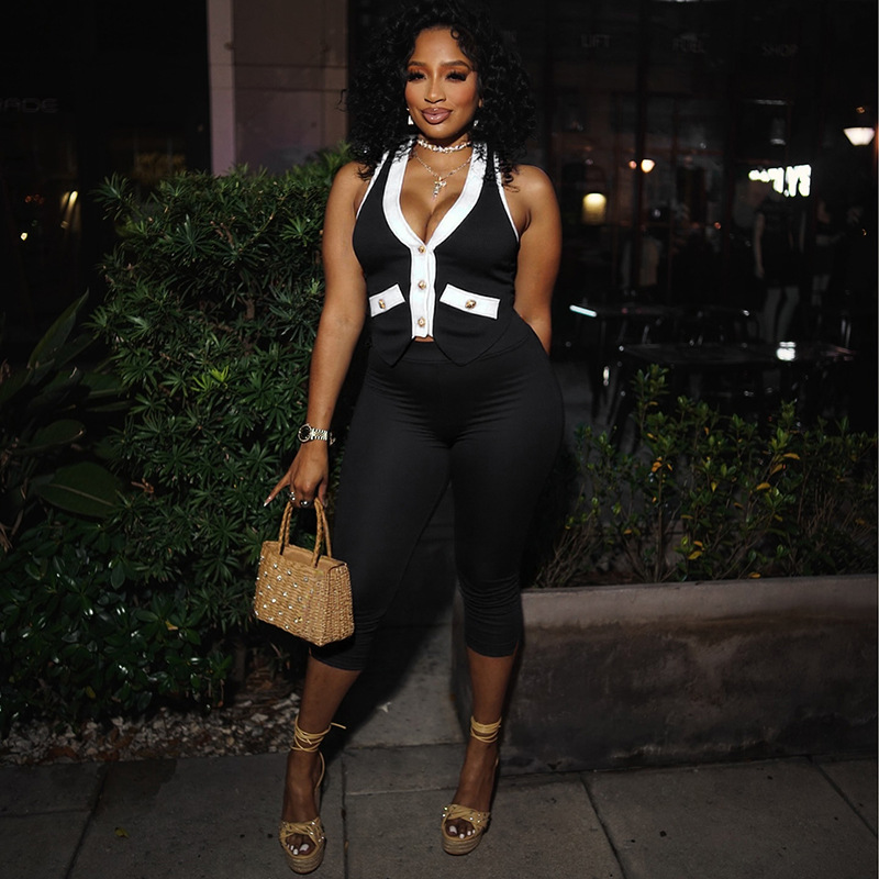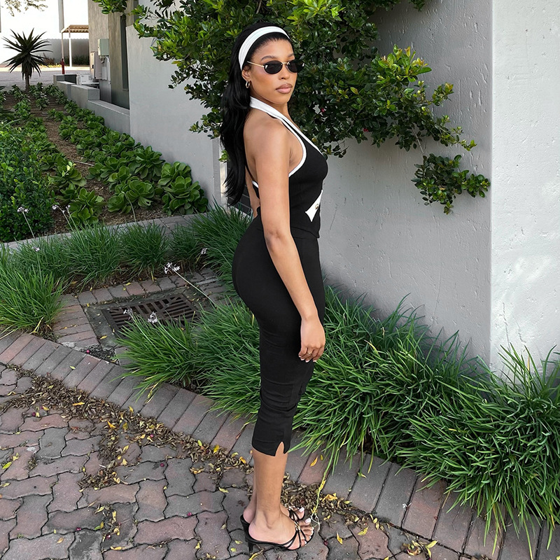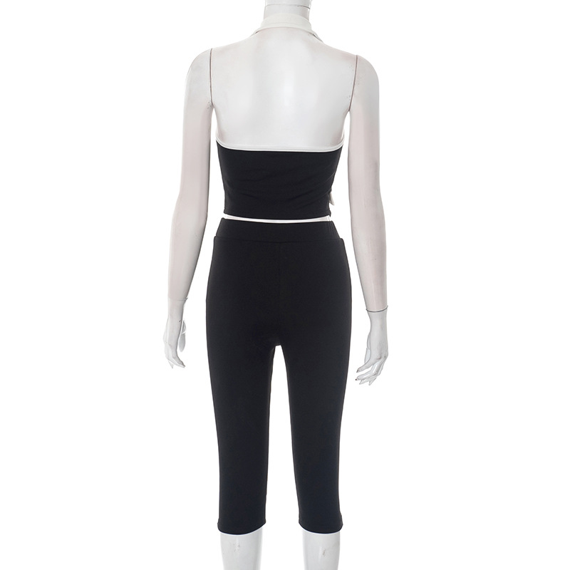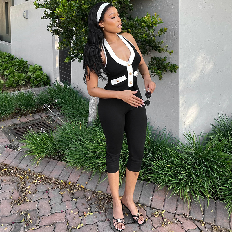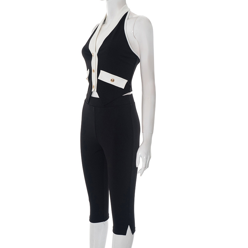 This Summer Halter Neck Contrast Gold Button Low-Back Two-Piece Shorts Set Design Made Of High Quality polyester And Spandex Material. It Is Stretchy, Durable And Comfortable. It Come With The Top And Shorts. retail Short Sets Saves Some People From The Trouble Of Matching. And For Matchmakers It Is More Flexible Than One-Piece Outfit. Two Piece Short Set Can Be Worn Together Or Individually, Ladies Can Match Them According To Different Occasions. Grab Different Two Piece Short Sets For This Spring And Summer.