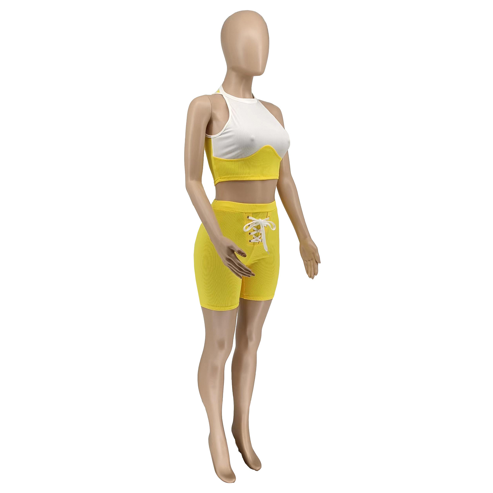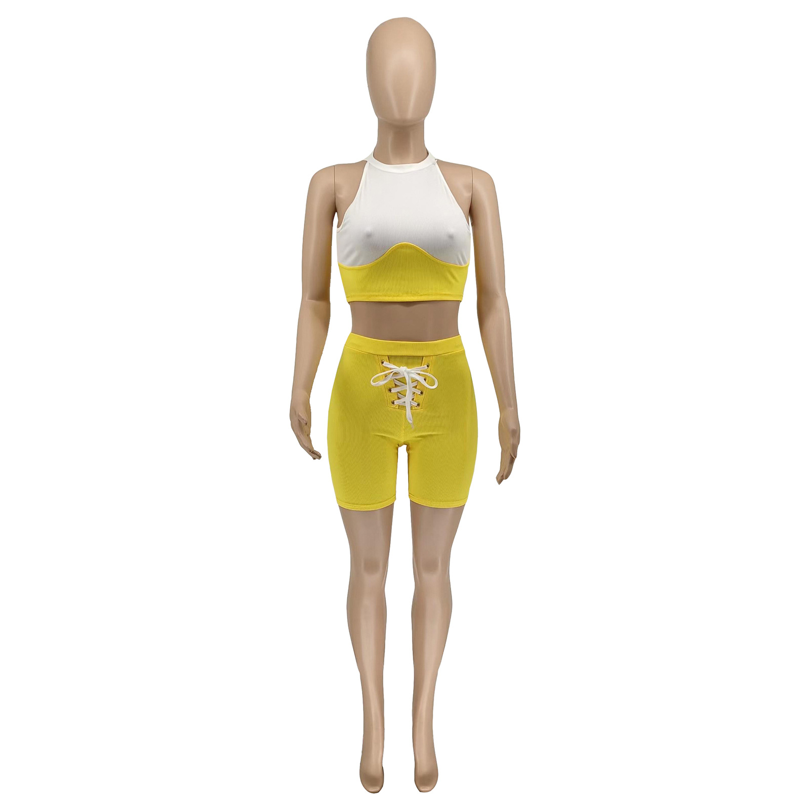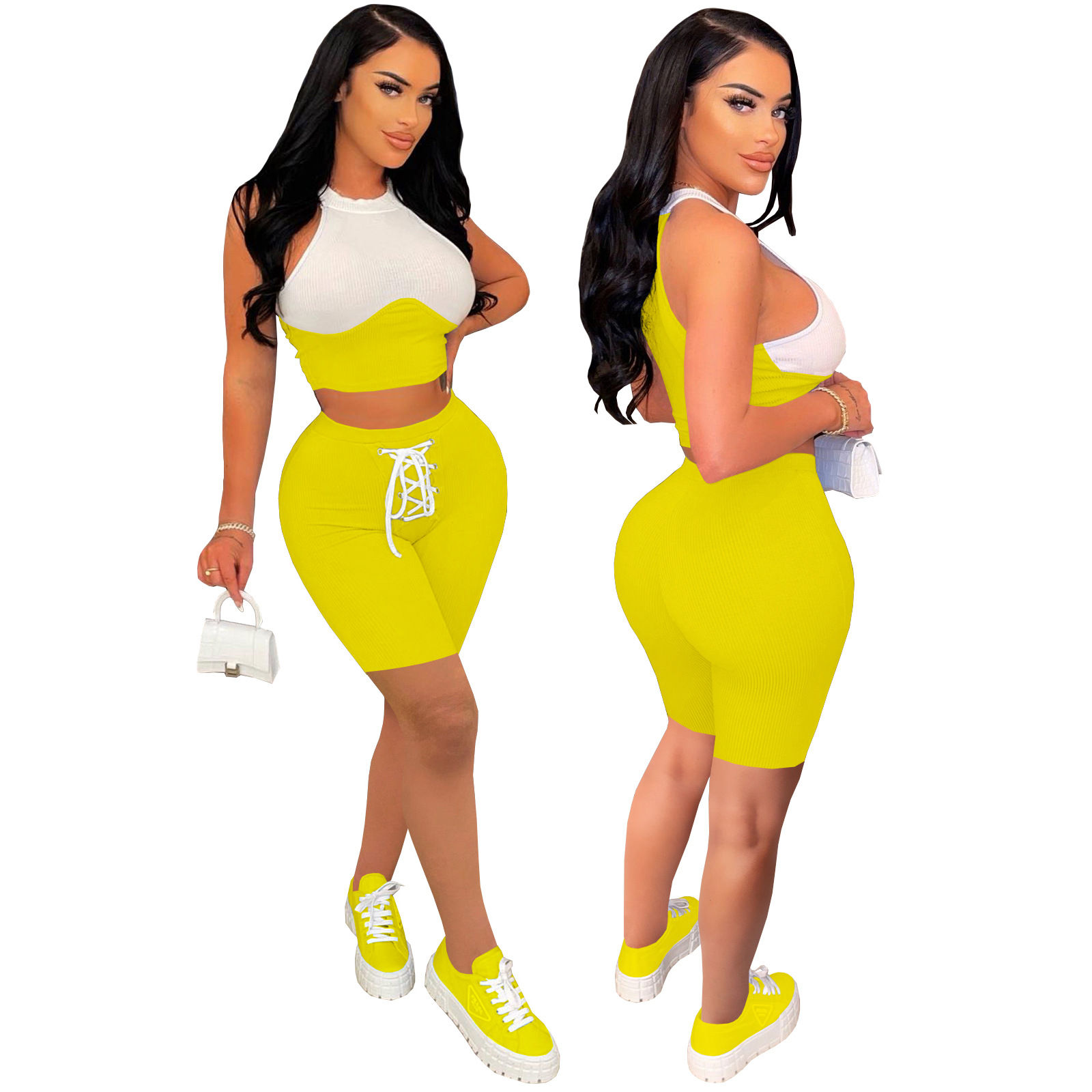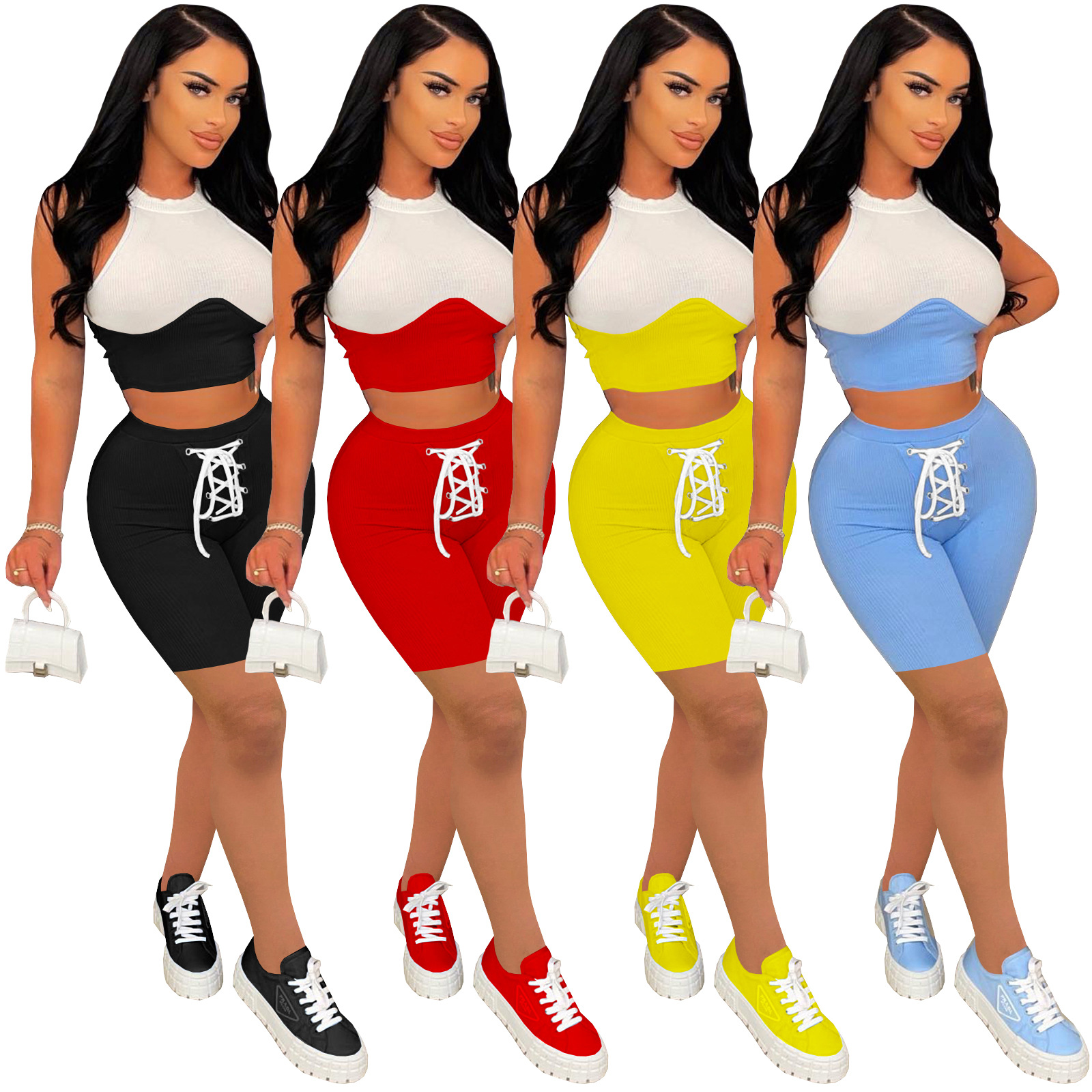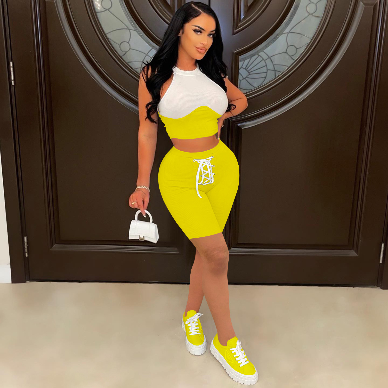 This Summer Sexy Solid Colorblock Knitted Crop Top Shorts Two-Piece Set Design Made Of High Quality polyester And Spandex Material. It Is Stretchy, Durable And Comfortable. It Come With The Top And Shorts. retail Short Sets Saves Some People From The Trouble Of Matching. And For Matchmakers It Is More Flexible Than One-Piece Outfit. Two Piece Short Set Can Be Worn Together Or Individually, Ladies Can Match Them According To Different Occasions. Grab Different Two Piece Short Sets For This Spring And Summer.