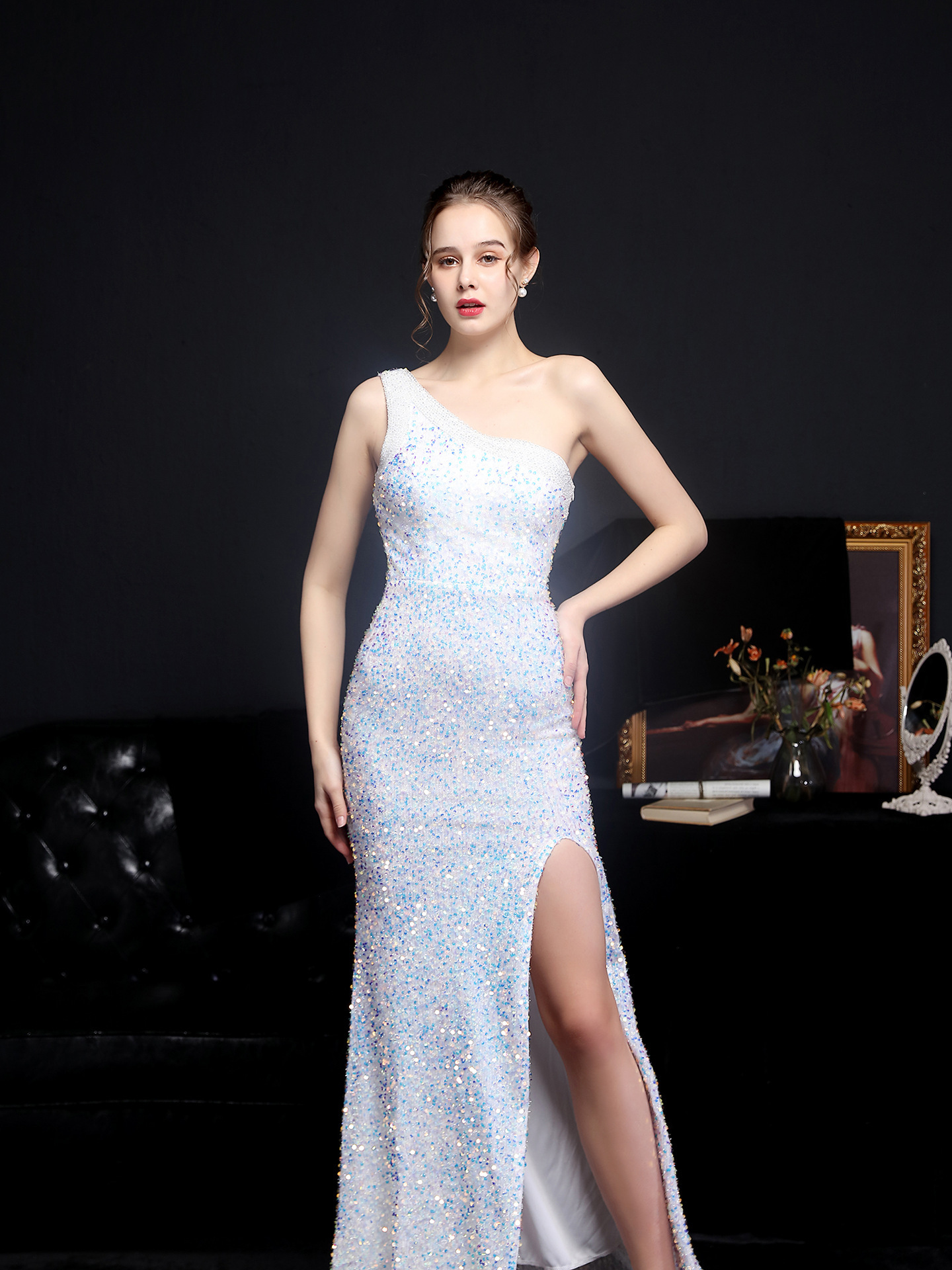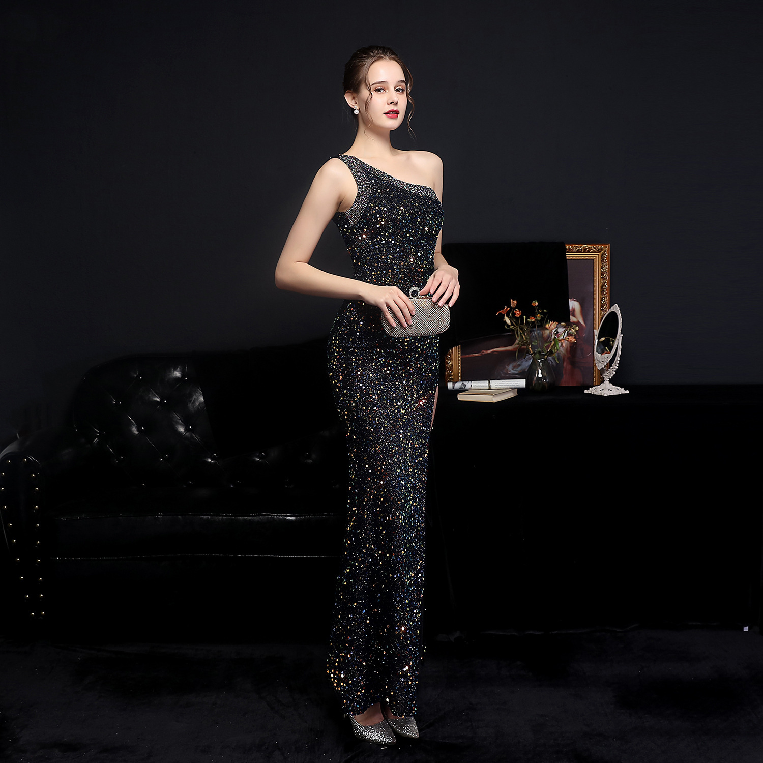 This Summer Side Slit One Shoulder Sequin Evening Dress Design Made Of Good Quality polyester And Spandex Material, Which Is Stretchy, Durable And Comfortable. The Long Evening Dresses And Gowns Is Always The main Choice For All Kinds Of Parties, Cocktail, Prom, Events, And Dating Occasions. Evening Gowns At BamBam Comes With Huge Selections - Sequins, Beaded, Satin, Velvet, Lace.... When You Need retail Evening Dresses, BamBam retail Women Garment Online Shop Is Your One-Stop Online Shopping Choice.