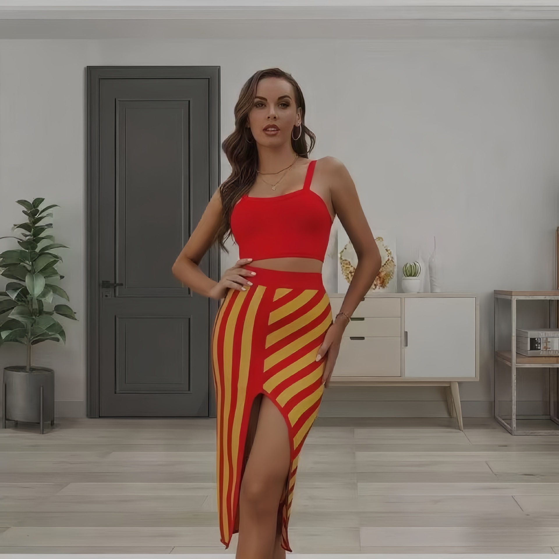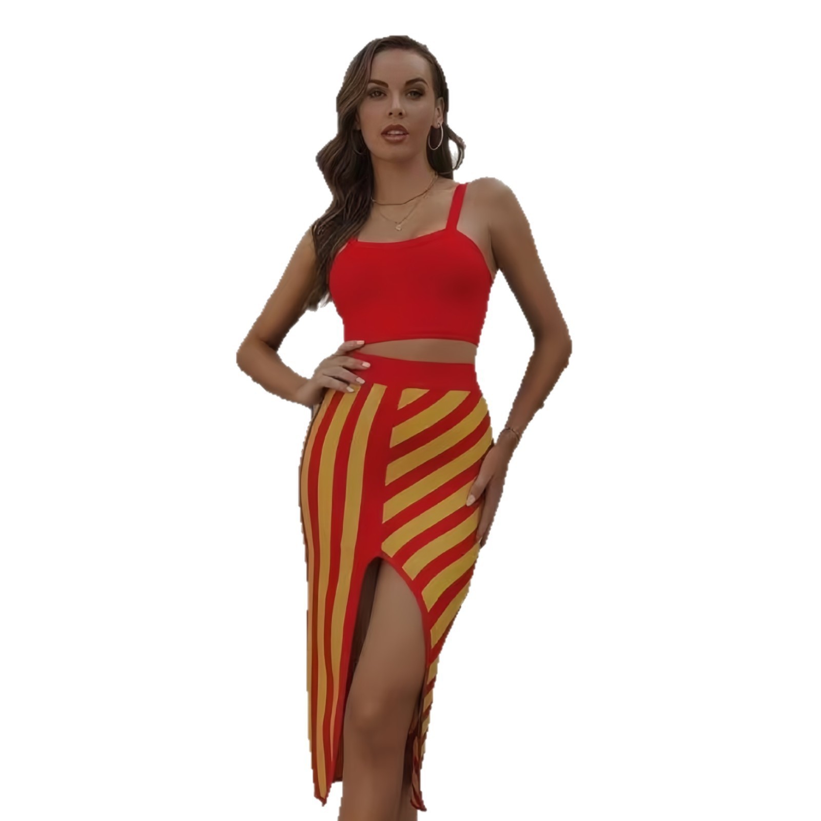 This Summer Strap Vest & Slit Mini Skirt Set Design Made Of High Quality polyester And Spandex Material. It Is Stretchy, Durable And Comfortable. It Come With The Top And Skirt Matching Set. Women’s Skirt Suit Sets Is a Great Alternative To One Piece Outfit. It Can Either Be Worn Together Or Individually, So You Can Combine Them Endlessly. Grab Different Two Piece Skirt Set retail On Our Website a Women's Clothing Store Online At Really affordable price And Enjoy fast delivery worldwide.