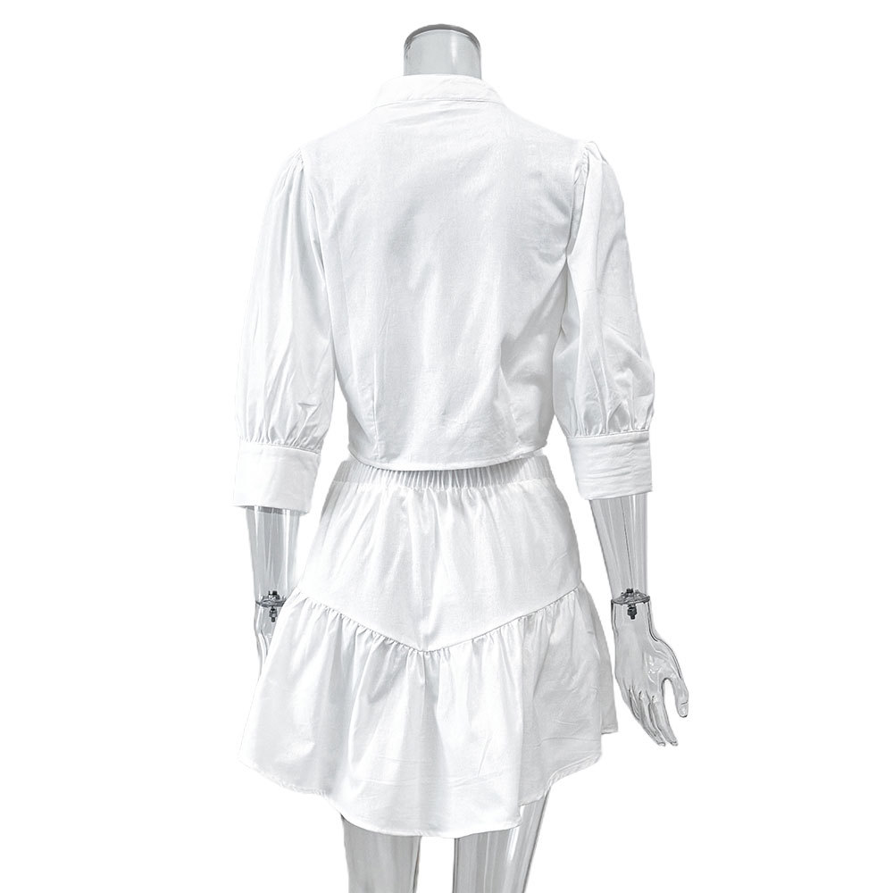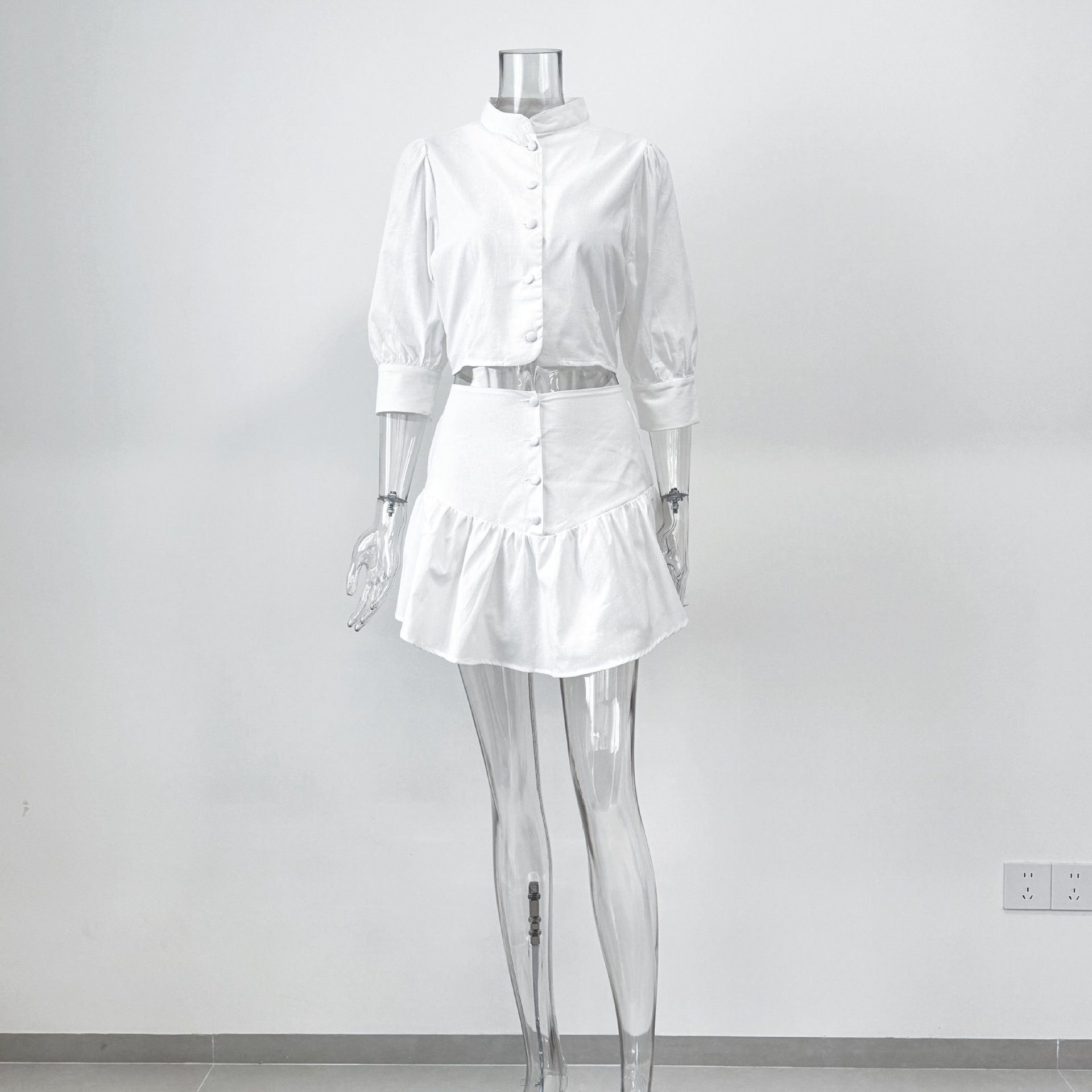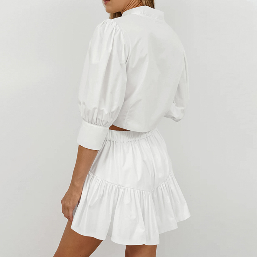 This Summer White Lantern Sleeve Shirt & Skirt Two-Piece Casual Office Set Design Made Of High Quality polyester And Spandex Material. It Is Stretchy, Durable And Comfortable. It Come With The Top And Skirt Matching Set. Women’s Skirt Suit Sets Is a Great Alternative To One Piece Outfit. It Can Either Be Worn Together Or Individually, So You Can Combine Them Endlessly. Grab Different Two Piece Skirt Set retail On Our Website a Women's Clothing Store Online At Really affordable price And Enjoy fast delivery worldwide.