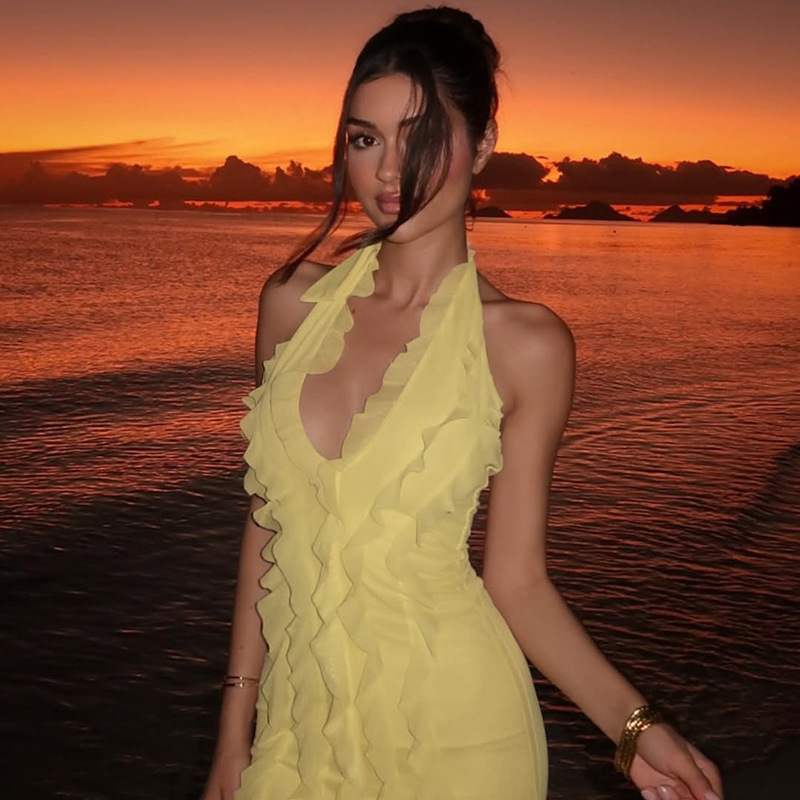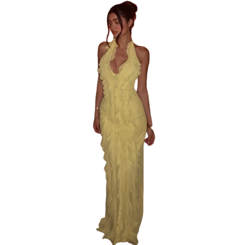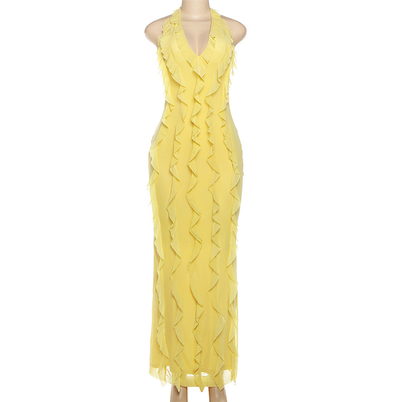 This Summer Women's Fashion Sleeveless Low Back Ruffled Deep v-Neck Sexy Long Dress Design Made Of High Quality polyester And Spandex Material. It smooth and stretchy And wears comfortably with a keen sense of freedom and ease. The Tight And Fitted Dress Is The Most Popular dress option for those that like to party hard. Shop Bodycon Dresses At BamBam And Find Amazing Designs Sequins, Beaded, Diamond, Crystals, Lace... BamBam retail Women Dresses Online Store is your one stop shop that helps By Providing Vary Dresses At quality and afforable prices with limitless variations.