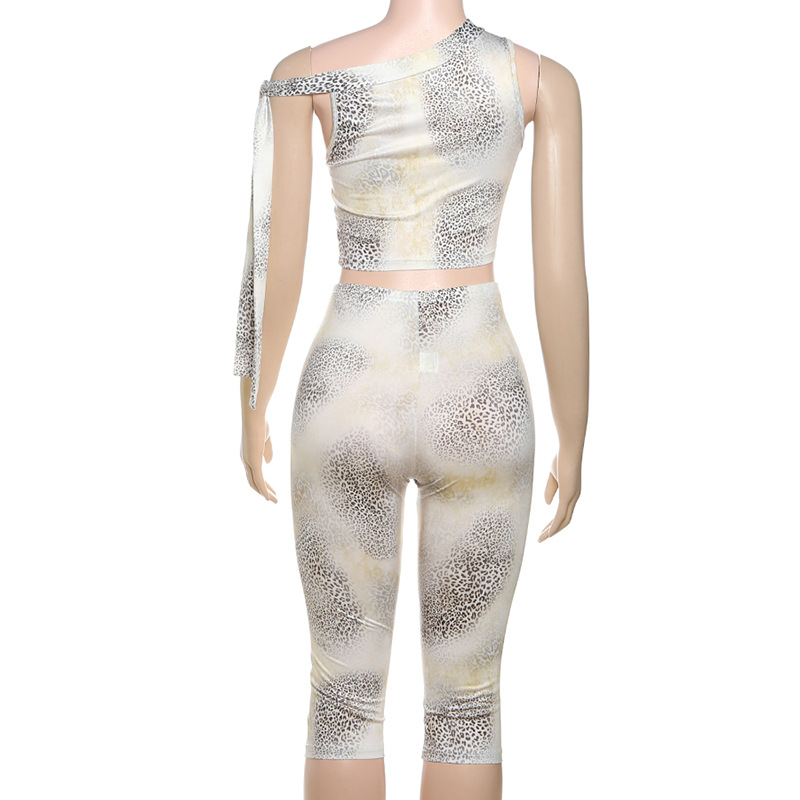 This Summer Women's Fashion Street Contrast Leopard Print One-Shoulder Crop Top Shorts Two-Piece Set Design Made Of High Quality polyester And Spandex Material. It Is Stretchy, Durable And Comfortable. It Come With The Top And Shorts. retail Short Sets Saves Some People From The Trouble Of Matching. And For Matchmakers It Is More Flexible Than One-Piece Outfit. Two Piece Short Set Can Be Worn Together Or Individually, Ladies Can Match Them According To Different Occasions. Grab Different Two Piece Short Sets For This Spring And Summer.