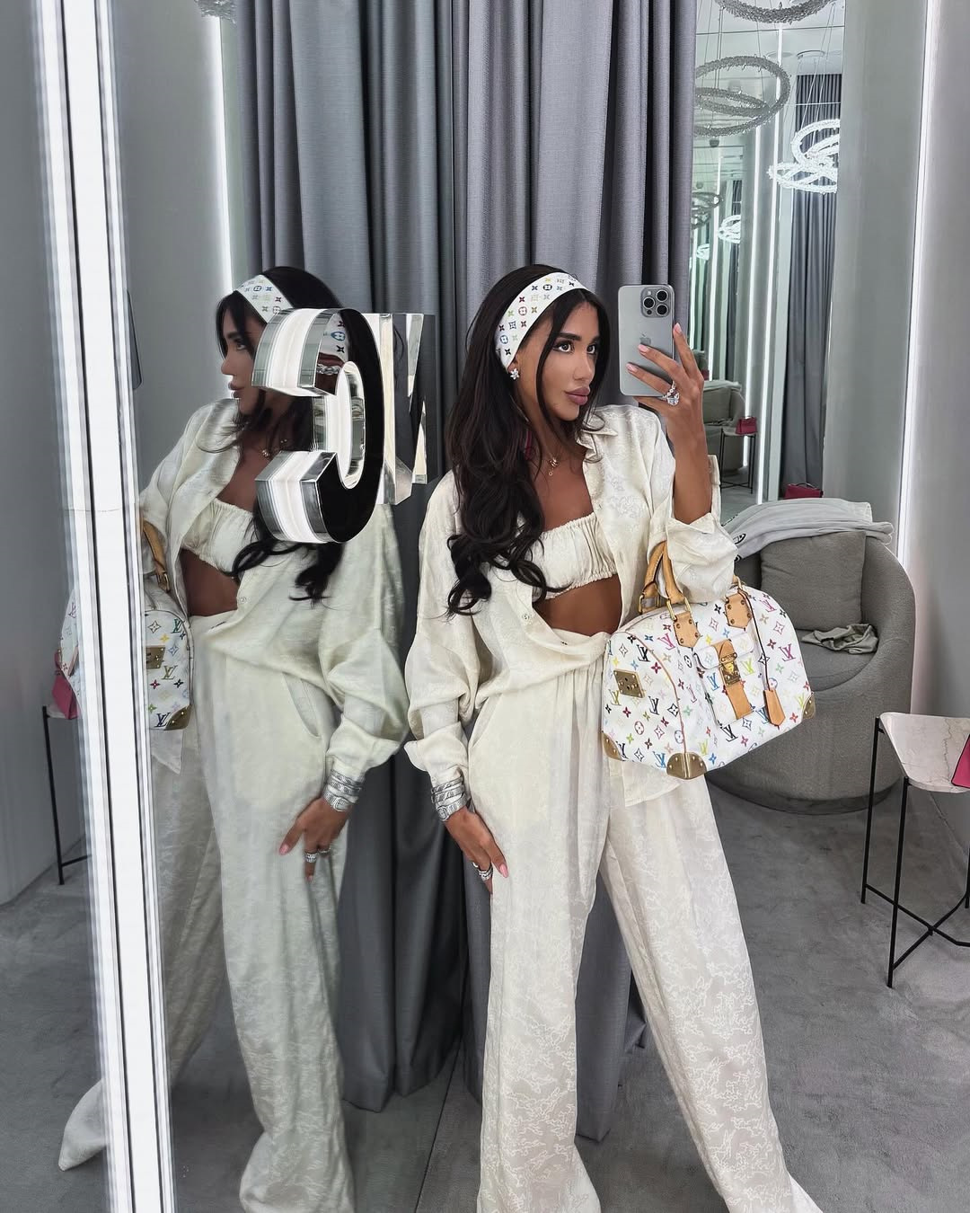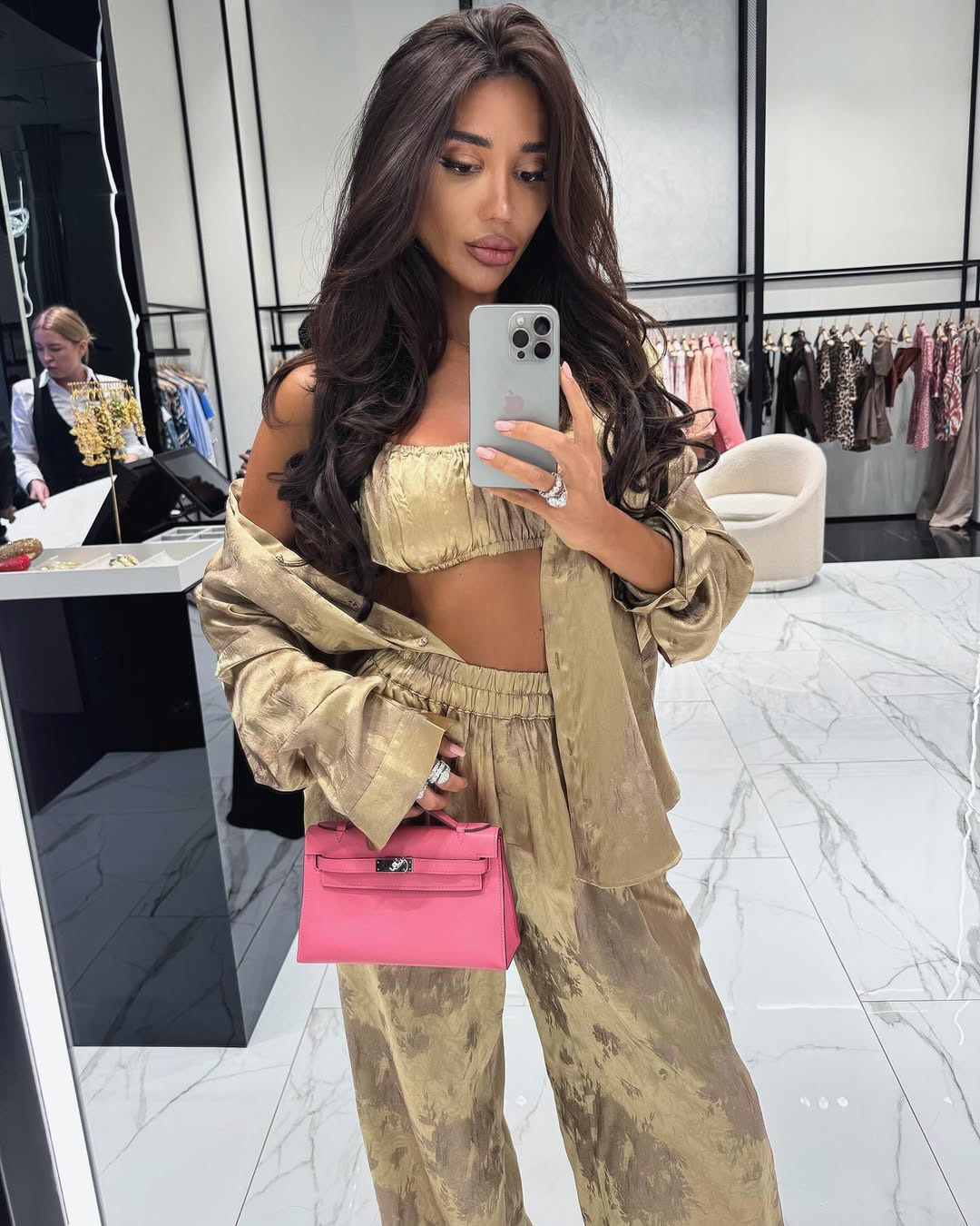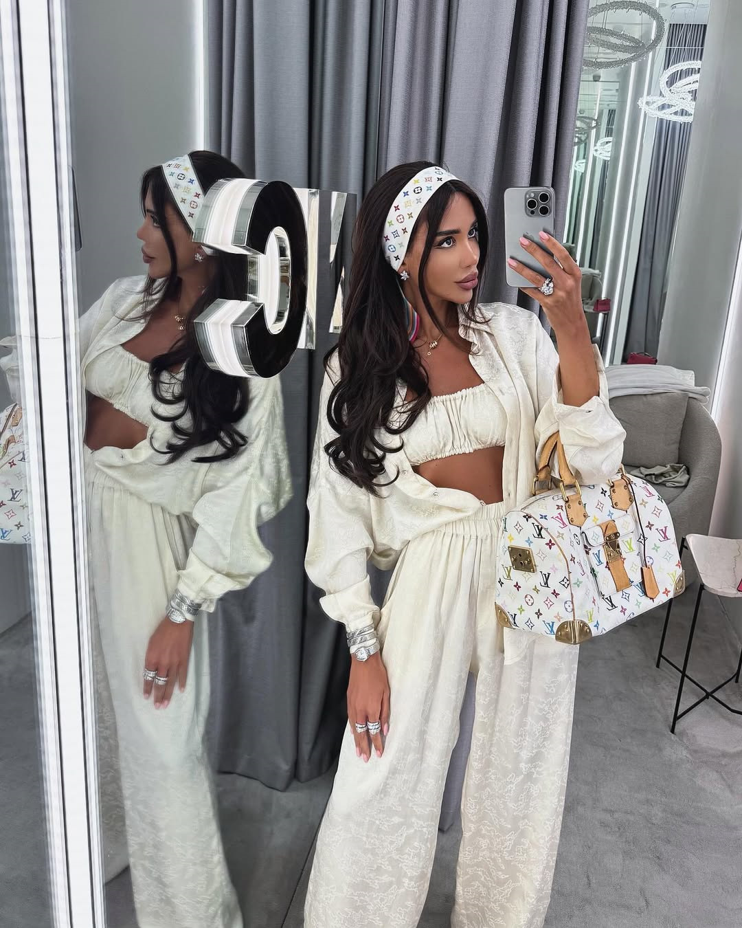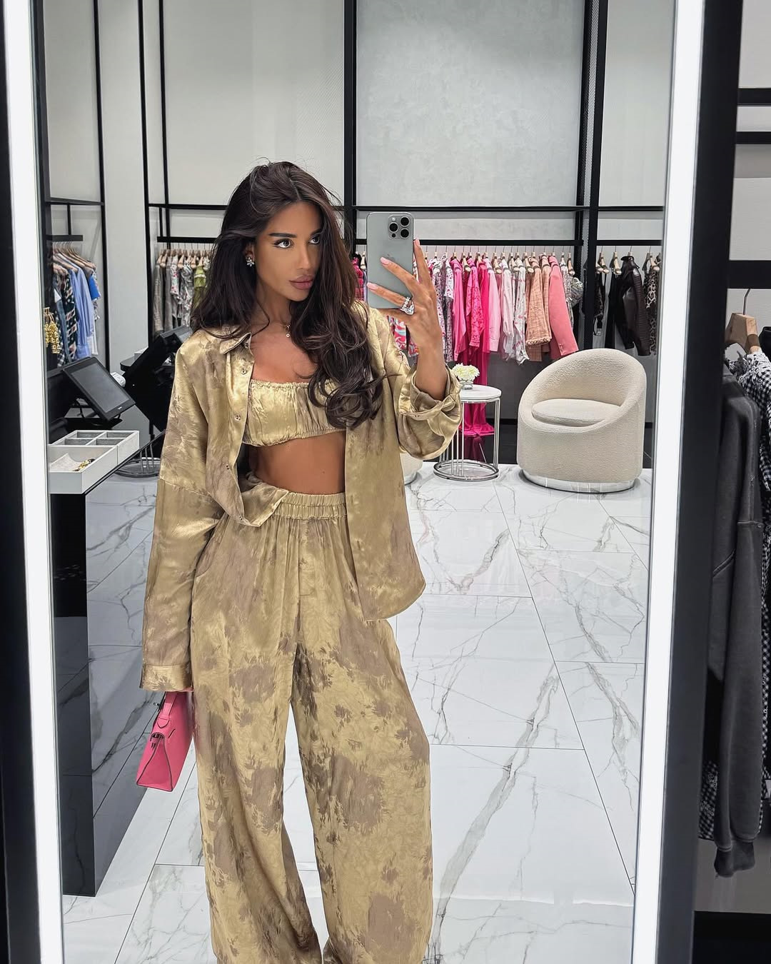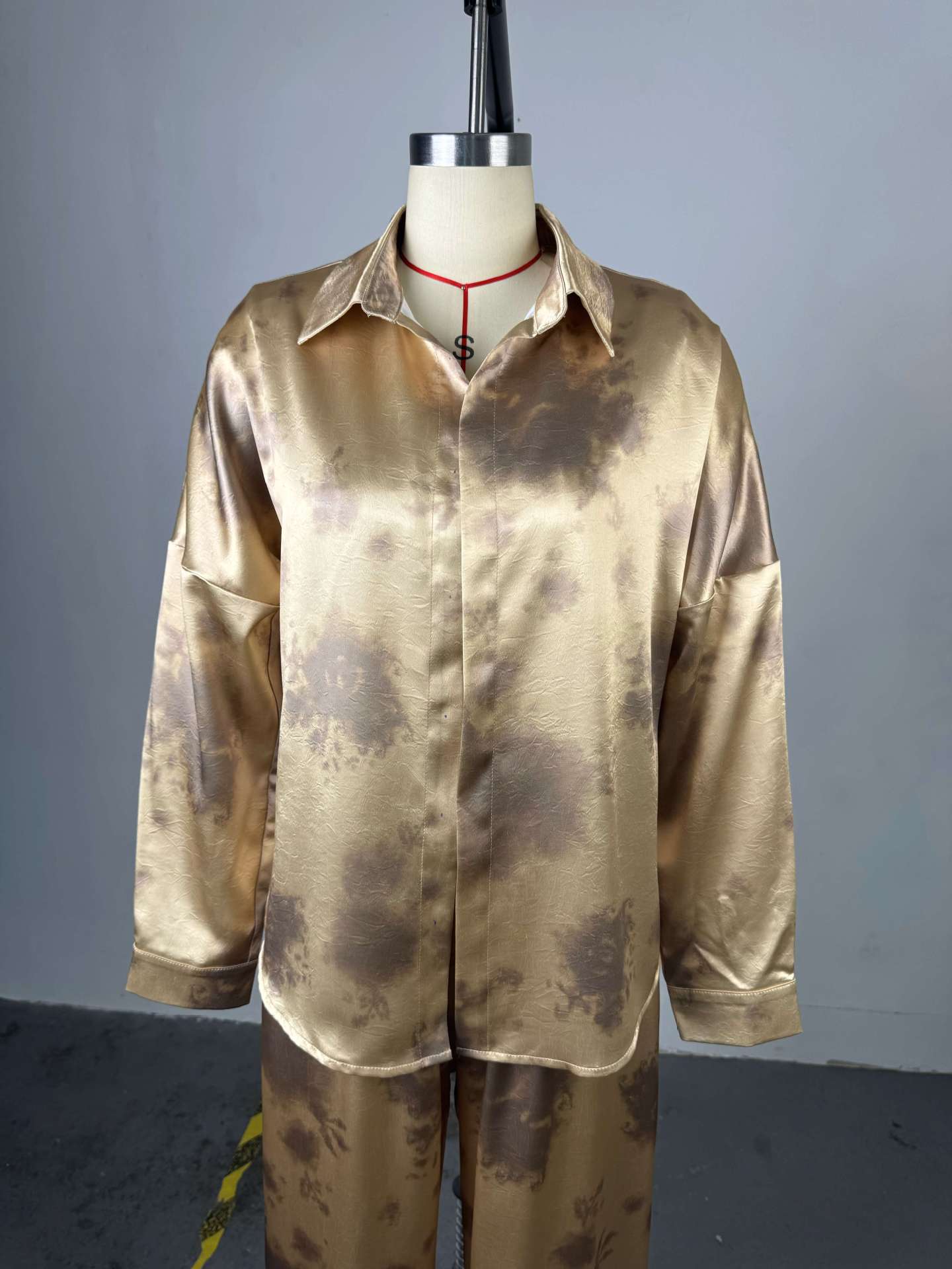This Summer Women's Fashion Turn-Down Collar Long-Sleeve Shirt & Strapless Wide-Leg Pants Three-Piece Design Made Of High Quality polyester And Spandex Material. It Is Stretchy, Durable And Comfortable. It Is a Must-Have Outfit For All Seasons. retail Two Piece Pant Sets Can Solve Your cloth selection Troubles. Explore More 2 Piece Pants Set On BamBam retail Women Clothing Online Store.