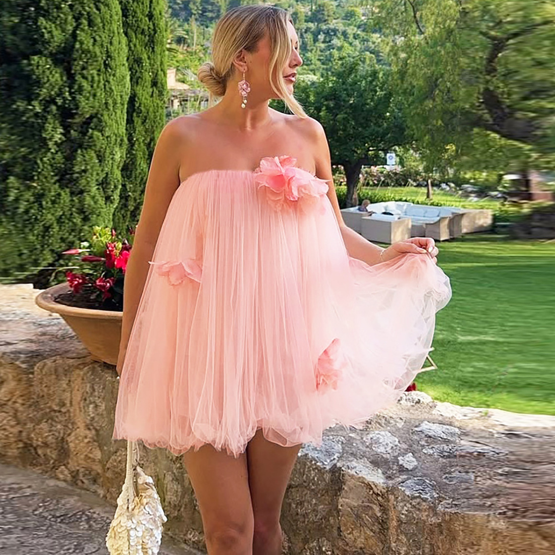 This Summer Women's Mesh Puffy Dress Floral Strapless Dress Design Made Of High Quality polyester And Spandex Material. It Is Stretchy, Durable And Comfortable. Casual Dresses With Long Sleeves Can Not Only Be Worn As Outerwear In Spring And Autumn, But Also Matching a Jacket In Winter, It Is a Must Have Item For Every Season. Grab Really Great Buy Casual Dresses For Women And Grow Your Business. No Moq In BamBam.
