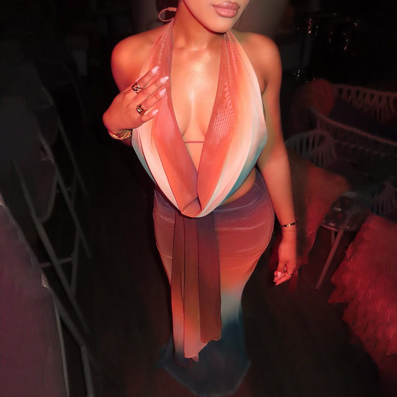 This Summer Women's Sexy Halter Neck Color Matching Mesh Print Skirt Two-Piece Set Design Made Of High Quality polyester And Spandex Material. It Is Stretchy, Durable And Comfortable. It Come With The Top And Skirt Matching Set. Women’s Skirt Suit Sets Is a Great Alternative To One Piece Outfit. It Can Either Be Worn Together Or Individually, So You Can Combine Them Endlessly. Grab Different Two Piece Skirt Set retail On Our Website a Women's Clothing Store Online At Really affordable price And Enjoy fast delivery worldwide.