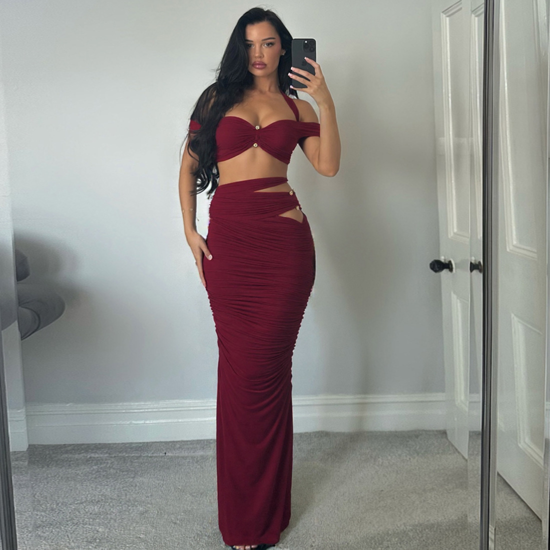 This Summer Women's Sexy Halter Neck Off-Shoulder Sleeveless Top & Fitted Ruched Long Skirt Set Design Made Of High Quality polyester And Spandex Material. It Is Stretchy, Durable And Comfortable. It Come With The Top And Skirt Matching Set. Women’s Skirt Suit Sets Is a Great Alternative To One Piece Outfit. It Can Either Be Worn Together Or Individually, So You Can Combine Them Endlessly. Grab Different Two Piece Skirt Set retail On Our Website a Women's Clothing Store Online At Really affordable price And Enjoy fast delivery worldwide.