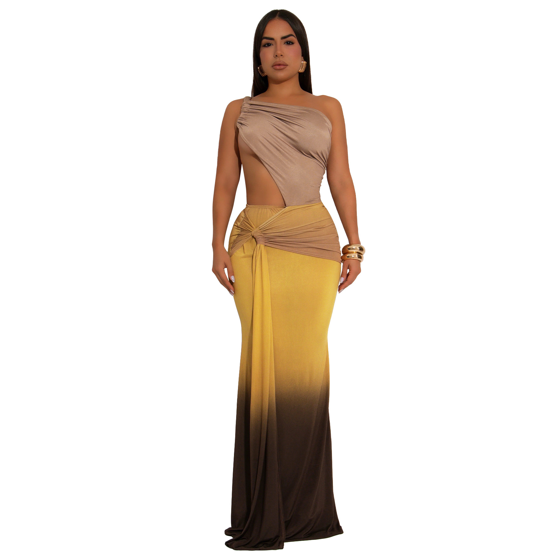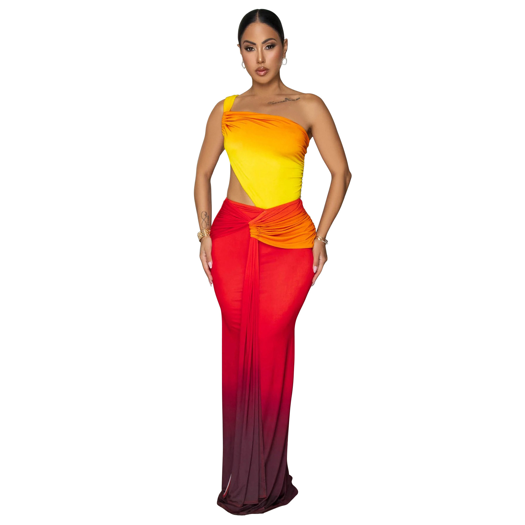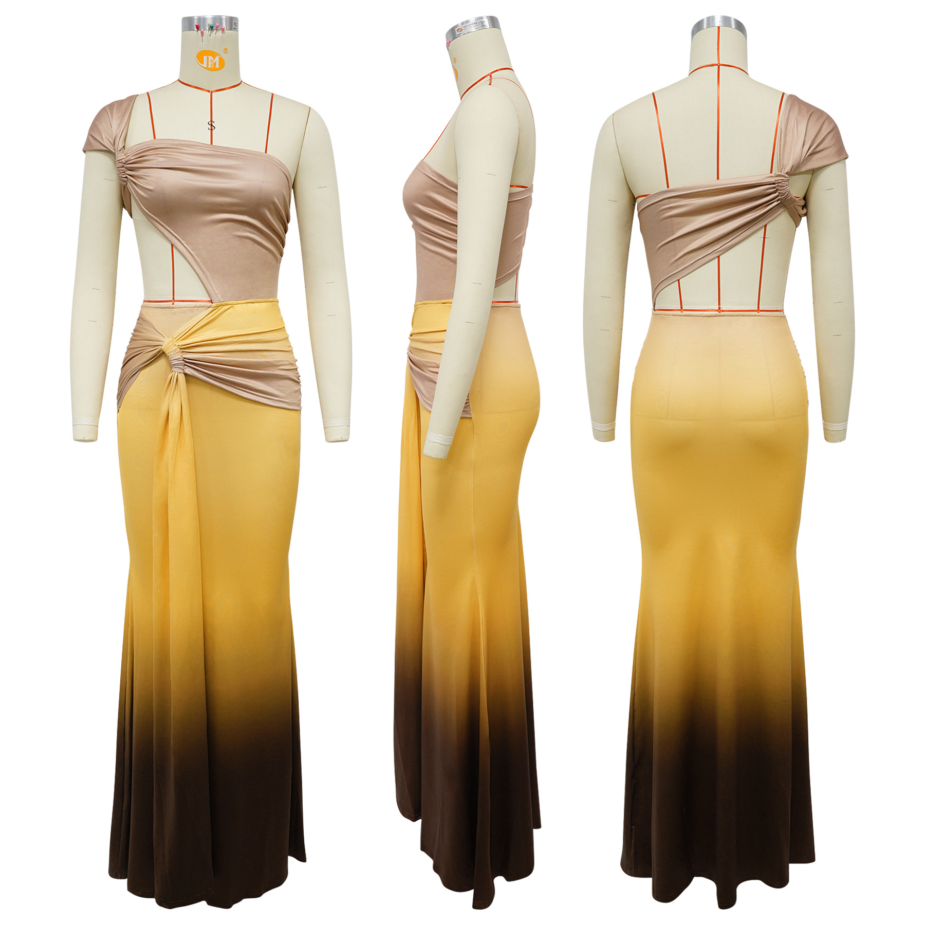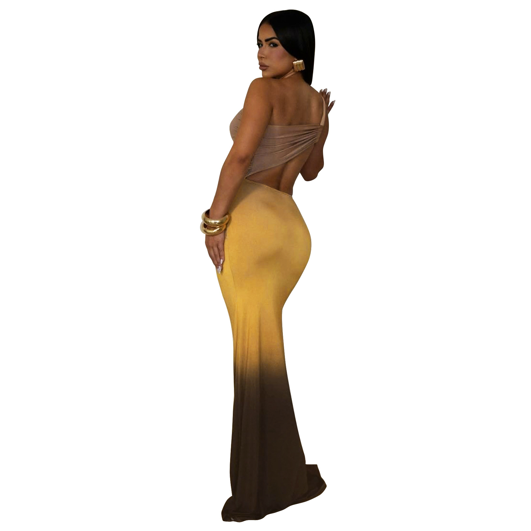 This Summer Women's Sexy One-Shoulder Open Waist Gradient Long Dress Design Made Of Good Quality Polyester And Spandex Material, Which Is Stretchy, Durable And Comfortable. The Long Evening Dresses And Gowns Is Always The main Choice For All Kinds Of Parties, Cocktail, Prom, Events, And Dating Occasions. Evening Gowns At BamBam Comes With Huge Selections - Sequins, Beaded, Satin, Velvet, Lace.... When You Need retail Evening Dresses, BamBam retail Women Garment Online Shop Is Your One-Stop Online Shopping Choice.