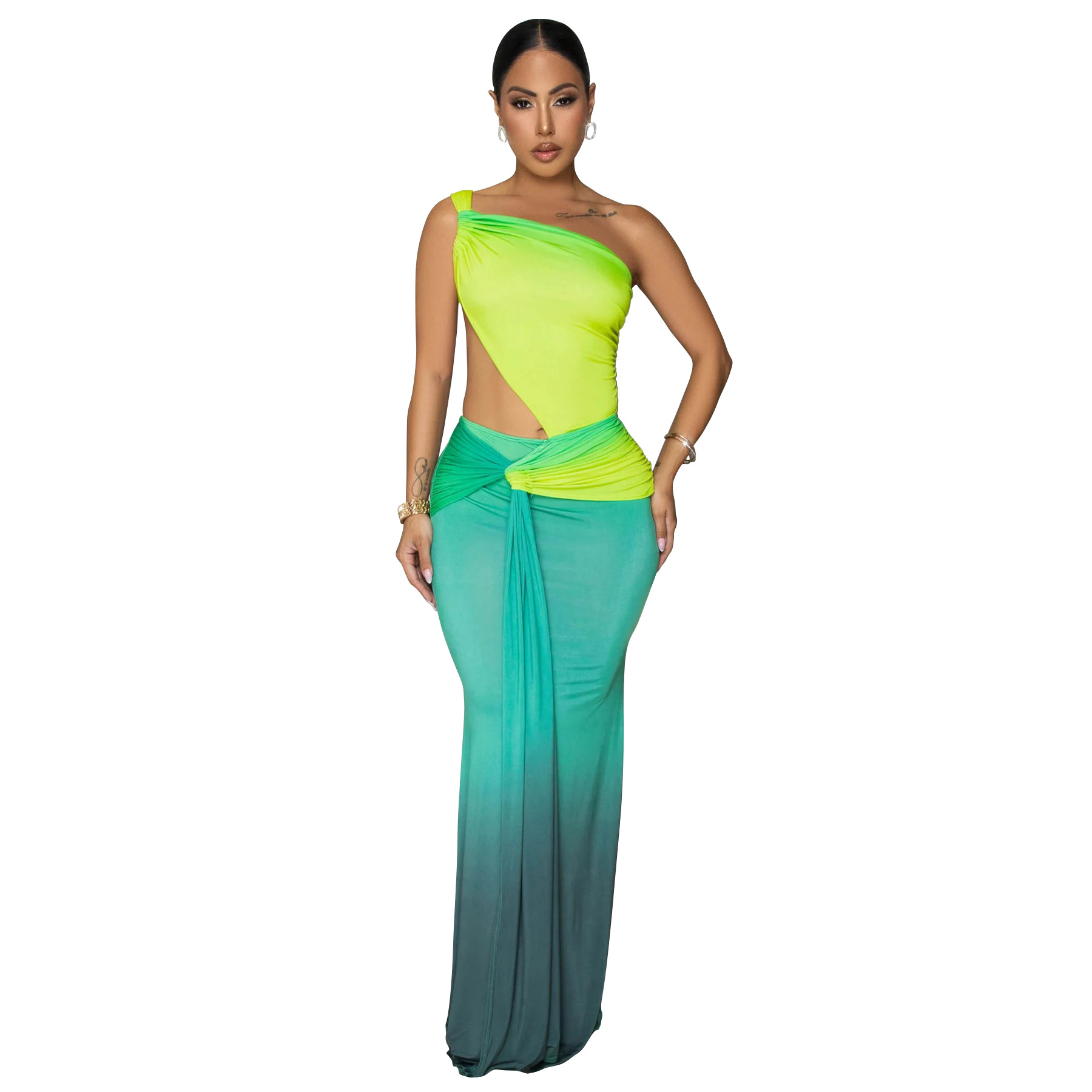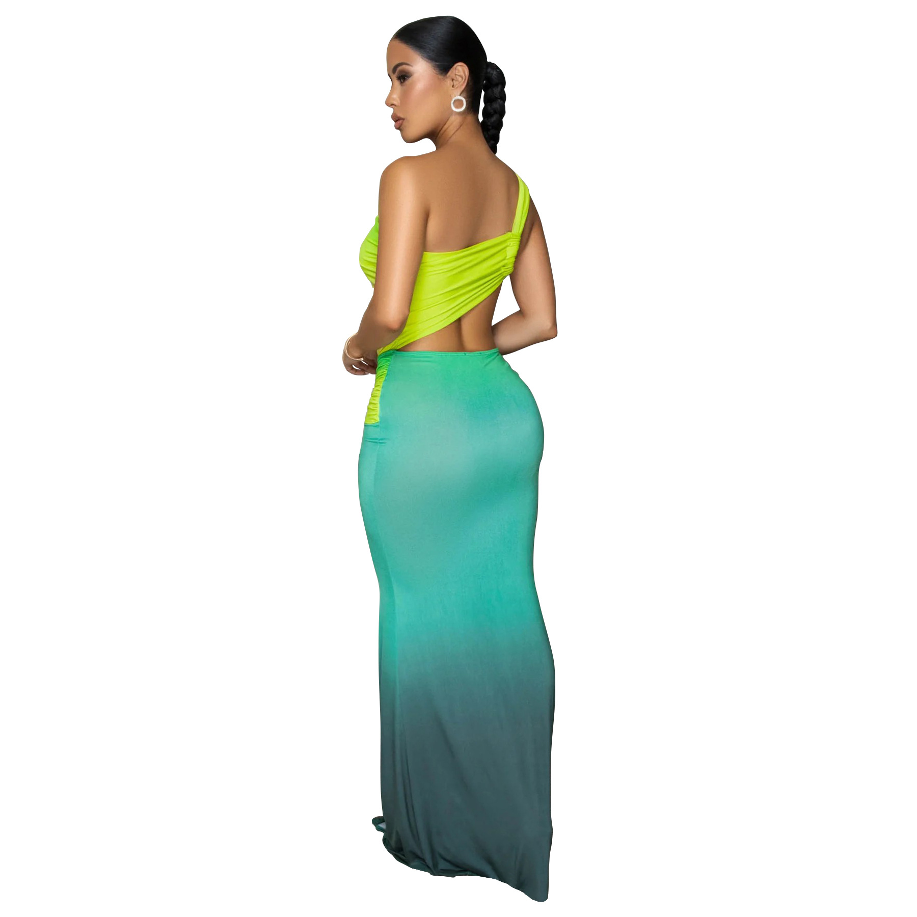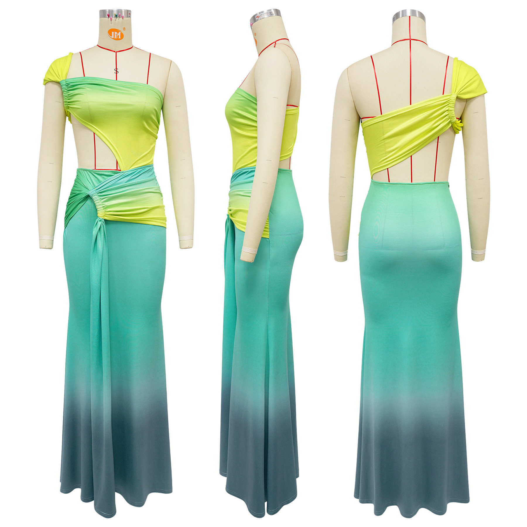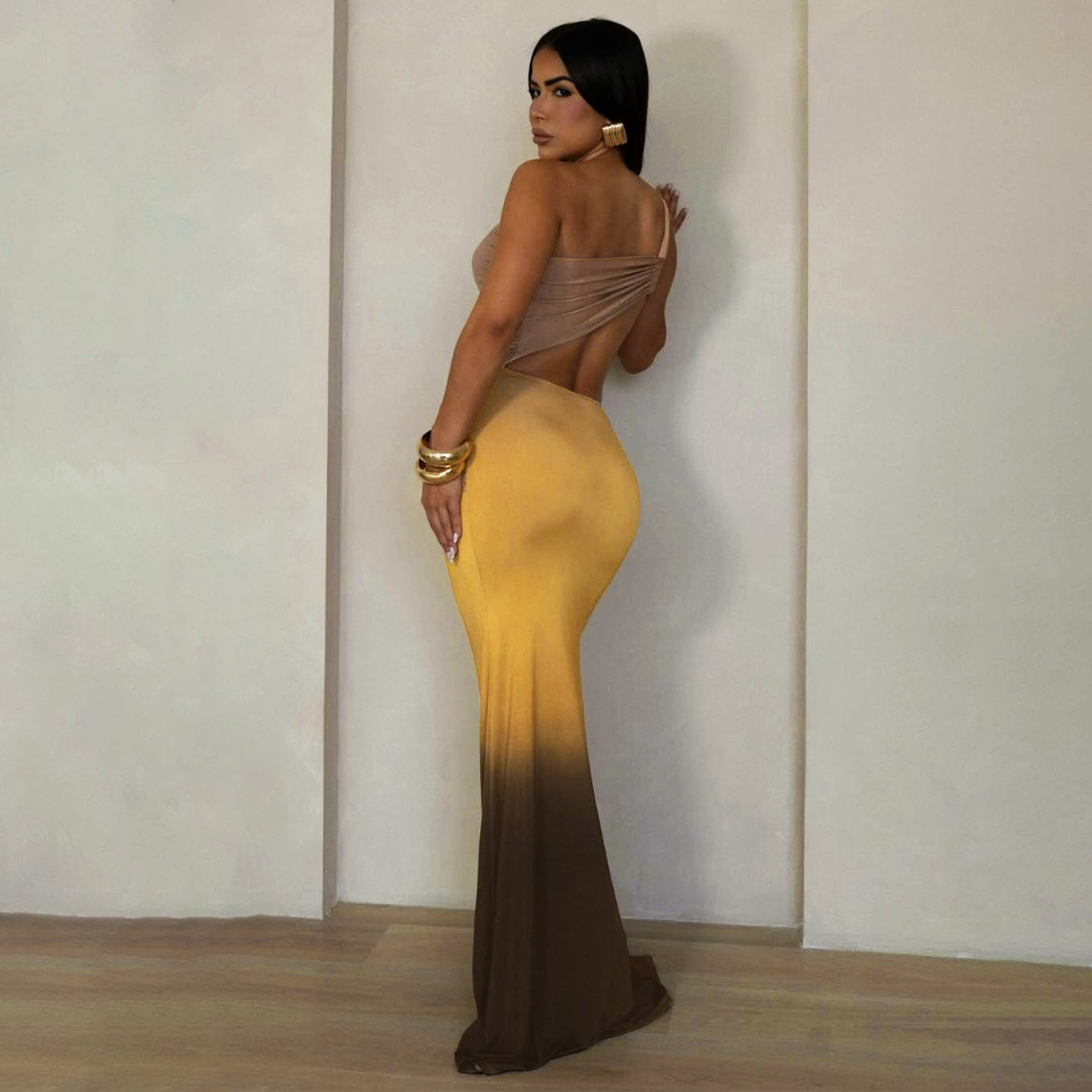 This Summer Women's Sexy One-Shoulder Open Waist Gradient Long Dress Design Made Of Good Quality Polyester And Spandex Material, Which Is Stretchy, Durable And Comfortable. The Long Evening Dresses And Gowns Is Always The main Choice For All Kinds Of Parties, Cocktail, Prom, Events, And Dating Occasions. Evening Gowns At BamBam Comes With Huge Selections - Sequins, Beaded, Satin, Velvet, Lace.... When You Need retail Evening Dresses, BamBam retail Women Garment Online Shop Is Your One-Stop Online Shopping Choice.