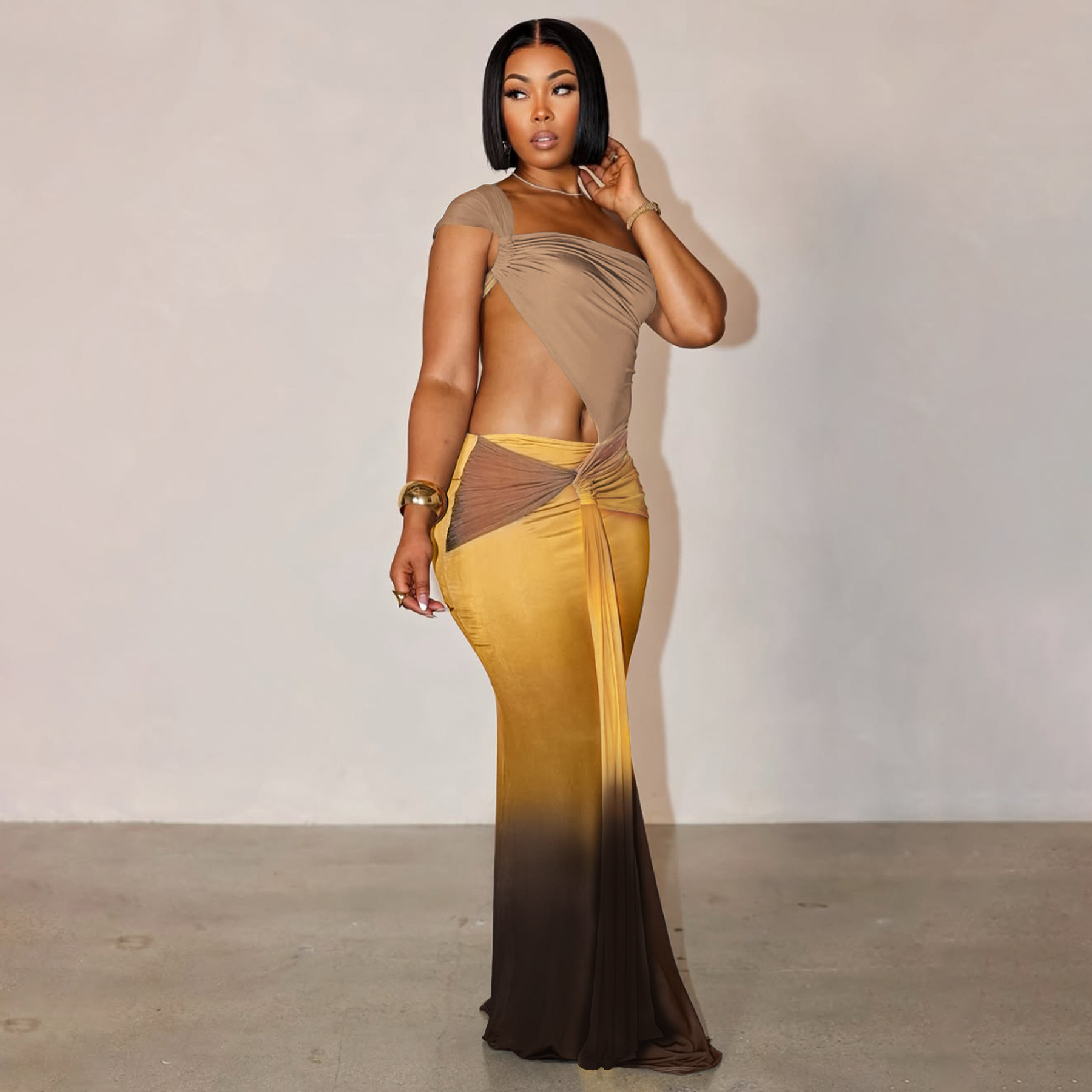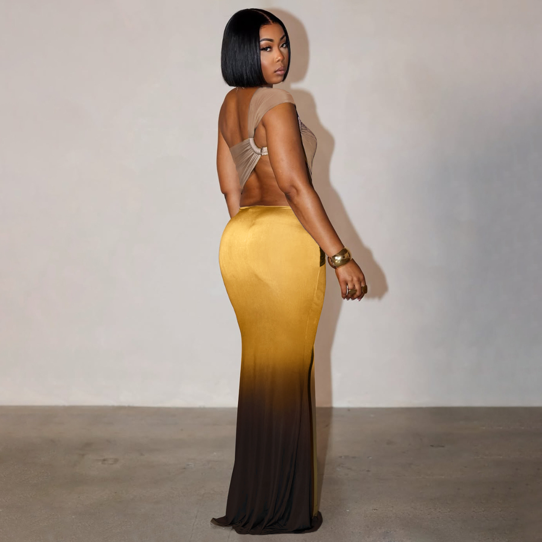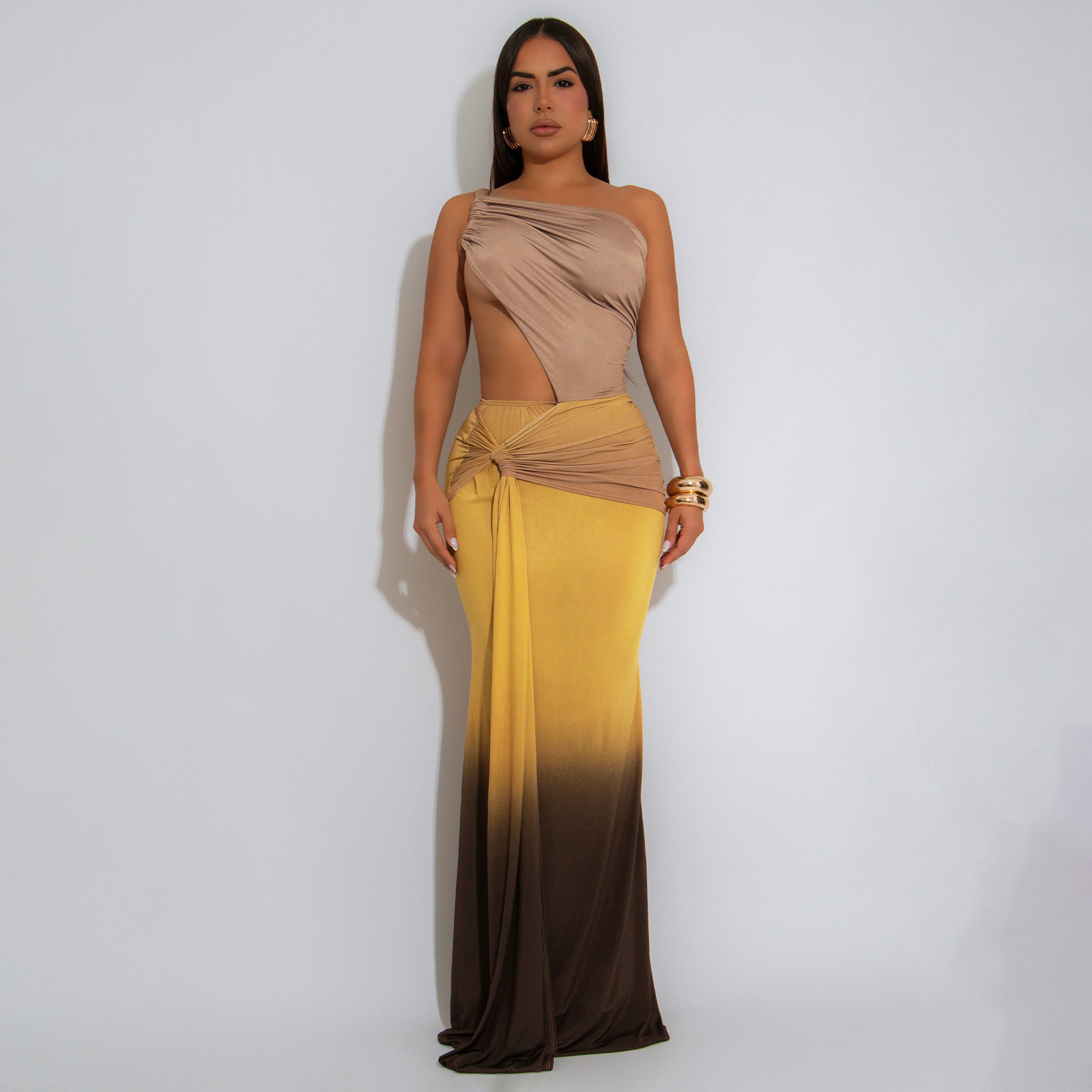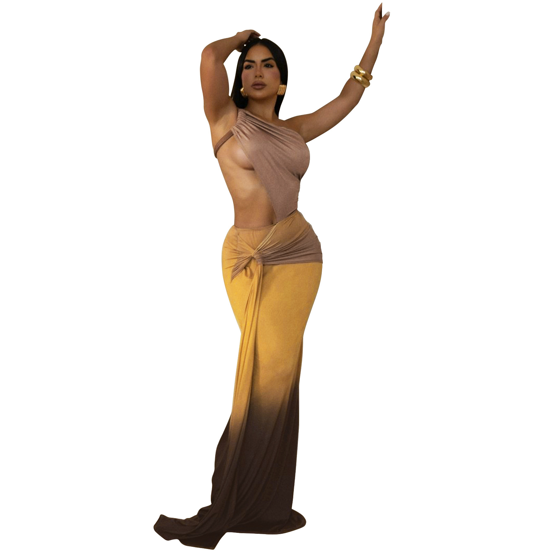 This Summer Women's Sexy One-Shoulder Open Waist Gradient Long Dress Design Made Of Good Quality Polyester And Spandex Material, Which Is Stretchy, Durable And Comfortable. The Long Evening Dresses And Gowns Is Always The main Choice For All Kinds Of Parties, Cocktail, Prom, Events, And Dating Occasions. Evening Gowns At BamBam Comes With Huge Selections - Sequins, Beaded, Satin, Velvet, Lace.... When You Need retail Evening Dresses, BamBam retail Women Garment Online Shop Is Your One-Stop Online Shopping Choice.