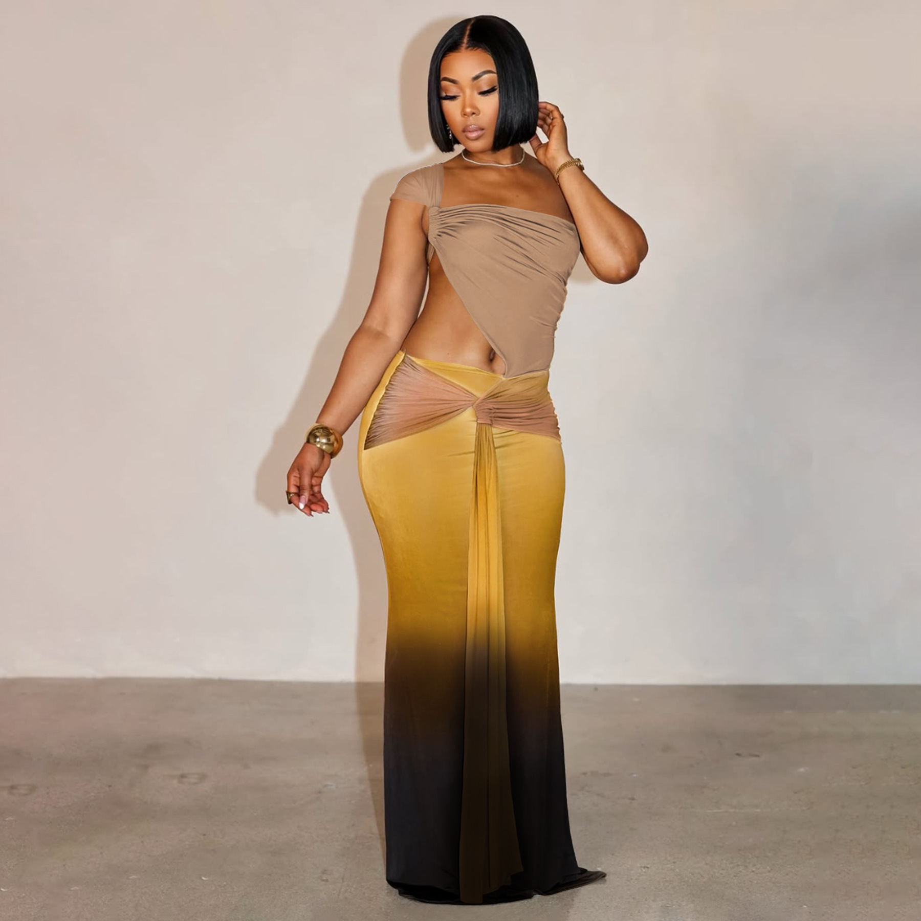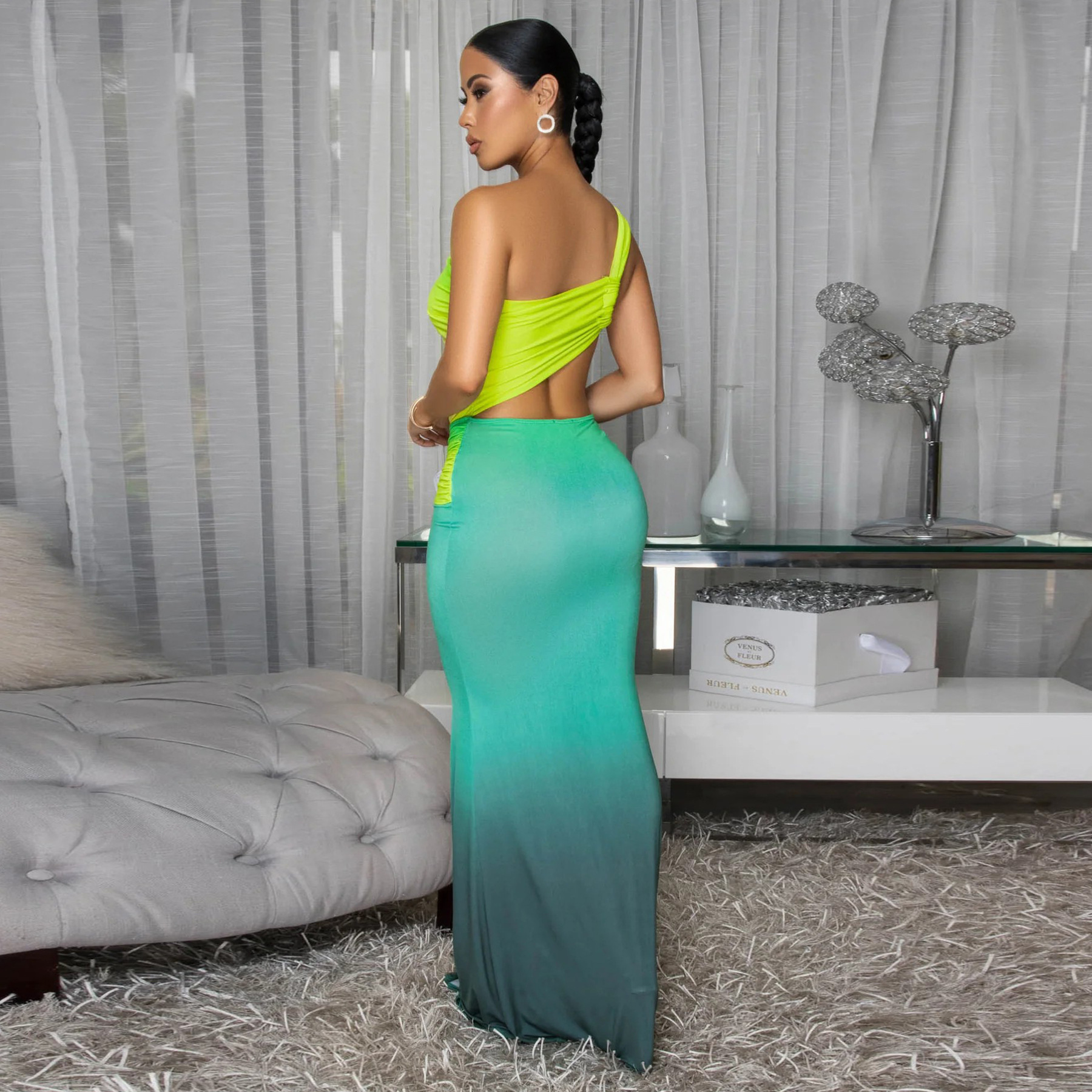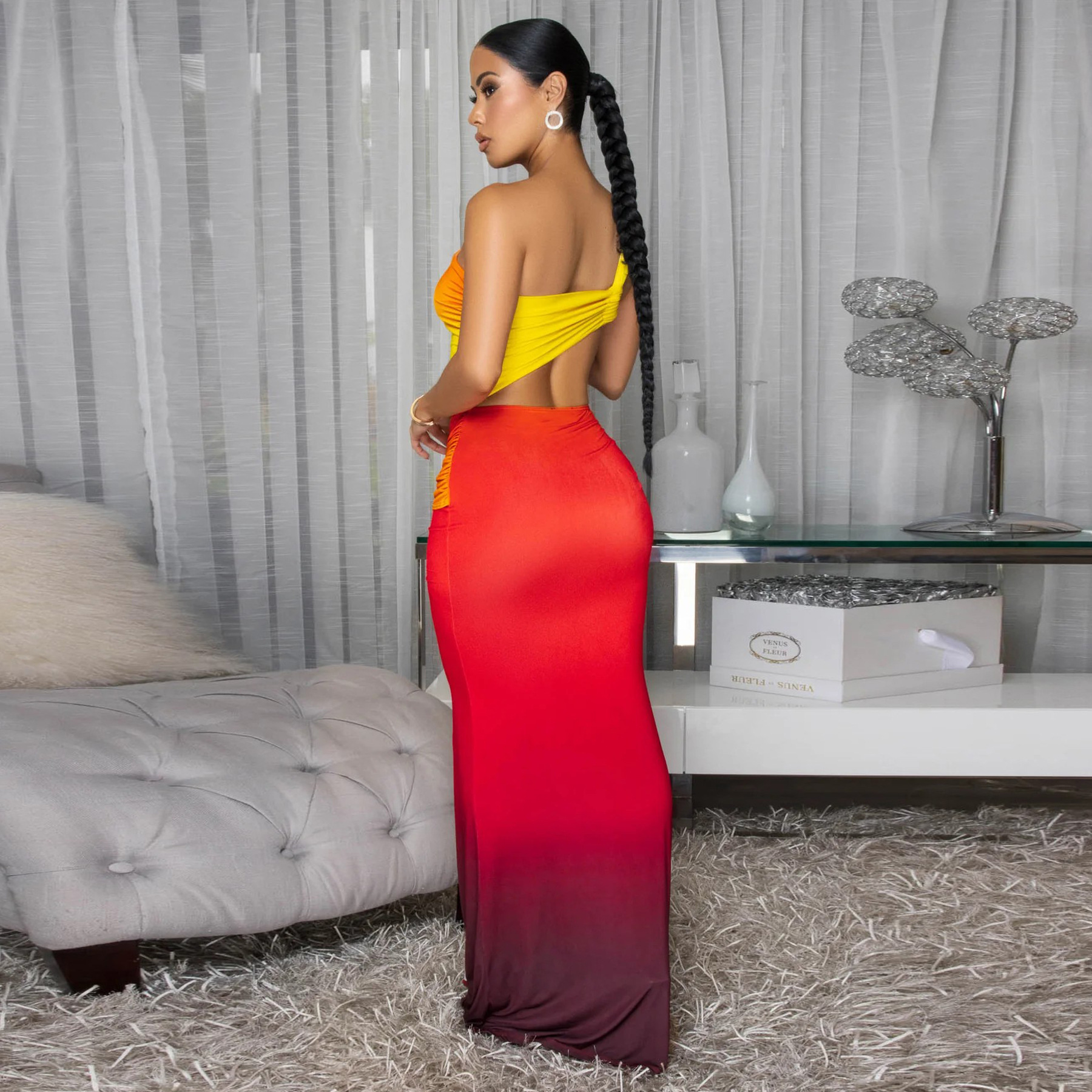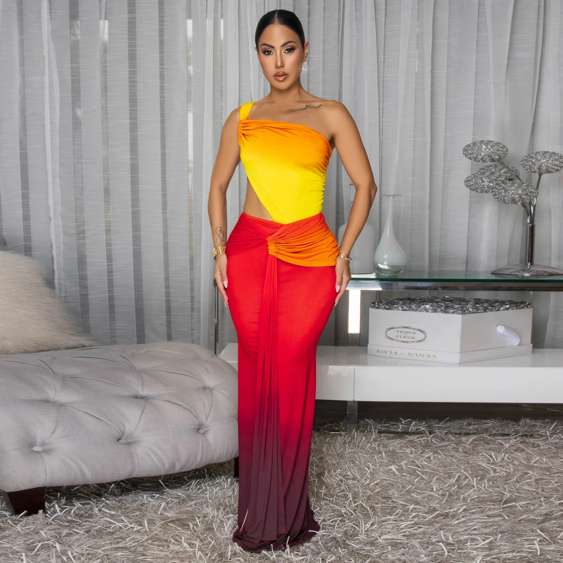 This Summer Women's Sexy One-Shoulder Open Waist Gradient Long Dress Design Made Of Good Quality Polyester And Spandex Material, Which Is Stretchy, Durable And Comfortable. The Long Evening Dresses And Gowns Is Always The main Choice For All Kinds Of Parties, Cocktail, Prom, Events, And Dating Occasions. Evening Gowns At BamBam Comes With Huge Selections - Sequins, Beaded, Satin, Velvet, Lace.... When You Need retail Evening Dresses, BamBam retail Women Garment Online Shop Is Your One-Stop Online Shopping Choice.